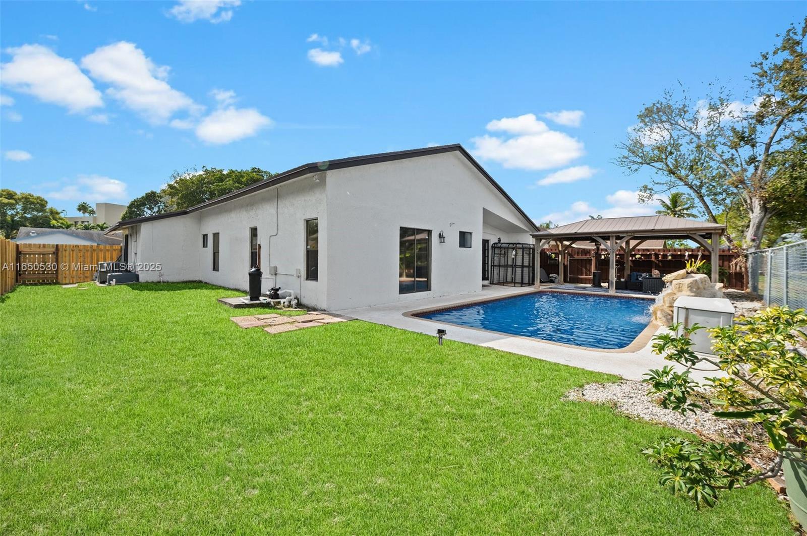 Welcome to your dream home where comfort meets luxury in this beautifully updated property!This residence features 3 spacious bedrooms and 2 modern bathrooms.BONUS 4TH ROOM/OFFICE/DEN W/CLOSET.The expansive two-car garage offers ample storage.Enjoy breathtaking pool and lake views from your backyard oasis, complete with a charming 10ftx20ft cedar gazebo—perfect for relaxing afternoons near the sparkling pool. The home's roof was replaced in 2018 with high-quality plywood, ensuring durability and peace of mind. Inside, revel in the tile flooring, renovated bathrooms, and stylish baseboards that add a touch of elegance.Hurricane-rated front/garage doors,newer fridge,and newer pool motor/timer/filter.Painted exterior 2022,2024 wood fence, professionally cleaned AC ducts/dryer vent. A/C 2024