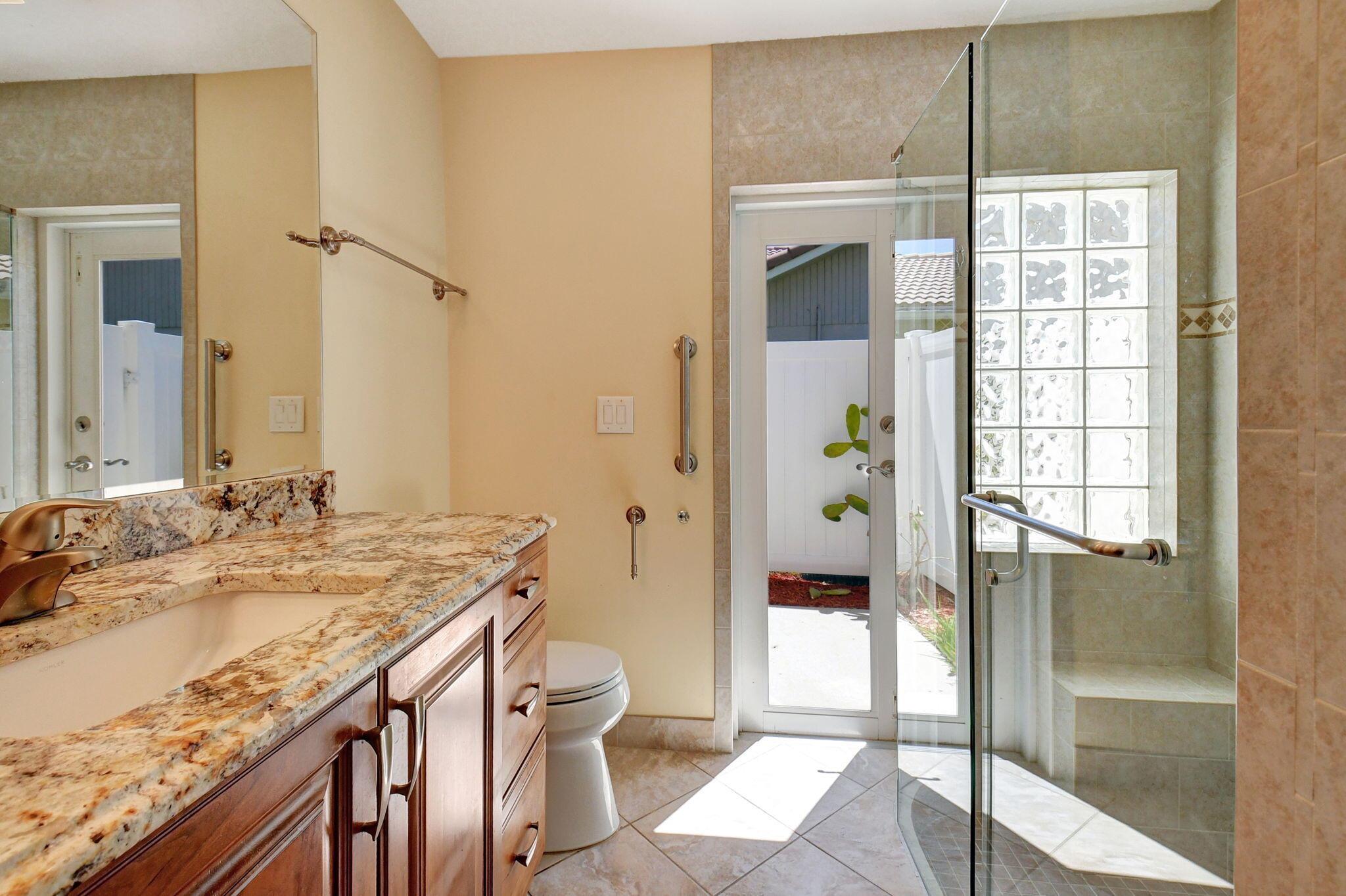 Just Listed one of the lowest priced house !Discover this exceptional home nestled in a sought-after gated community in Boca Raton. This residence features 3 bedrooms, 2 bathrooms, and a spacious screened-in patio, perfect for outdoor relaxation. Enjoy the convenience of a separate laundry room and recently updated appliances, including a washer, dryer, and dishwasher, all just 2 years old. Ac 2020 , Water tank 2019 The interior boasts vaulted ceilings, a built-in shelf unit in the living area, and a master suite with dual sinks, a large walk-in shower, and a generous walk-in closet. The beautifully landscaped, fenced-in backyard offers both privacy and charm, creating a serene retreat for you to enjoy.