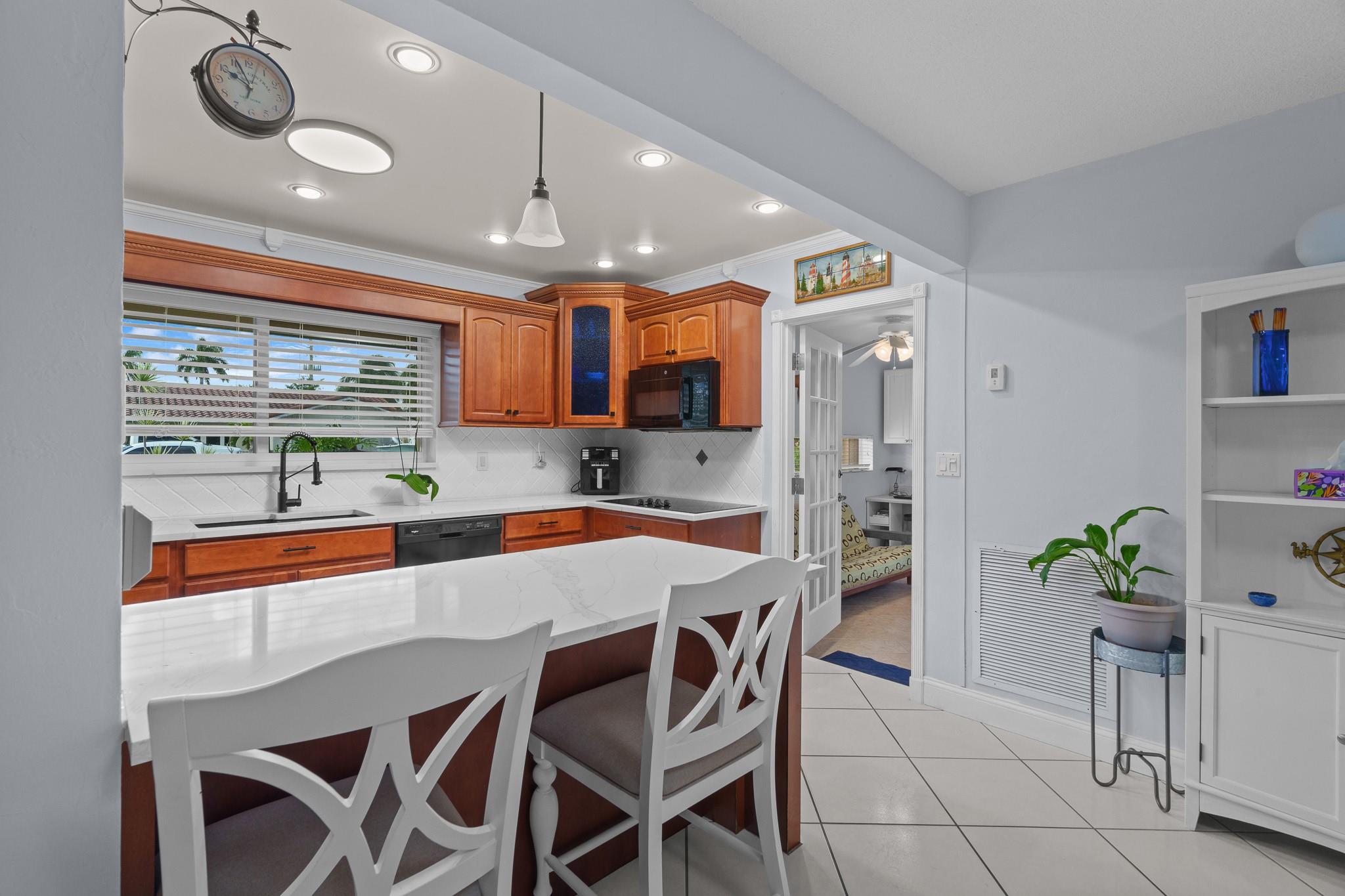 Pompano Beach Paradise In Golf View Estates! Come check out this renovated 3 bedroom, 2 bathroom pool home on an oversized lot & walking distance to almost anything you could want. The newly added covered patio & existing screened in porch let you utilize the outdoor area rain or shine. Space to park your RV/boat & New electrical panel with 30amp service & a 50amp home generator connection. Private heated pool surrounded by tropical fruit trees, 4 zone sprinkler system and even a rain water collection system. 8x15 shed. Hurricane impact windows & doors throughout, new quartz countertops & open kitchen. Split bedroom floor plan and an enclosed garage with bonus room & workroom. A large updated guest bath with a jet tub and spacious bedrooms. You can't find a better valued house & location!