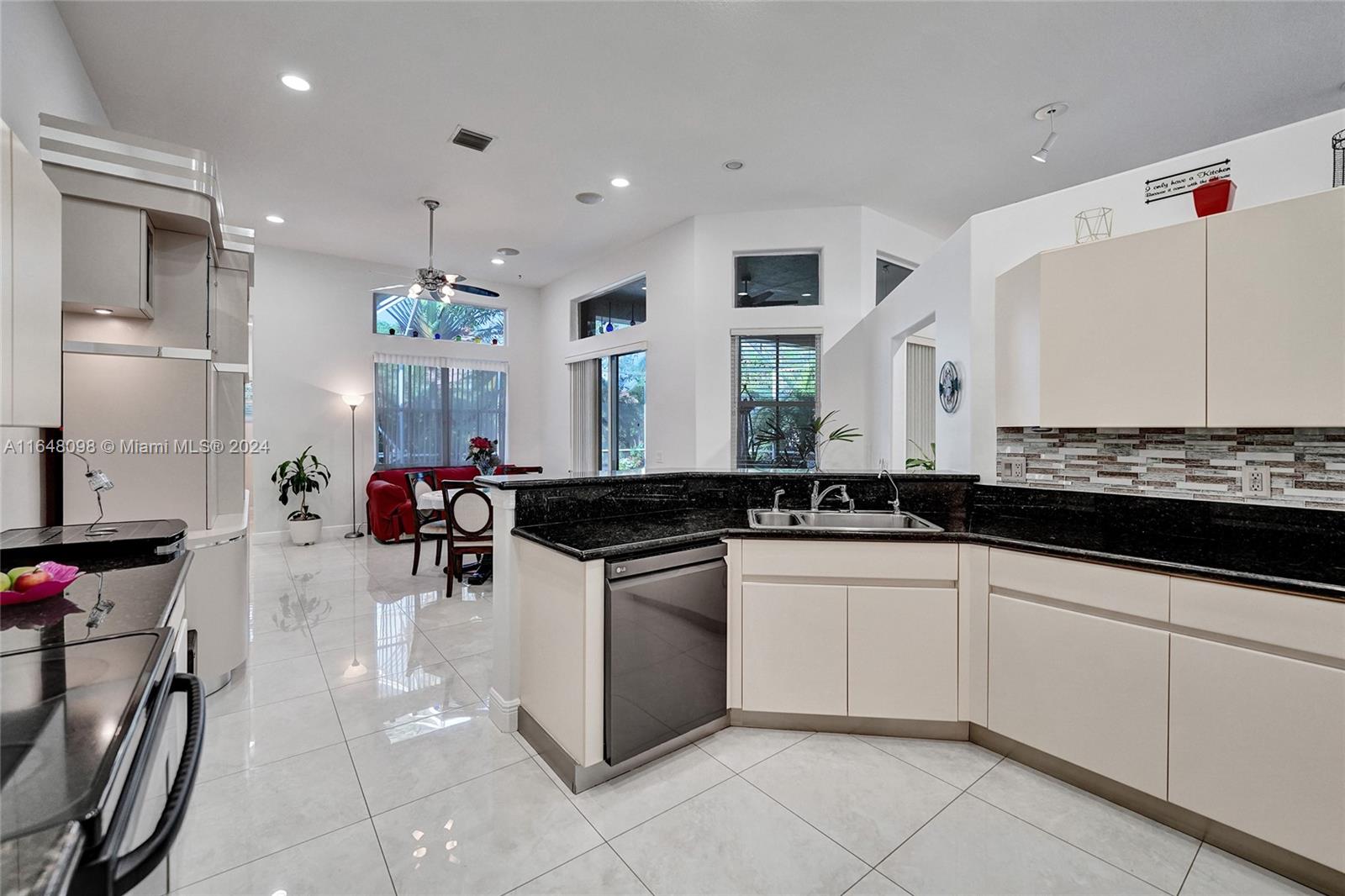 Welcome to this vast, light-filled home nestled in the exclusive gated community of Savanna. The residence features spacious 5 BD / 3.5 BA surrounded with white spanish porcelain tile, a gourmet kitchen, expansive family room, complete with a built-in stereo system and LED lighting. The resort-style screened-in patio features a solar-heated saltwater pool, perfect for year-round enjoyment. Accordion hurricane shutters provide peace of mind. Two AC units, water softener treatment, Google Home, Arlo Camera and ADT Security Systems. Additional features: Tankless water heater and outdoor motion lights. Surrounding the community are A+ schools, a clubhouse, multiple pools, sports fields, and more. This is a rare find so don't miss your chance! Your future home is awaiting!