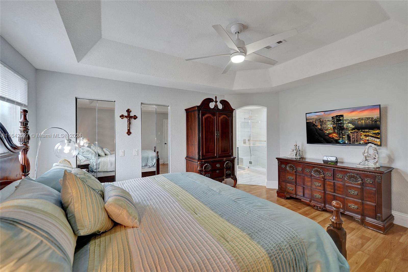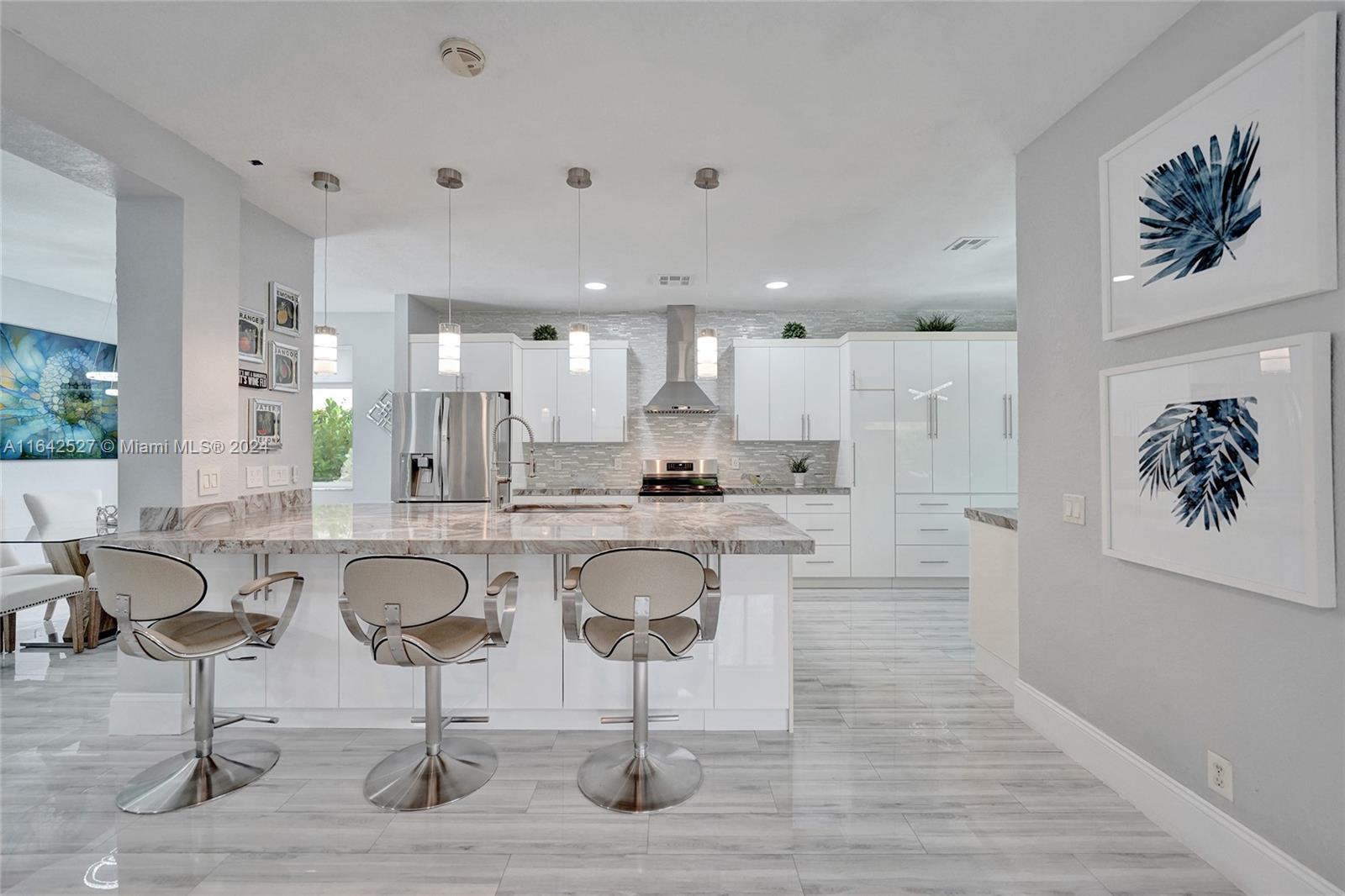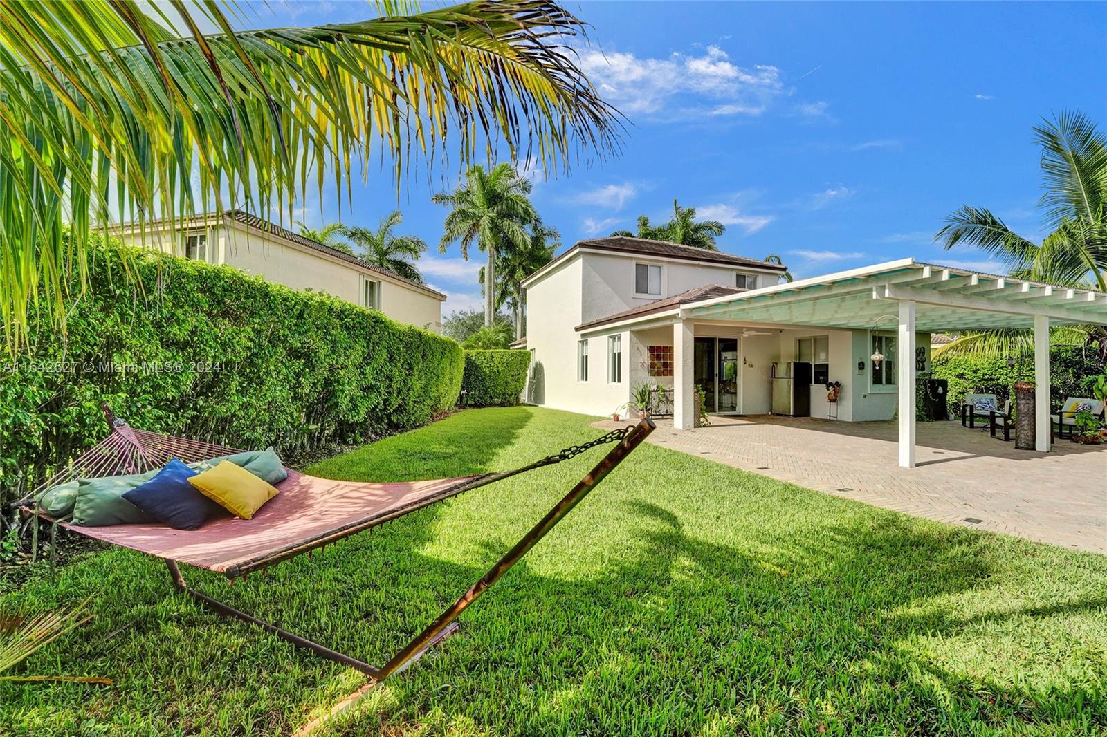 Experience luxury living in the prestigious gated community of Savanna, Weston. Nestled in a serene cul-de-sac, this remodeled home offers a NEW ROOF (2024) and freshly painted exterior (2024). An expansive private yard with a vast paver patio, pergola for seamless outdoor living, and a 5-ton outside/inside AC unit (2020). Step inside to find ceramic floors, LED lighting, and a stylish half-bath. The modern kitchen features white cabinetry, Aragonite stone countertops, high-end appliances, and a coffee area with a wine refrigerator. Upstairs, the master suite awaits with an oversized primary bath + 3 additional bedrooms with a beautifully renovated secondary bath. AT&T Fiber Optic High-Speed Internet ready! The community offers many amenities and A+ schools nearby.