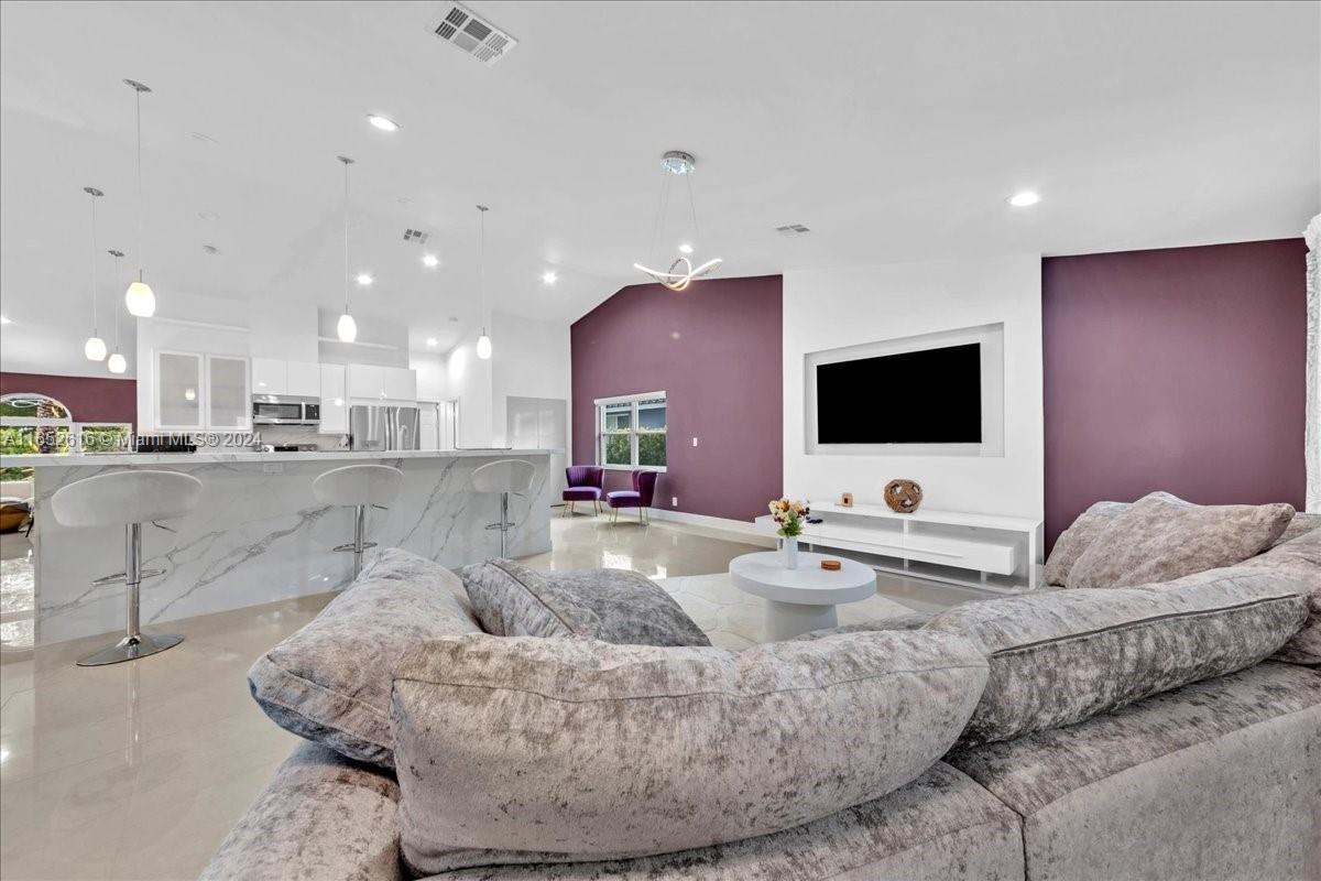 Welcome to this exquisitely remodeled estate, completely renovated less than two years ago with no expense spared. Featuring a new roof, high-impact windows and doors and luxurious finishes throughout, this home defines modern luxury. The grand circular driveway leads to an expansive, light-filled living space with cathedral ceilings and custom lighting. The gourmet kitchen boasts two quartz countertops, frameless cabinets, and stainless steel appliances. Outside, enjoy a private oasis with a spacious patio, artificial turf, and a heated pool. This, is affordable luxury living at its best in Hollywood Hills North. Open House on Sunday September 8th 1pm to 3pm.