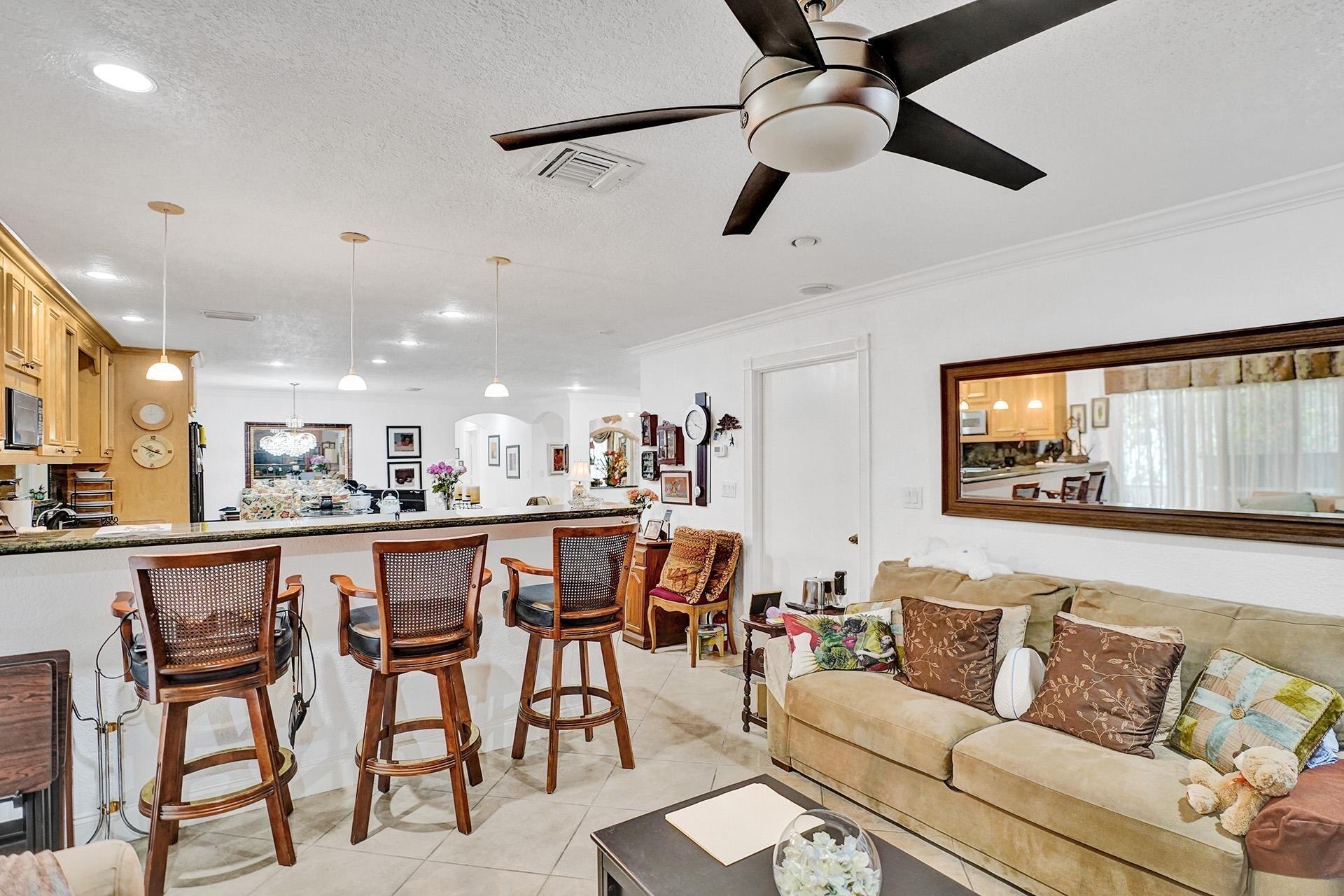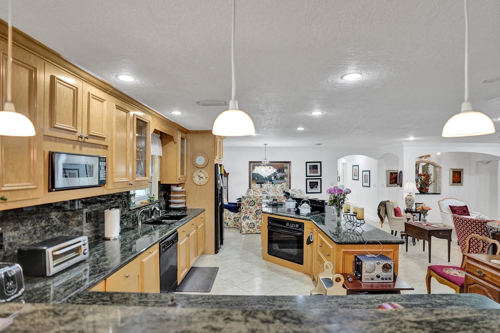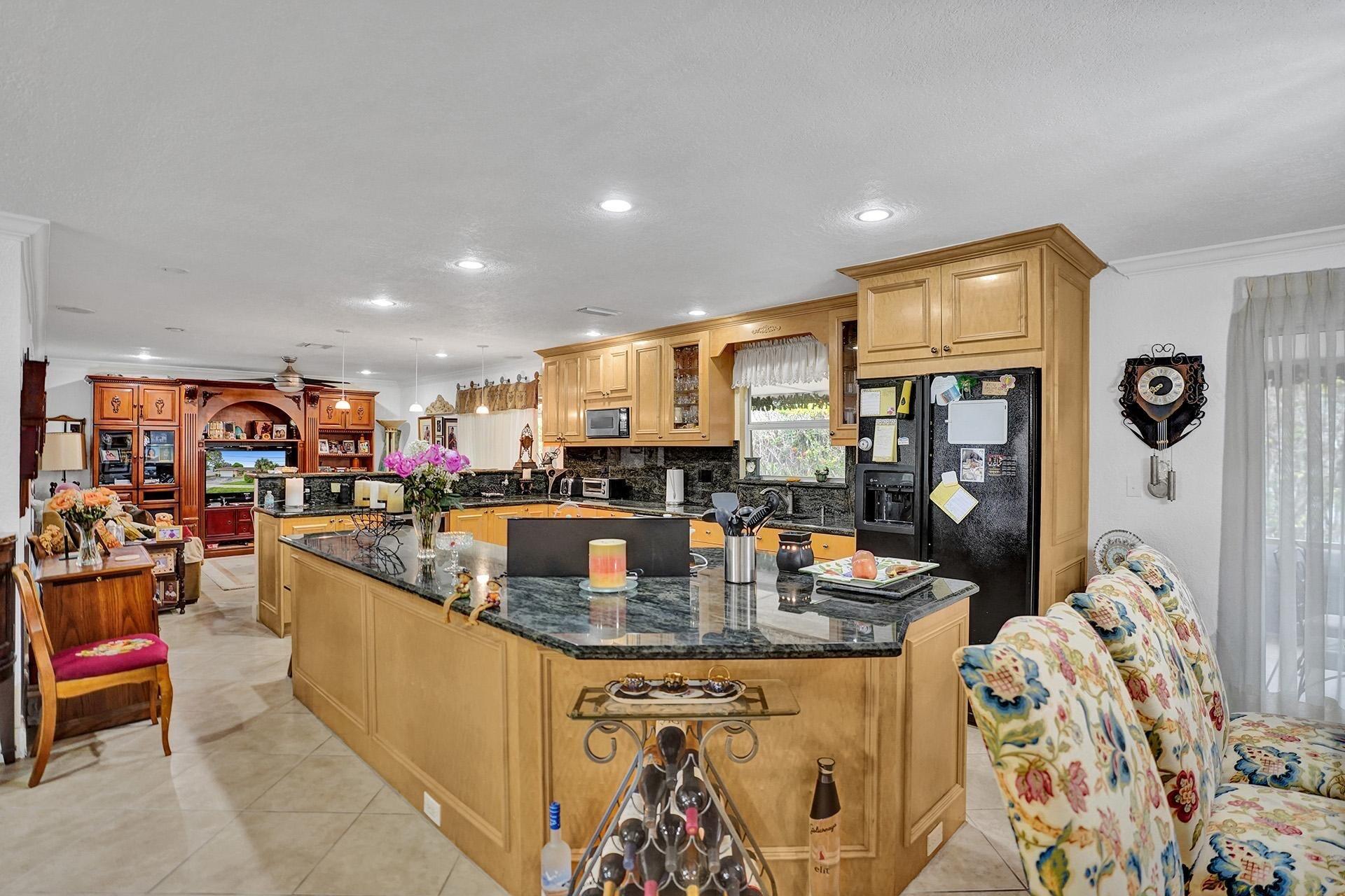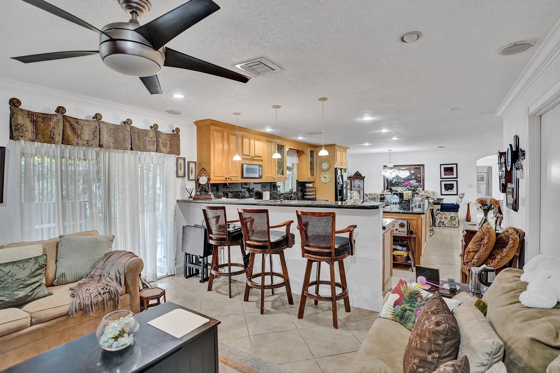 Great opportunity to own this East Boca home located in the exclusive neighborhood of Boca Harbour. Situated on a corner lot with a circular driveway, the location couldn't be more perfect! You'll find an array of shopping and dining options nearby, including Publix, Fresh Market, Trader Joe's, Nordstrom Rack, TJ Maxx, Arturo's, Renzo's Cafe and more. For those who crave the beach, you're just a short distance away, and downtown Atlantic Avenue is at your fingertips, offering a vibrant mix of dining, entertainment, and cultural experiences. This home offers a large, open living area that is perfect for entertaining. The spacious kitchen is the focal point and features light wood cabinetry, granite counters, a large island, plenty of counter and cabinet space, as well as a convenient