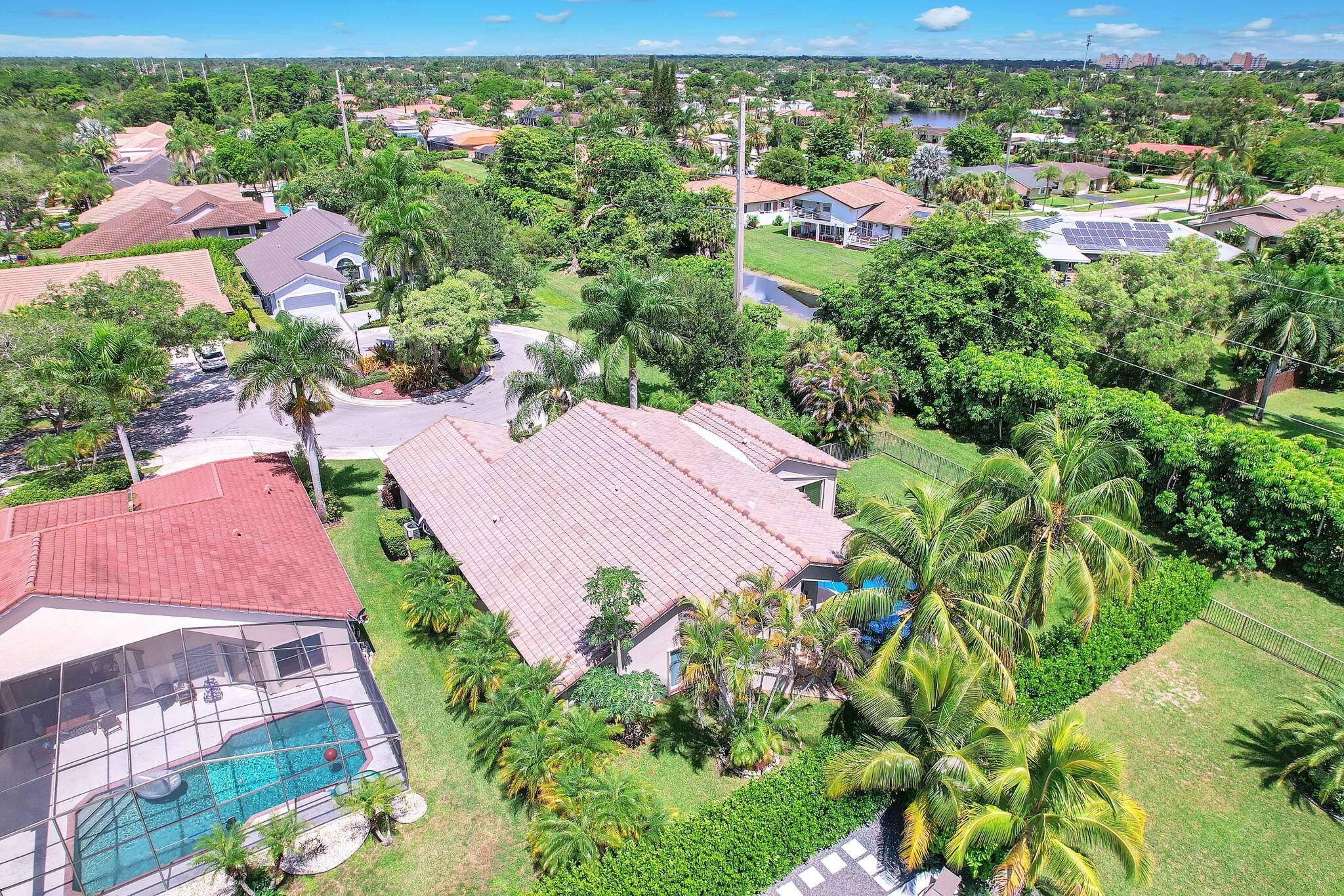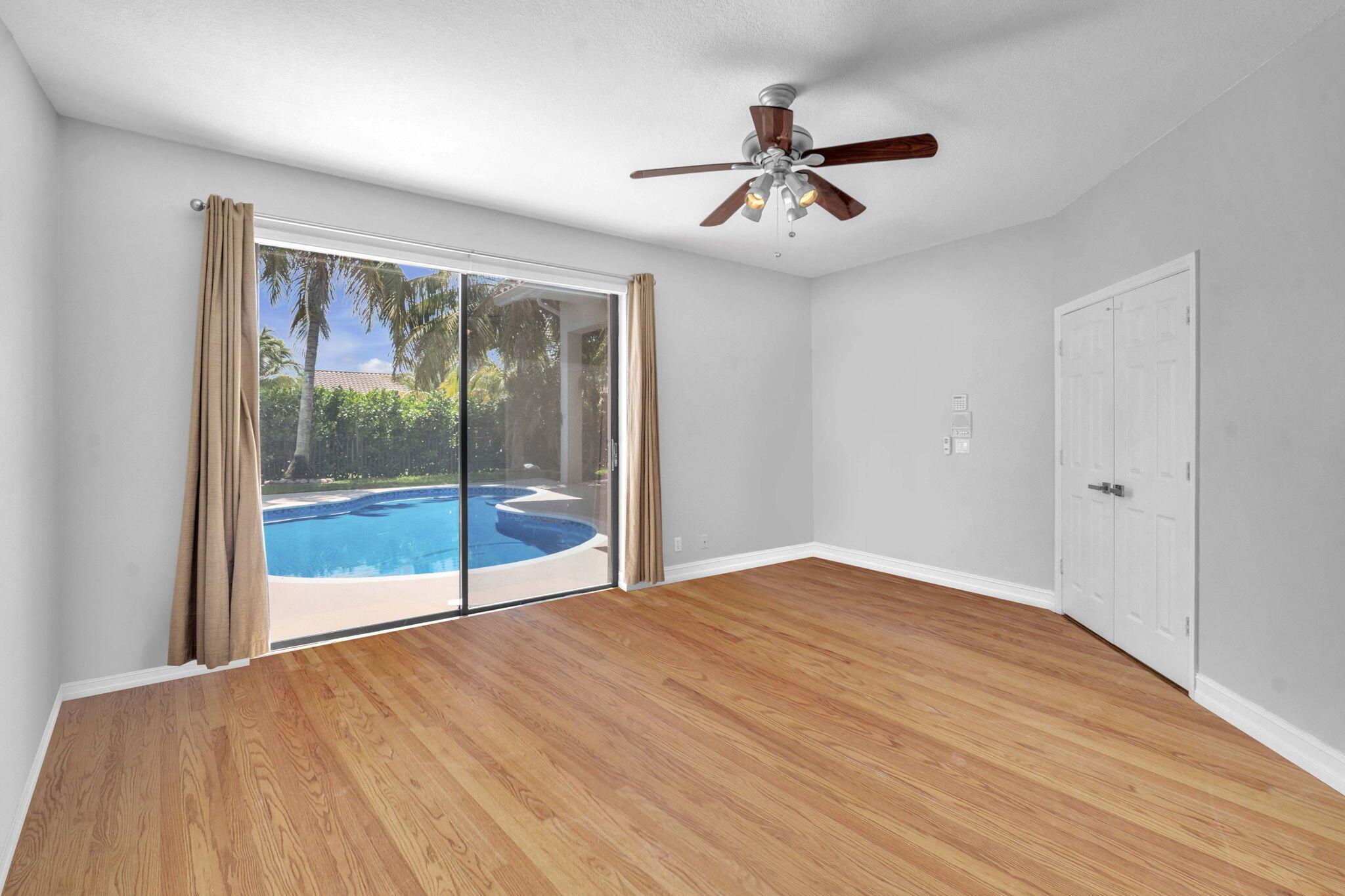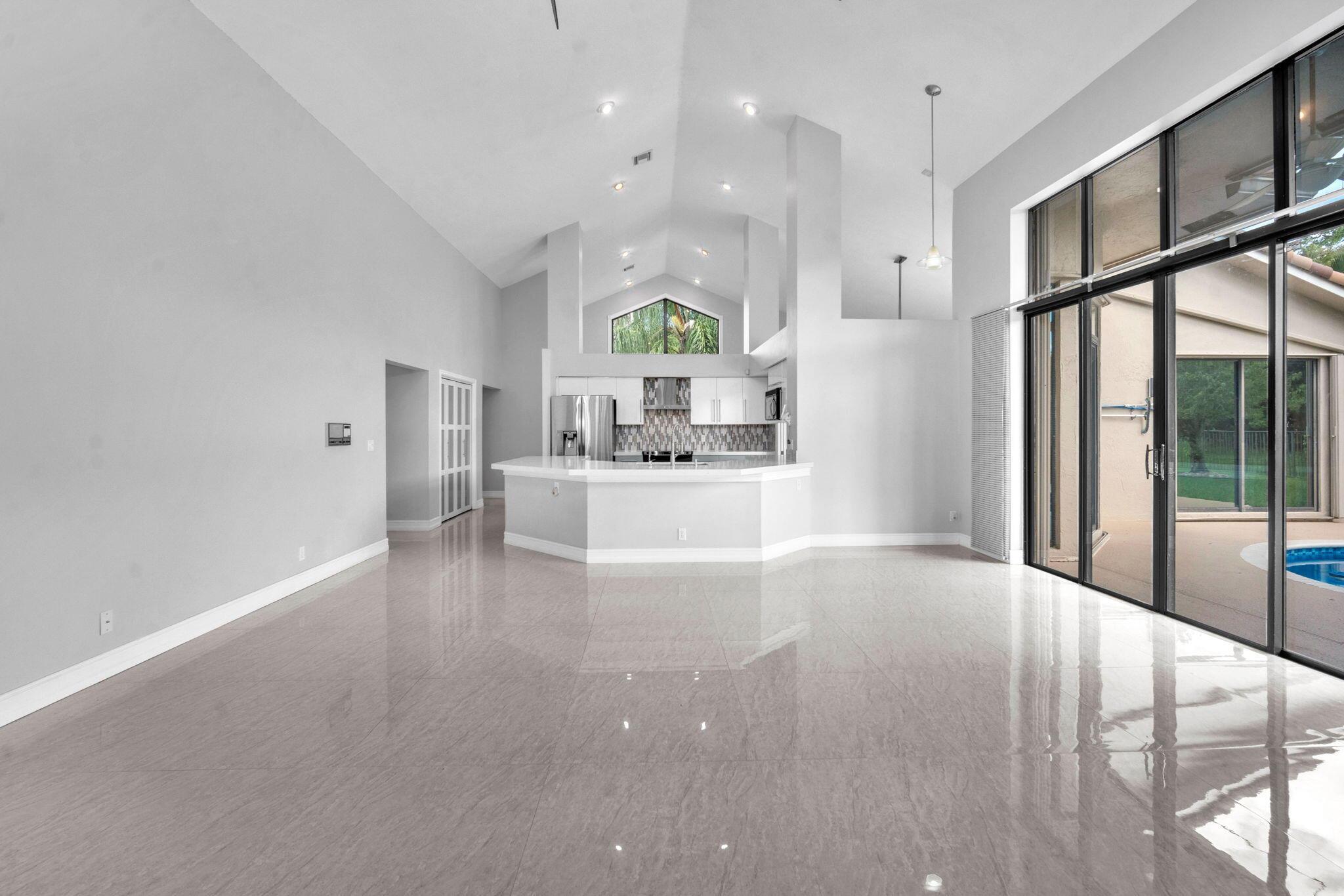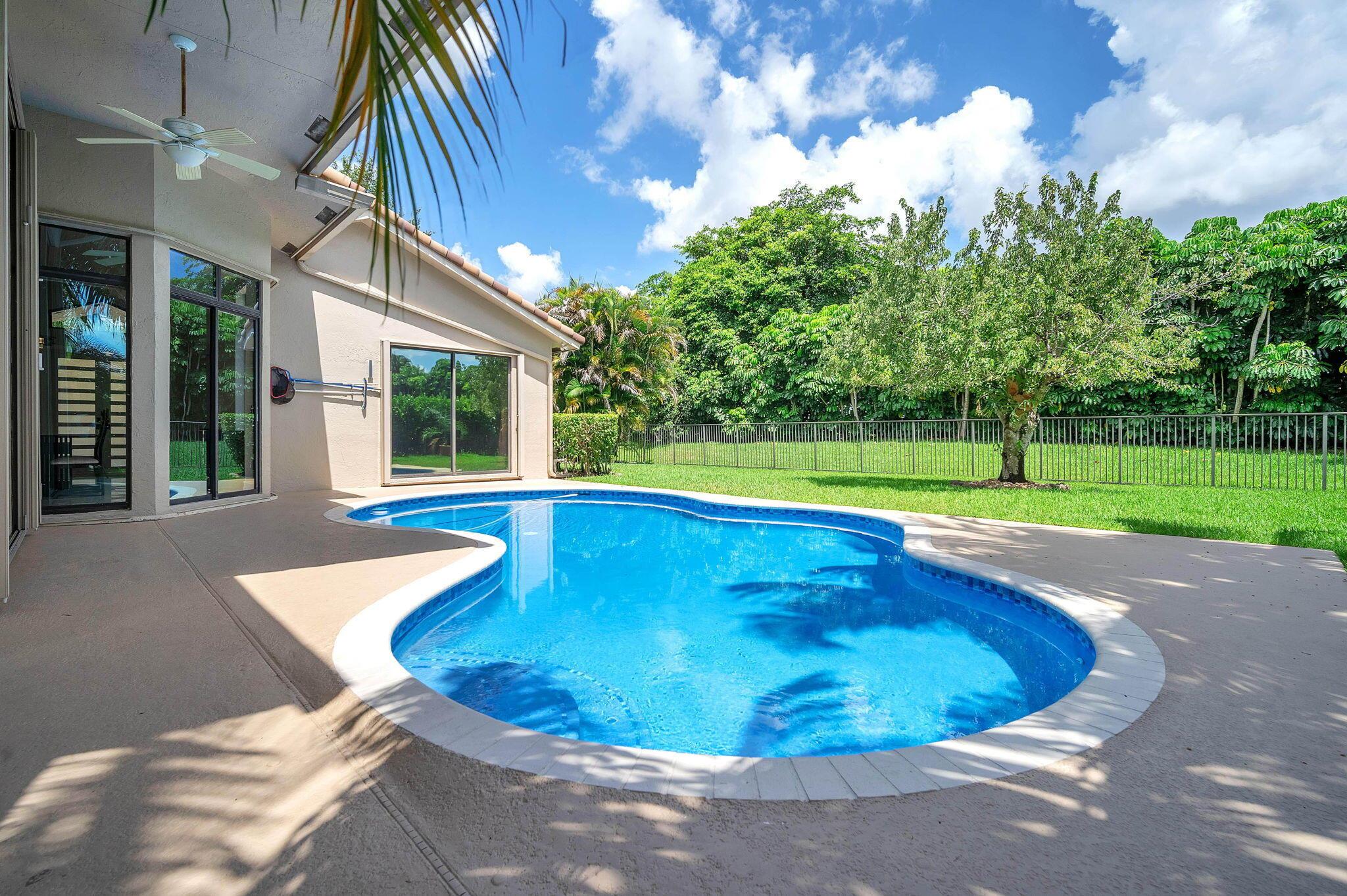 Discover Tequesta, Weston's best-kept secret, nestled next to Peace Mound Park in a guard-gated community. This stunning 4-bedroom, 3-bathroom home sits on a tranquil 1/3-acre lot at the end of a cul-de-sac. The property features a circular driveway, an oversized 2-car garage, a private pool, and a fully fenced backyard.Step inside to a split floorplan with 17-foot high ceilings and spacious common areas adorned with 32x32 porcelain tile. The bedrooms feature laminate wood flooring for a warm and inviting feel. The elegant living and dining rooms lead to a gourmet kitchen equipped with stainless steel appliances, oversized quartz countertops, and lacquered Italian-style cabinets. The expansive family room, complete with a dual-head ceiling fan and breakfast area, is perfect for