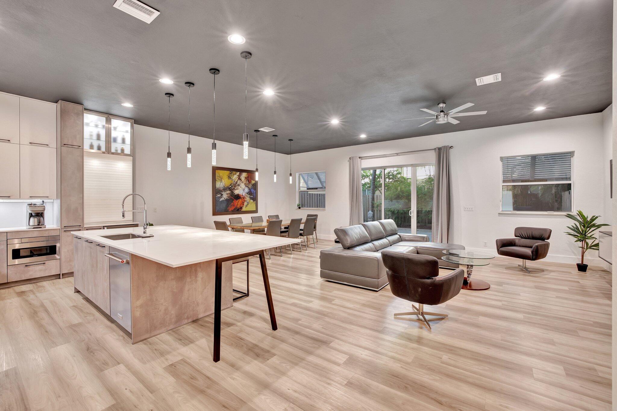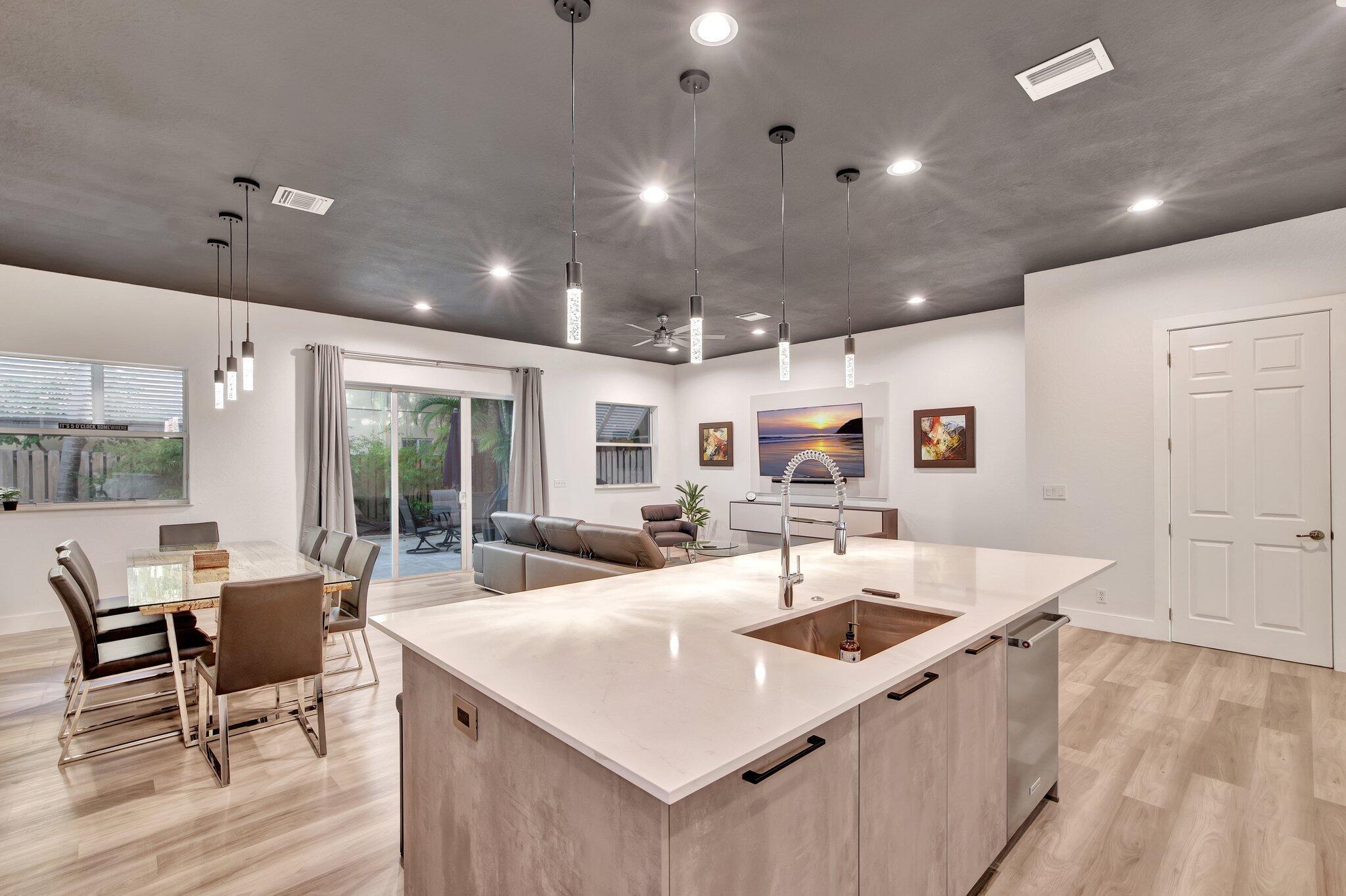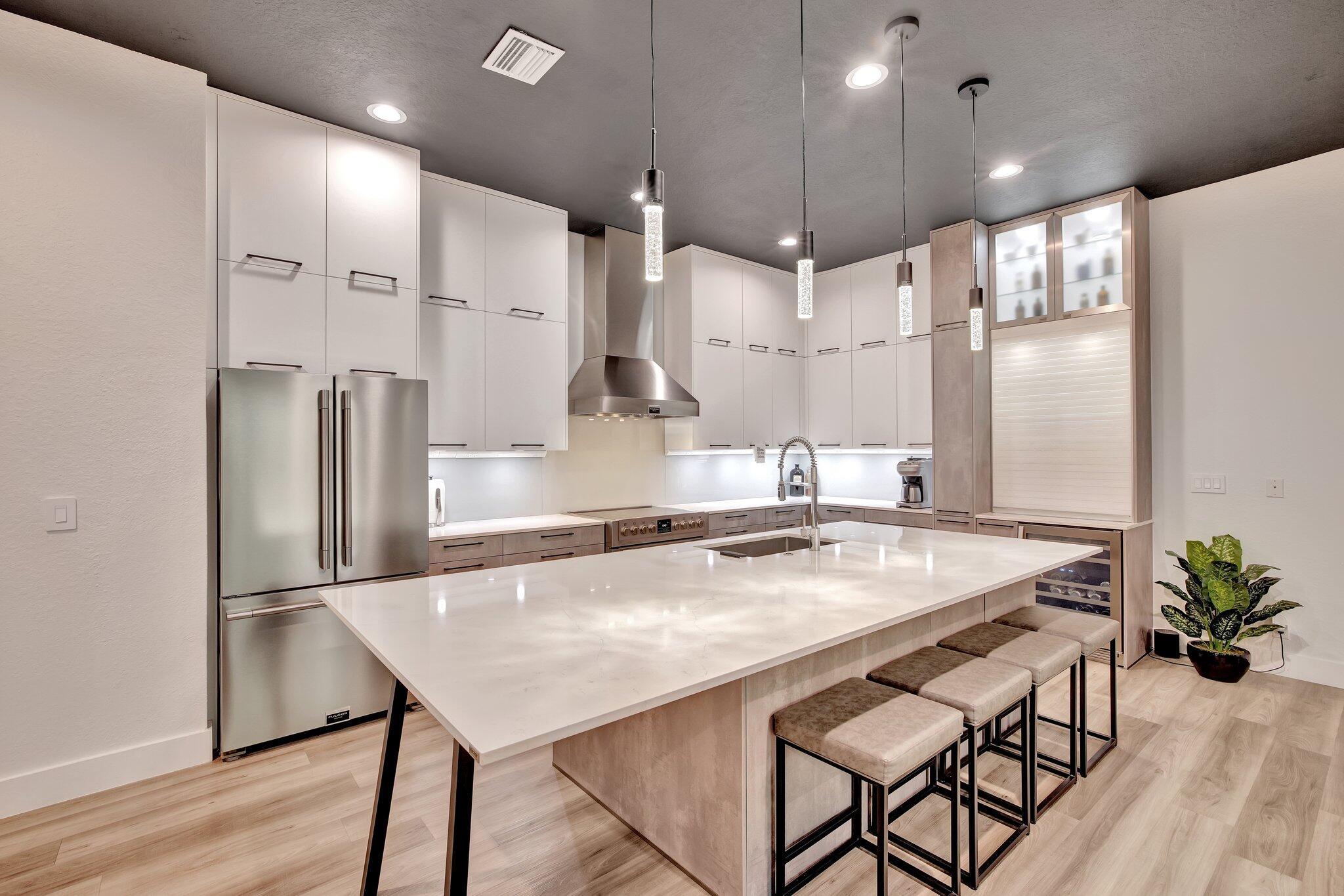 EXPERIENCE 3/3 MODERN LUXURY AND EXCEPTIONAL CRAFTSMANSHIP. This stunning home features a meticulously remodeled kitchen, updated just two years ago, showcasing Hacker German Kitchen Cabinets with a sleek glass roll-up bar door and elegant quartz countertops.Cooking becomes a pleasure with top-of-the-line appliances, including a Fulgar Milano induction range with a professional hood and a dual-compressor refrigerator. A KitchenAid dishwasher and Samsung wine refrigerator complete this chef's dream kitchen.Beyond the kitchen, the home boasts practical and modern upgrades. Enjoy peace of mind with a new Rheem 50-gallon electric water heater and a York 4-ton A/C unit, both installed just two years ago. Laundry is a breeze with an LG stacked washer and dryer, while the Liftmaster...
