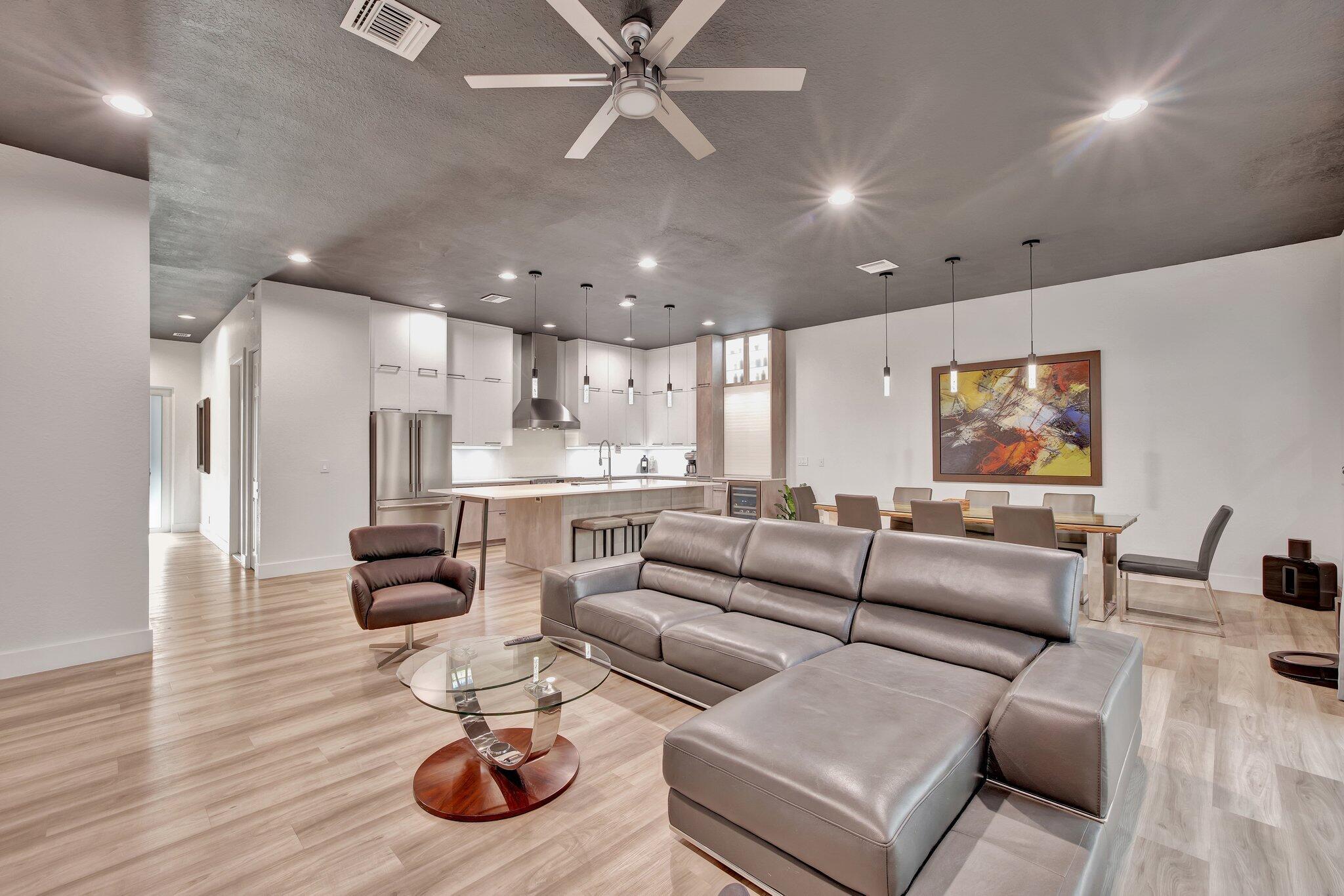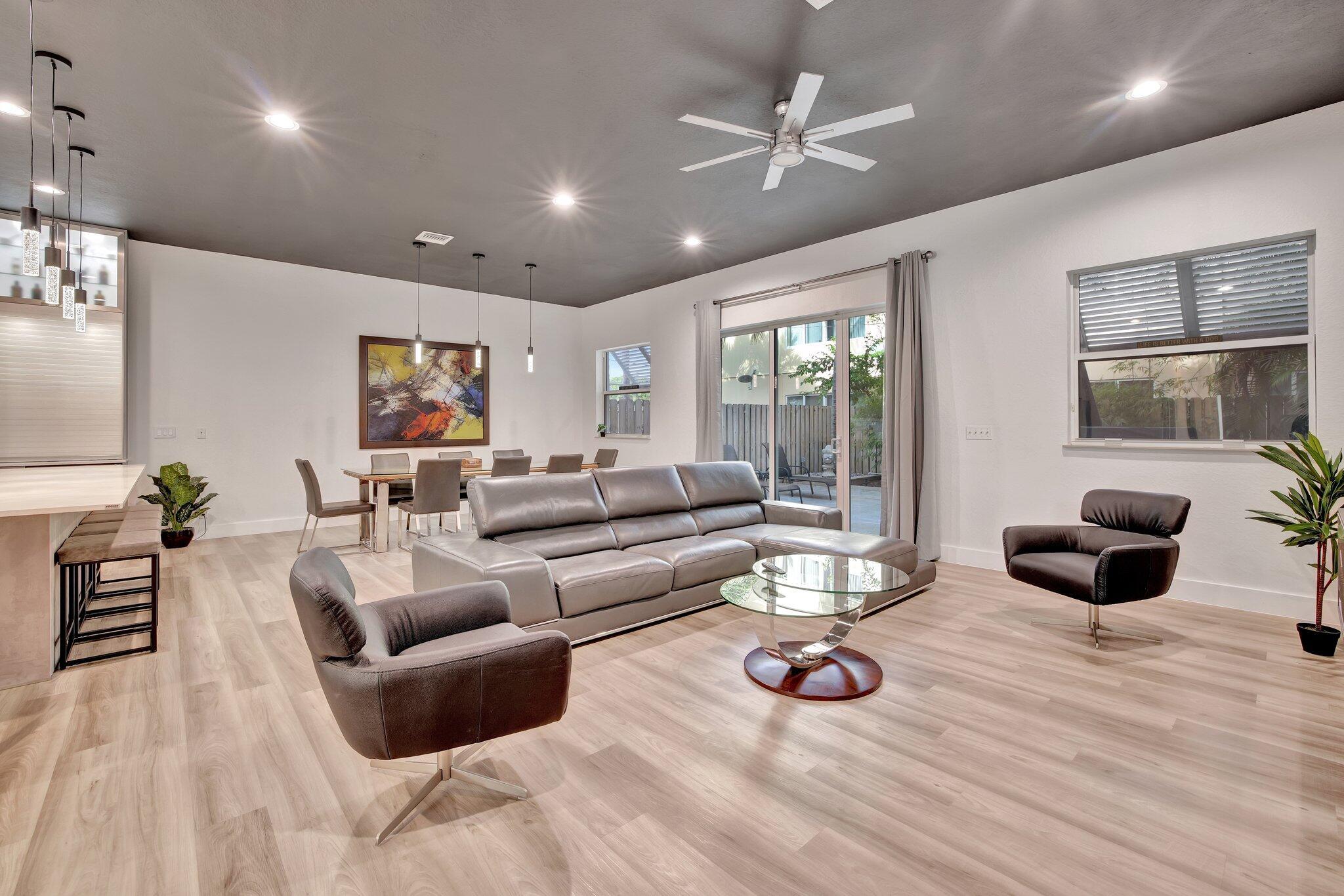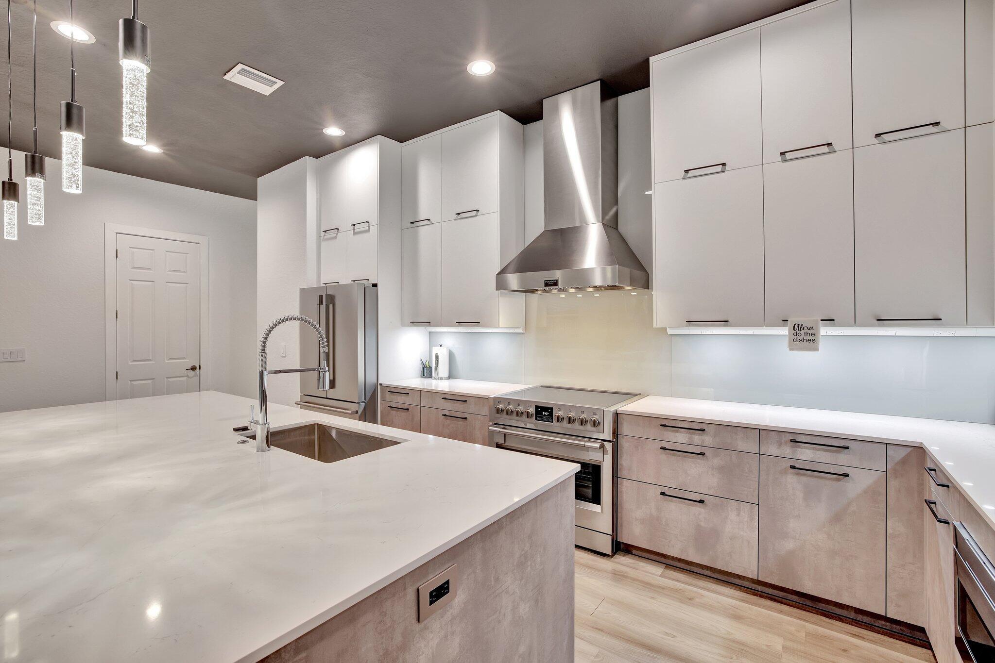 EXPERIENCE 3/3 MODERN LUXURY AND EXCEPTIONAL CRAFTSMANSHIP. This stunning home features a meticulously remodeled kitchen, updated just two years ago, showcasing Hacker German Kitchen Cabinets with a sleek glass roll-up bar door and elegant quartz countertops.Cooking becomes a pleasure with top-of-the-line appliances, including a Fulgar Milano induction range with a professional hood and a dual-compressor refrigerator. A KitchenAid dishwasher and Samsung wine refrigerator complete this chef's dream kitchen.Beyond the kitchen, the home boasts practical and modern upgrades. Enjoy peace of mind with a new Rheem 50-gallon electric water heater and a York 4-ton A/C unit, both installed just two years ago. Laundry is a breeze with an LG stacked washer and dryer, while the Liftmaster...