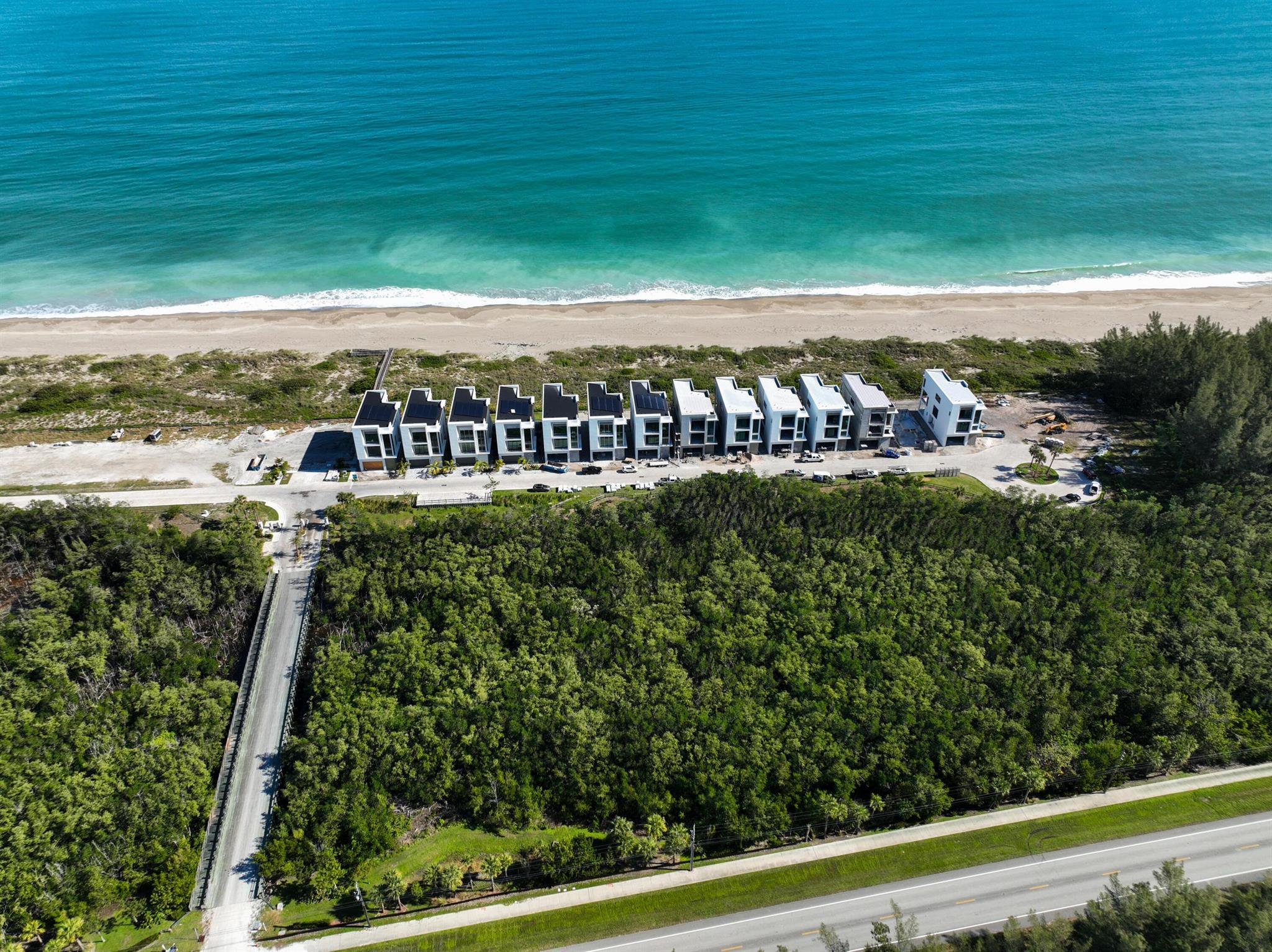 Decorated models open daily 12-5. Brand new luxury home enclave nestled btwn the Ocean & Intracoastal offers unparalleled seaside living. Each home is an oceanfront masterpiece, mere steps from your private beach. This stunning 3-story residence spans 3,211sqft, meticulously designed to maximize breathtaking ocean views. Floor-to-ceiling windows & expansive outdoor terraces blur the line btwn indoor & outdoor living.''No pool, solar panel or batteries. LVP floor and Bosch appliances.''