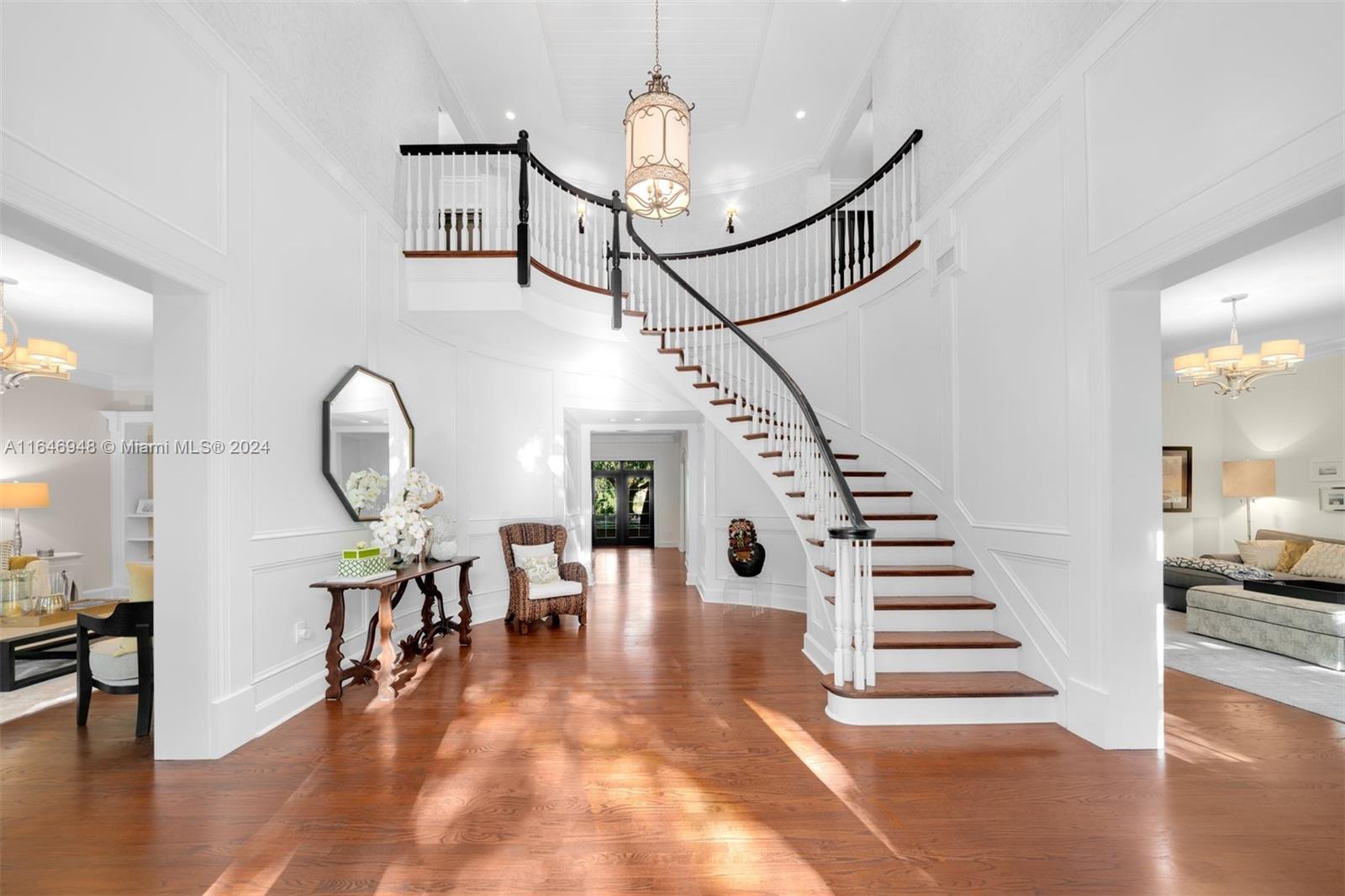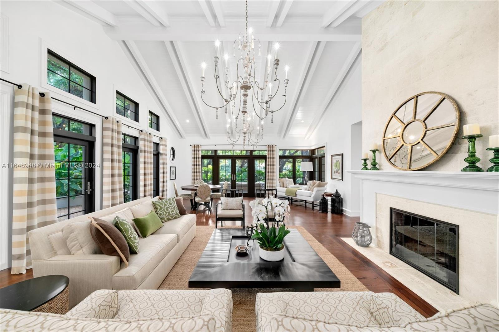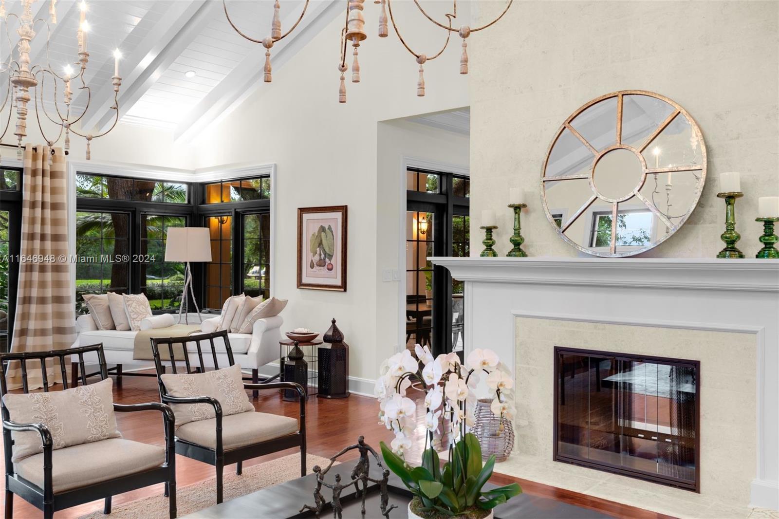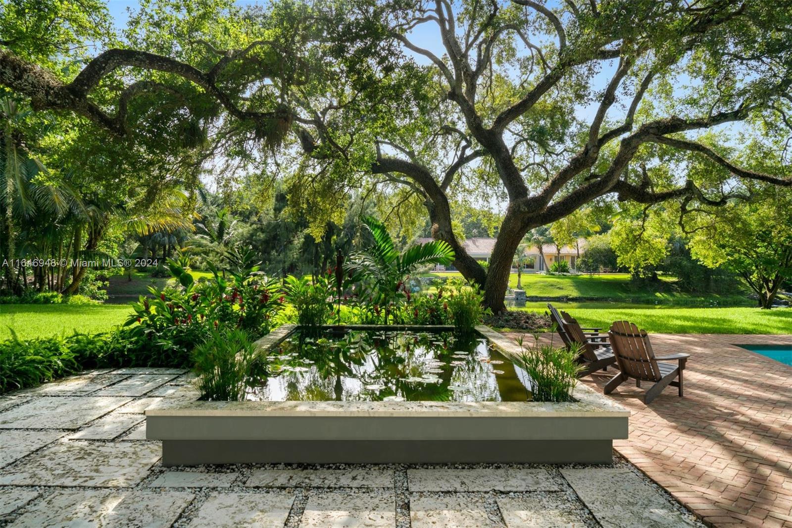 Completely renovated 6,790 SF, 5-BD, 5.5-BA lakefront estate on a 1.5-acre lot in the guard-gated community of Snapper Creek Lakes, with a stunning grand foyer entry, high volume ceilings, and hardwood oak flooring throughout. An open family and dining room offers a two-sided fireplace, coffered ceilings, and wet bar. The eat-in kitchen has Caesarstone quartz countertops, Waterworks fixtures, custom cabinetry, an expansive center island, and luxury appliances. Award-winning outdoor areas, designed by landscape architect Orlando Comas, showcase lush tropical landscaping with mature trees, grotto with fountain, pond, patio with pergola, and a pool. Includes a 2-car garage, impact windows and doors, and new roof.