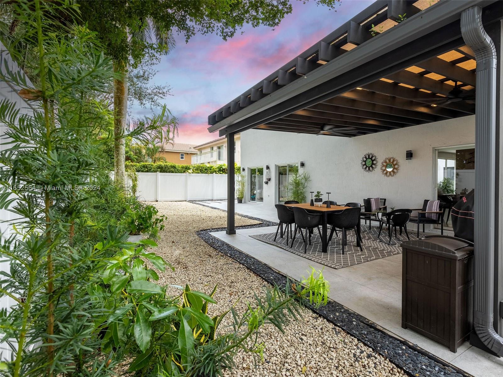 Welcome Home to a beautifully renovated 4-bedroom, 4-bathroom courtyard home in Emerald Estates! This gated community is renowned for its top-rated schools and location. The residence has a charming courtyard entrance with an open living room area. Stunning chef's kitchen with Samsung SS appliances, double ovens, a wine bar/cooler, an ice maker, and a breakfast nook. Great floorplan with lots of natural light & a separate 1 BR/1 Bth guest house with Murphy bed—ideal for visitors, in-law suite, or a home office. There is a private patio with an outdoor kitchen under a pergola & a fully fenced yard. The outdoor kitchen has a gas grill, dual burner, & fridge. Water Heater 2021, 2 A/C units were changed in 2017, & the exterior paint was completed in 2022. Two-car garages with an EV charger.