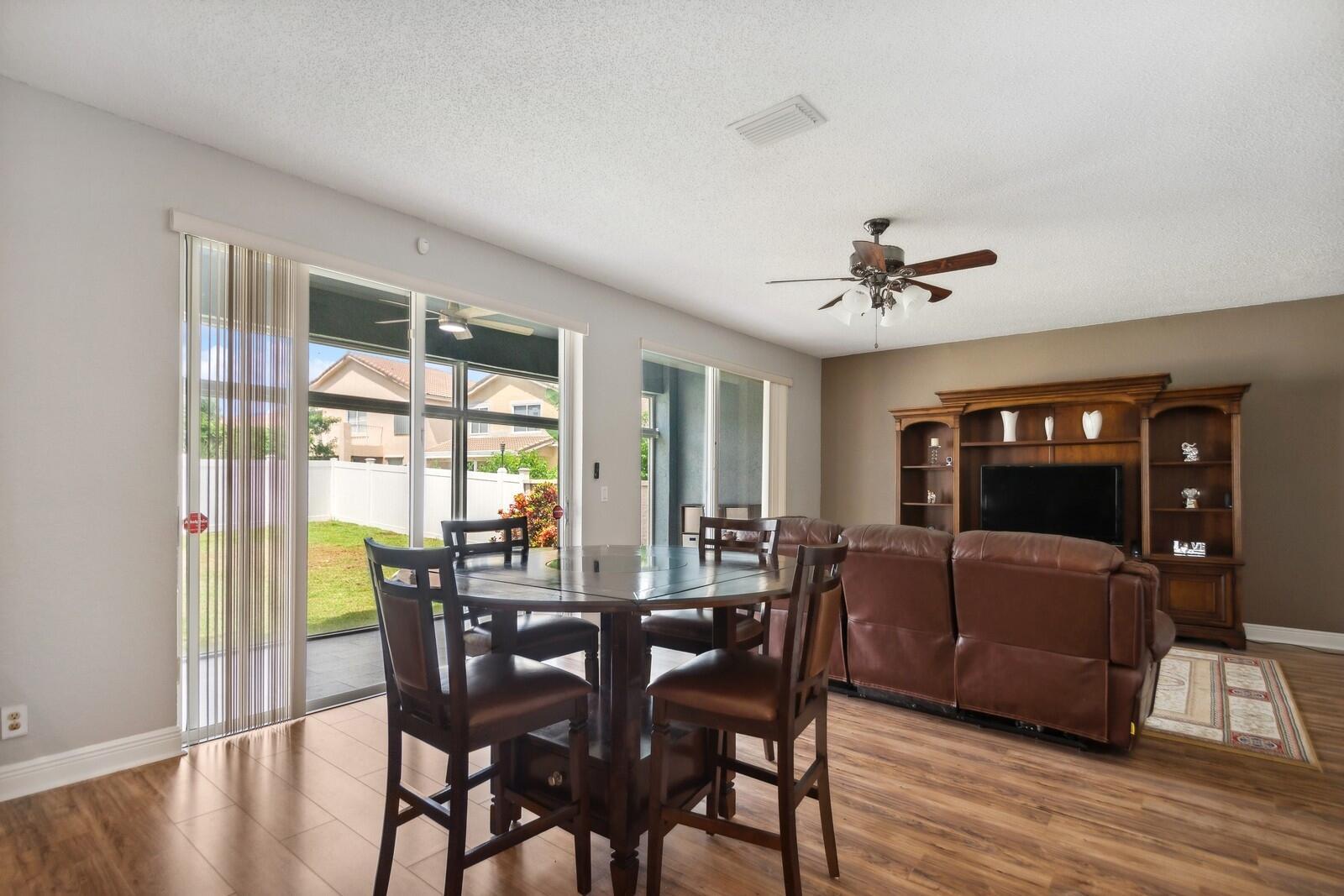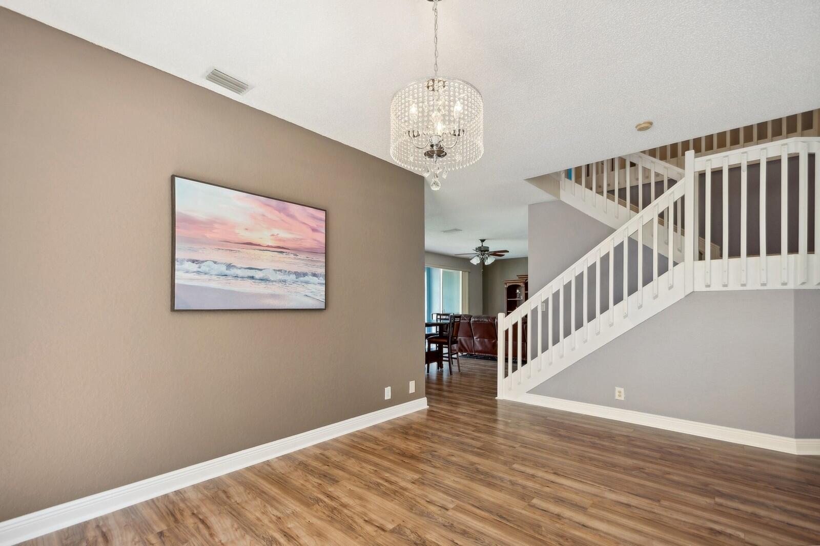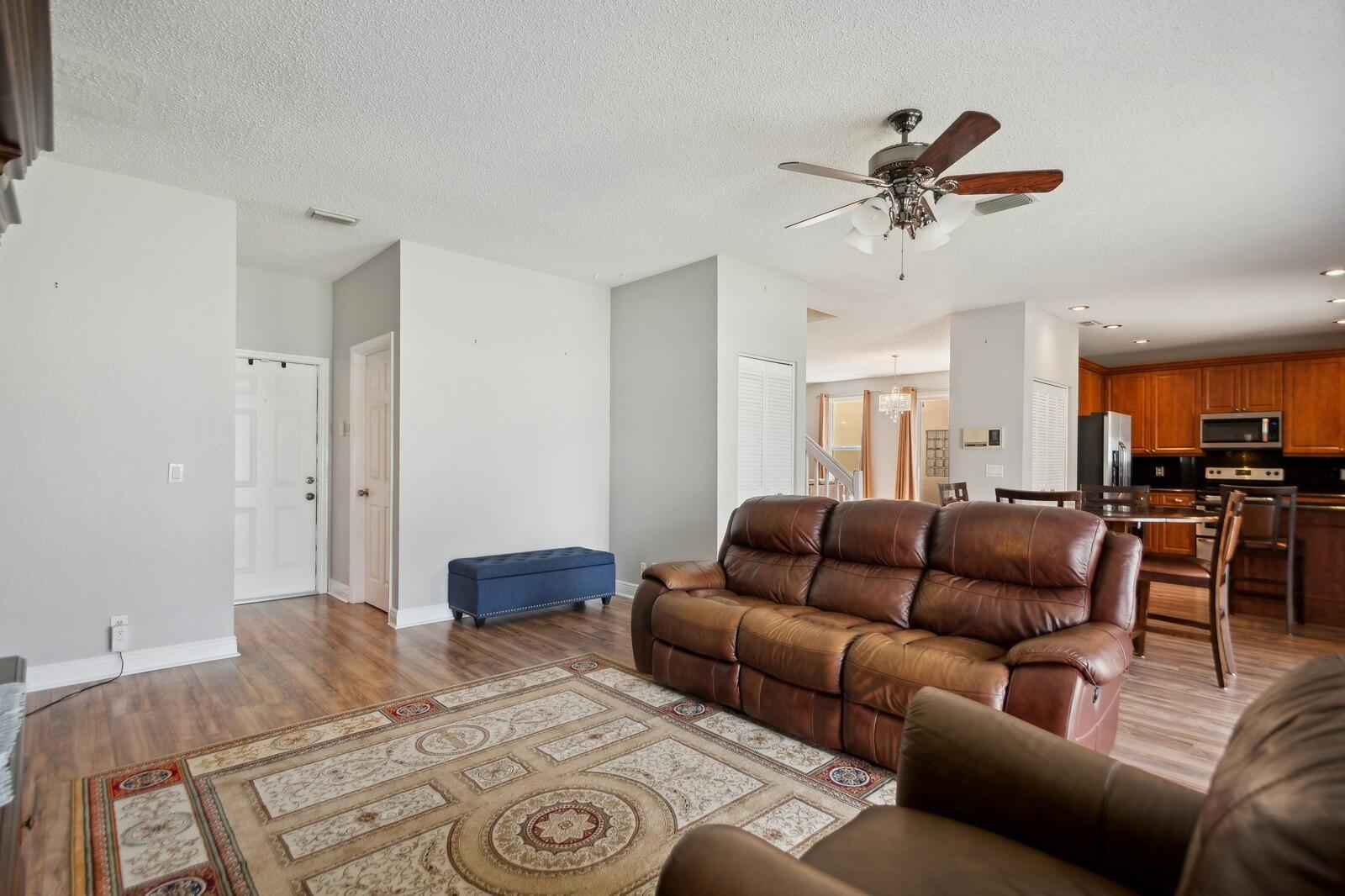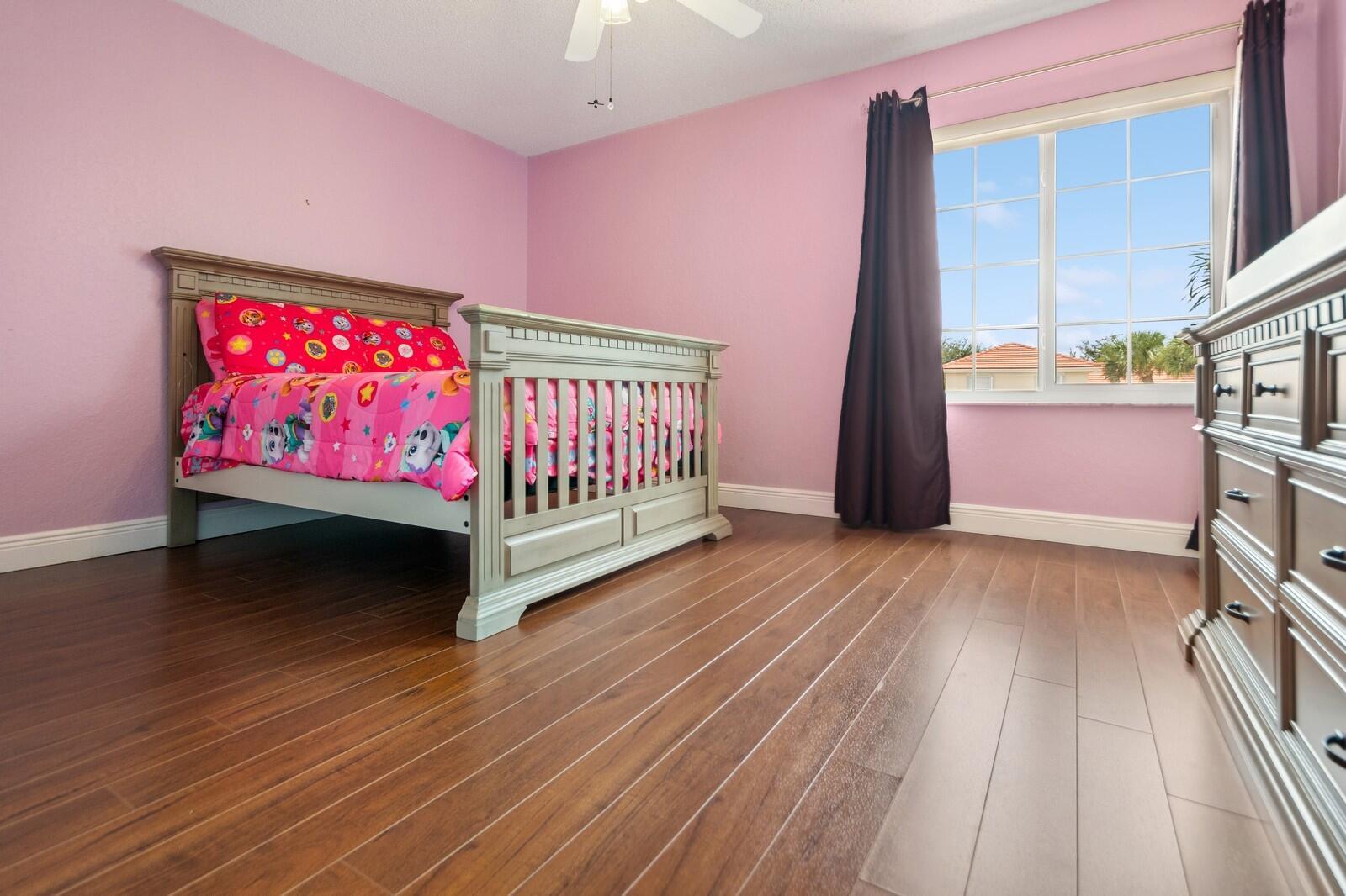 Step right into this beautifully renovated 4-bedroom home, boasting a spacious and open layout with full hurricane impact front door, garage door, windows, and sliders. Recently updated by the current owner, the home features a brand-new kitchen, remodeled bathrooms, luxury laminate flooring, and fresh paint throughout. The newer air conditioning system comes with updated ductwork for enhanced efficiency. The primary suite includes a spacious bathroom, double walk-in closets, and an additional room with access to a walk-out second-floor balcony. Outside, you'll find a fully fenced yard and a two-car garage. The low monthly association fee includes access to a stunning community pool. Plus, it's conveniently located within walking distance of Sunrise Elementary School.