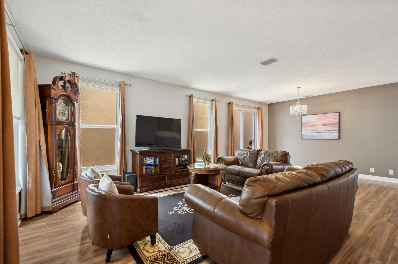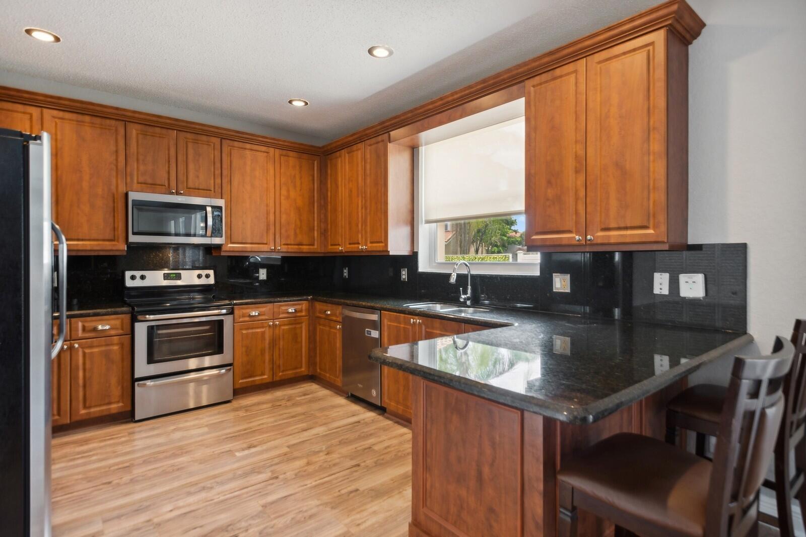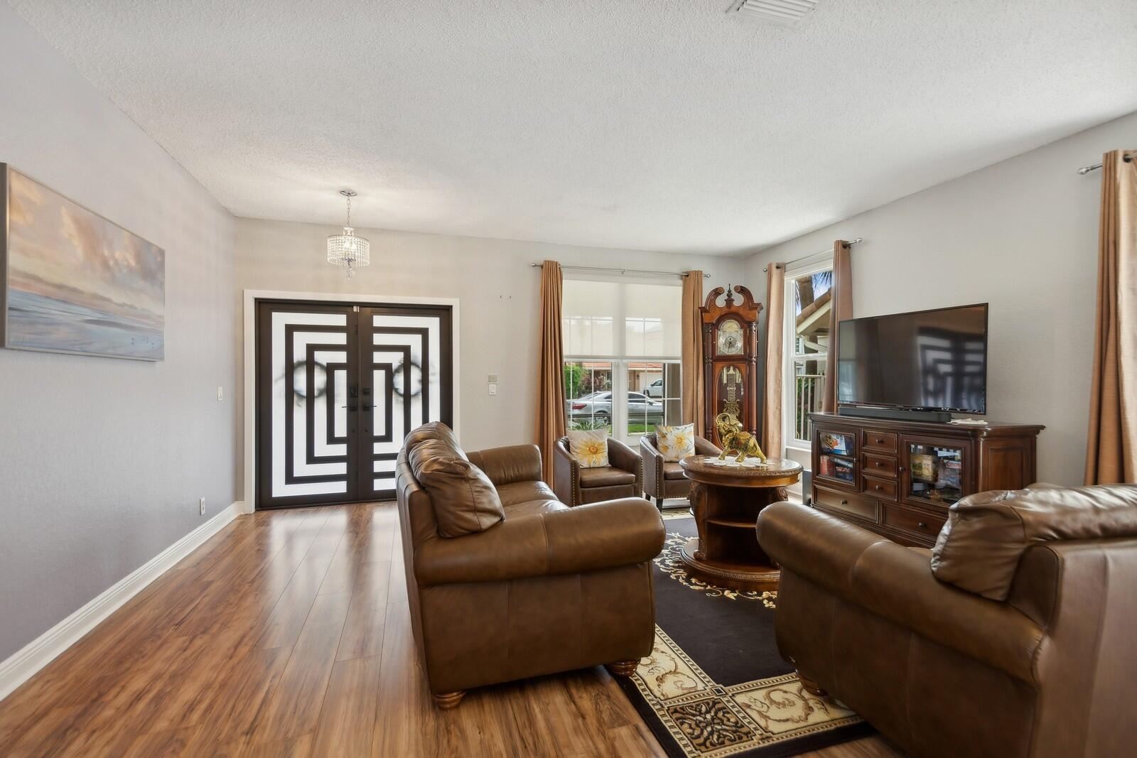 Step right into this beautifully renovated 4-bedroom home, boasting a spacious and open layout with full hurricane impact front door, garage door, windows, and sliders. Recently updated by the current owner, the home features a brand-new kitchen, remodeled bathrooms, luxury laminate flooring, and fresh paint throughout. The newer air conditioning system comes with updated ductwork for enhanced efficiency. The primary suite includes a spacious bathroom, double walk-in closets, and an additional room with access to a walk-out second-floor balcony. Outside, you'll find a fully fenced yard and a two-car garage. The low monthly association fee includes access to a stunning community pool. Plus, it's conveniently located within walking distance of Sunrise Elementary School.