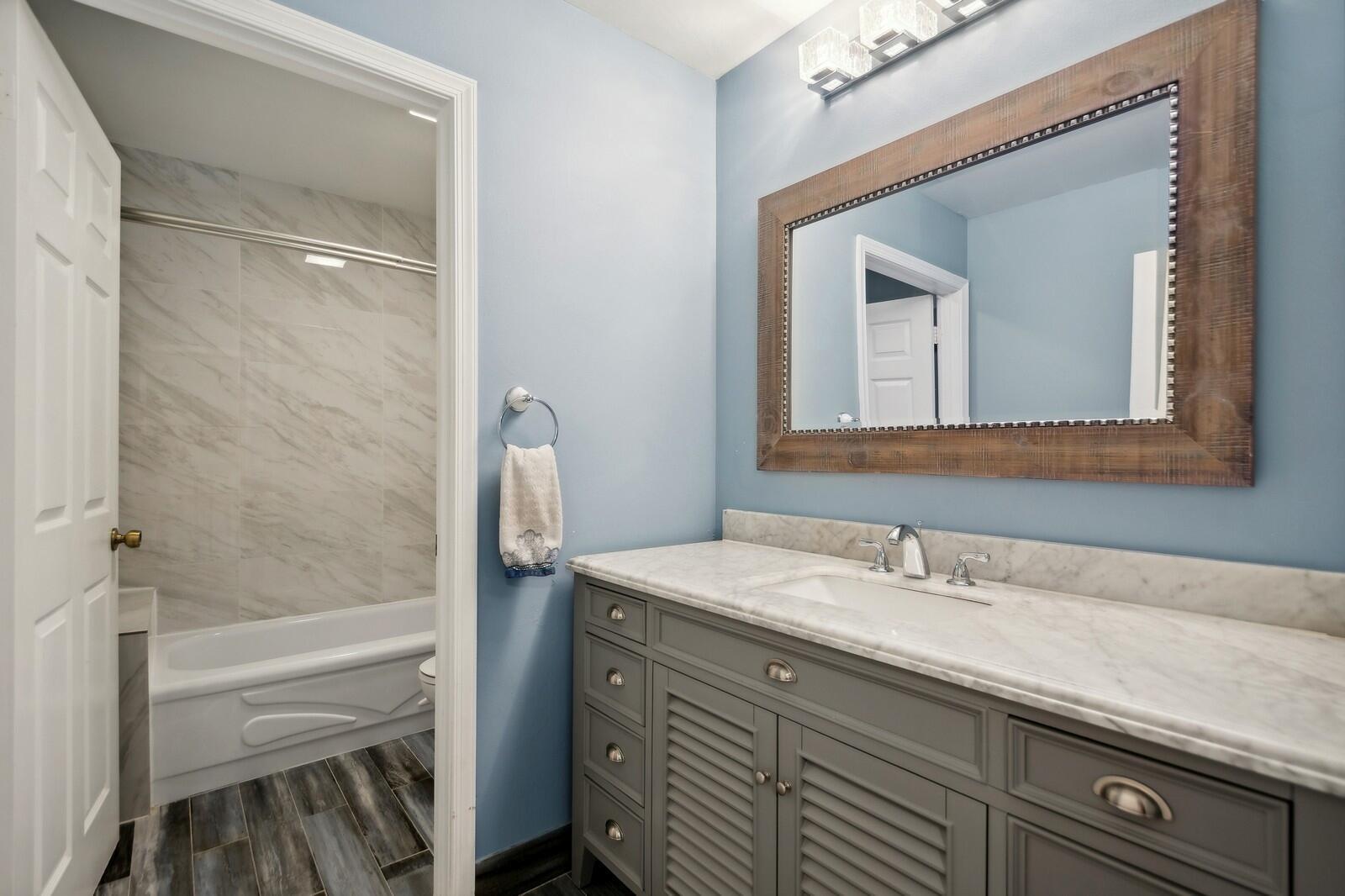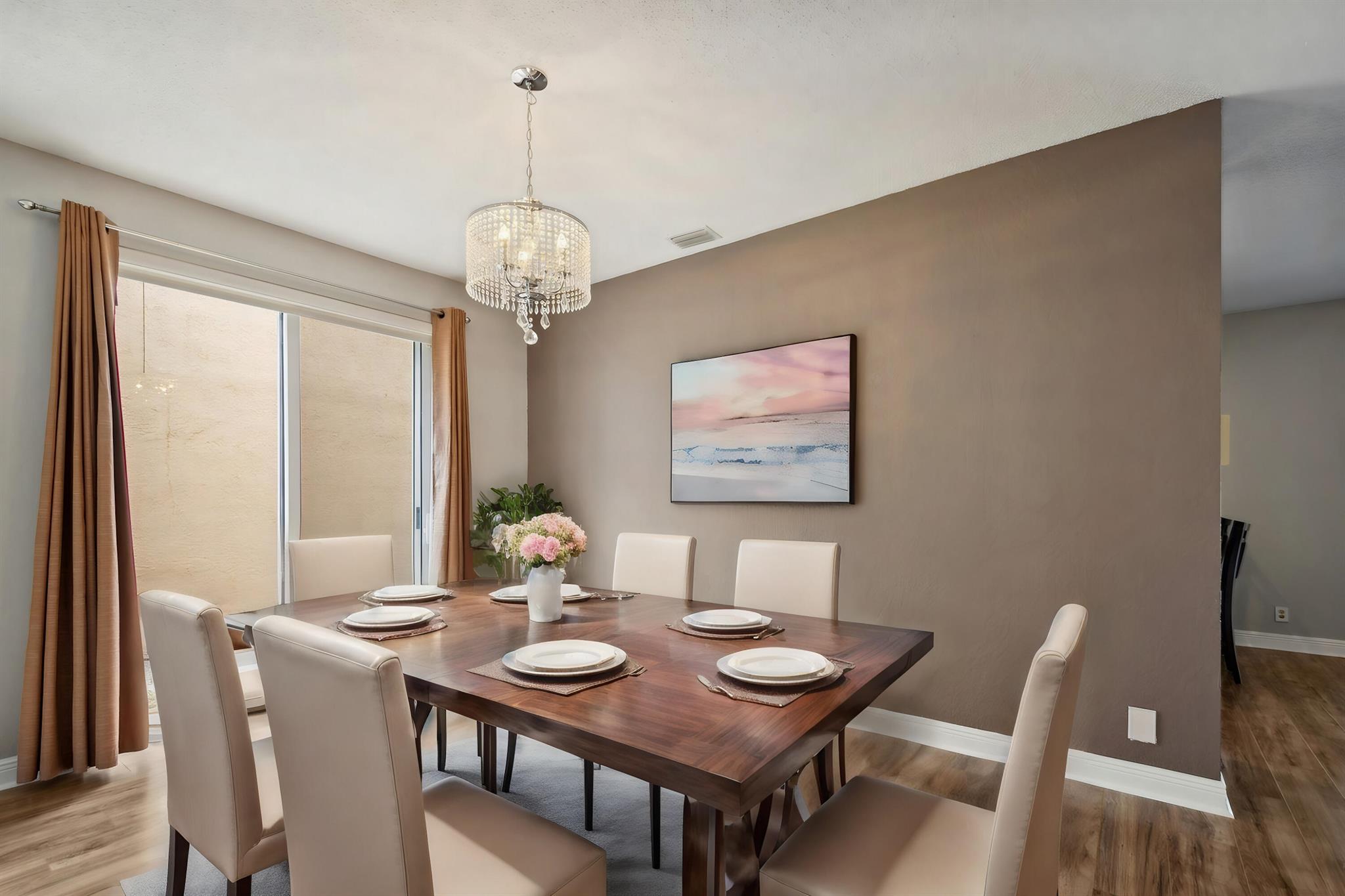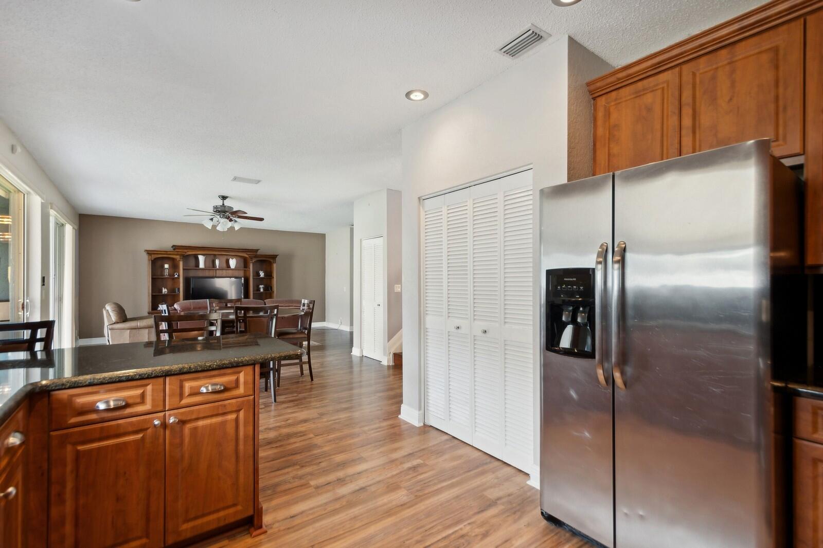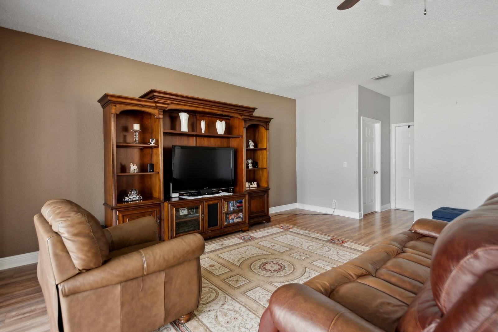 Step right into this beautifully renovated 4-bedroom home, boasting a spacious and open layout with full hurricane impact front door, garage door, windows, and sliders. Recently updated by the current owner, the home features a brand-new kitchen, remodeled bathrooms, luxury laminate flooring, and fresh paint throughout. The newer air conditioning system comes with updated ductwork for enhanced efficiency. The primary suite includes a spacious bathroom, double walk-in closets, and an additional room with access to a walk-out second-floor balcony. Outside, you'll find a fully fenced yard and a two-car garage. The low monthly association fee includes access to a stunning community pool. Plus, it's conveniently located within walking distance of Sunrise Elementary School.