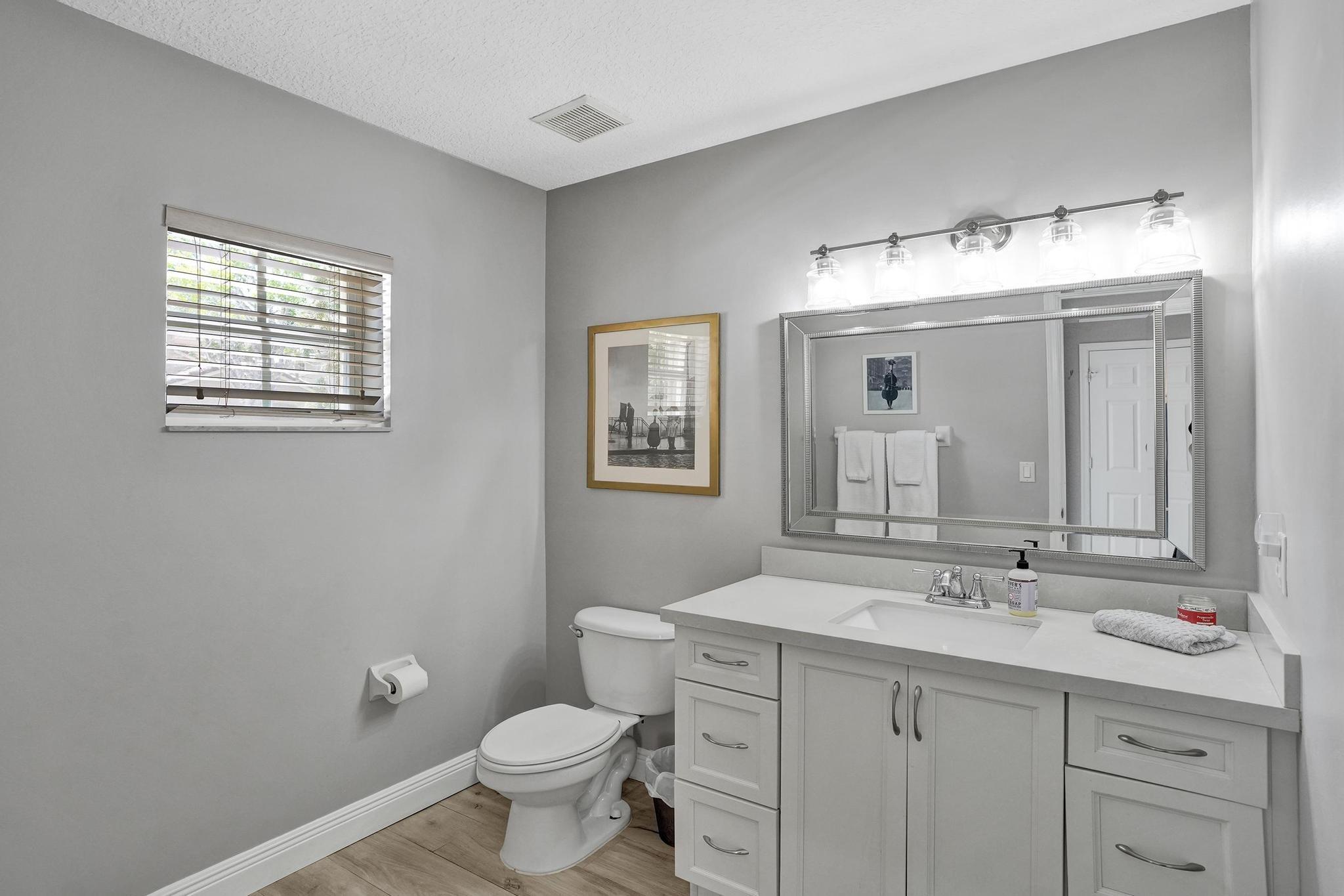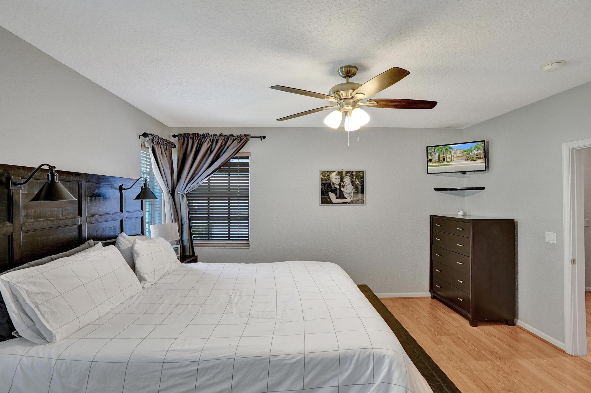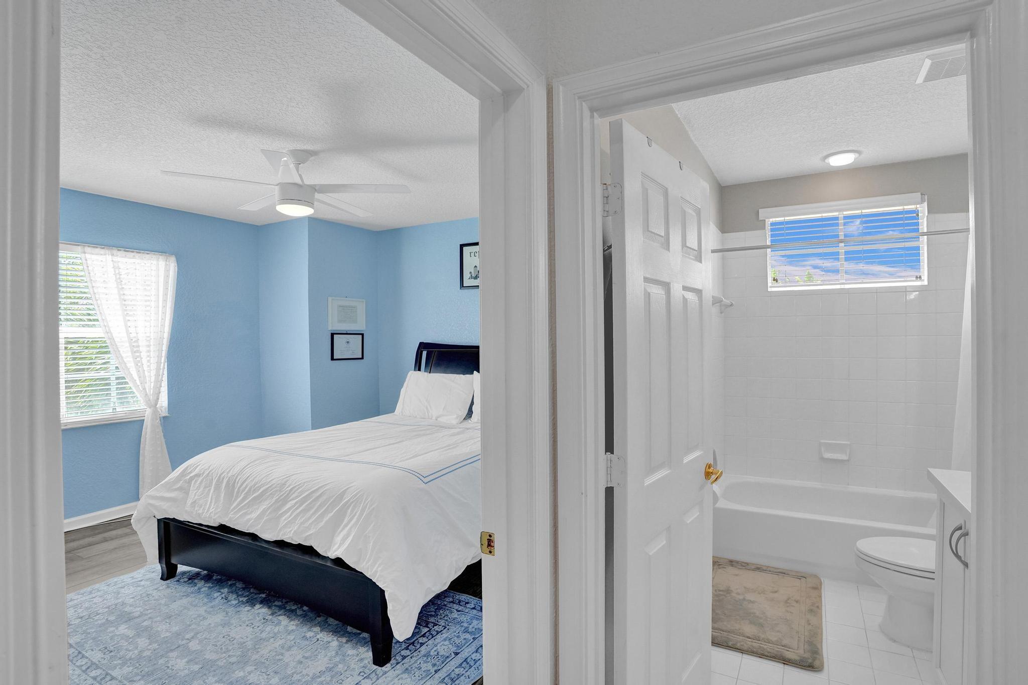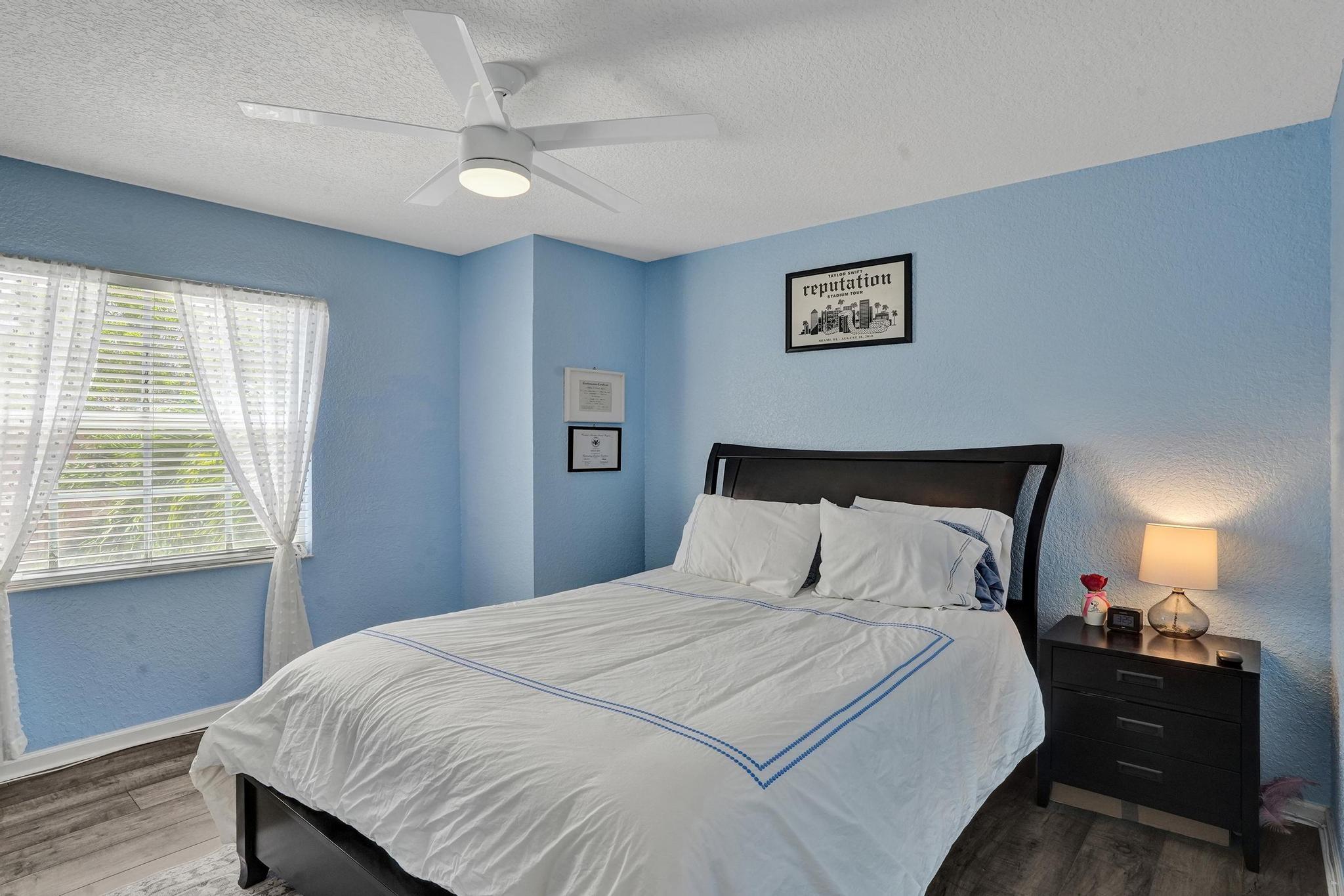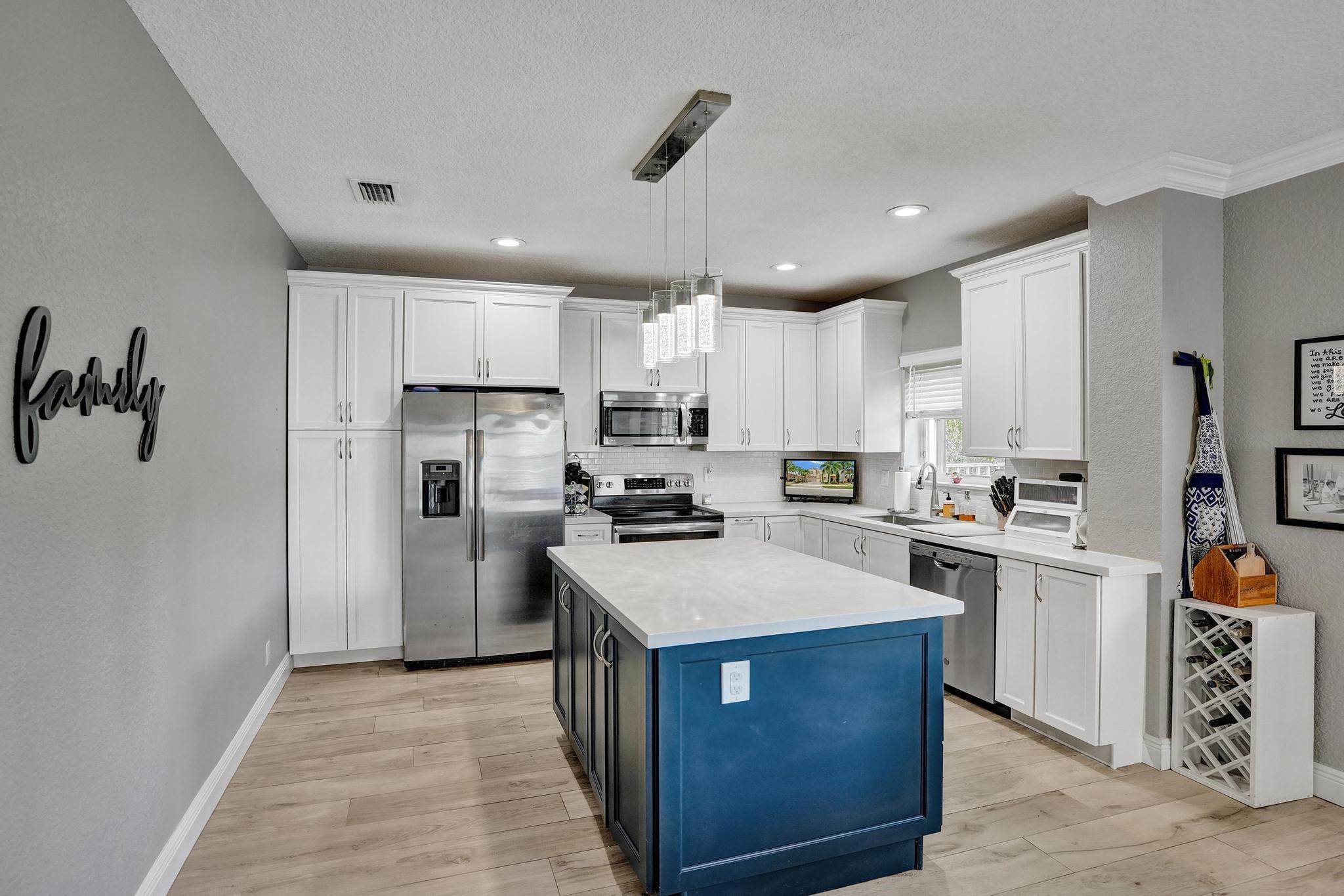 BEAUTIFULLY REMODELED home in gated community. This home features 3 bedrooms, 2.5 bathrooms, 2 car garage, spacious fully fenced backyard with covered patio. Gorgeous REMODELED GOURMET KITCHEN with newer stainless steel appliances including a double oven, modern real wood cabinets, quartz countertops, pull out shelves in pantry. UPDATED BATHROOMS, custom cabinetry in master closet, Modern wood-looking tile floors downstairs and laminate floors upstairs (no carpet). Hurricane impact glass front door, 1 impact window + accordion shutters on the rest. Garage with impact rated door, epoxy flooring and overhead storage. Newer AC & water heater, new fans/light fixtures. Low HOA includes landscaping, cable, alarm monitoring & amenities: Community pool, hot tub, gym and tennis!