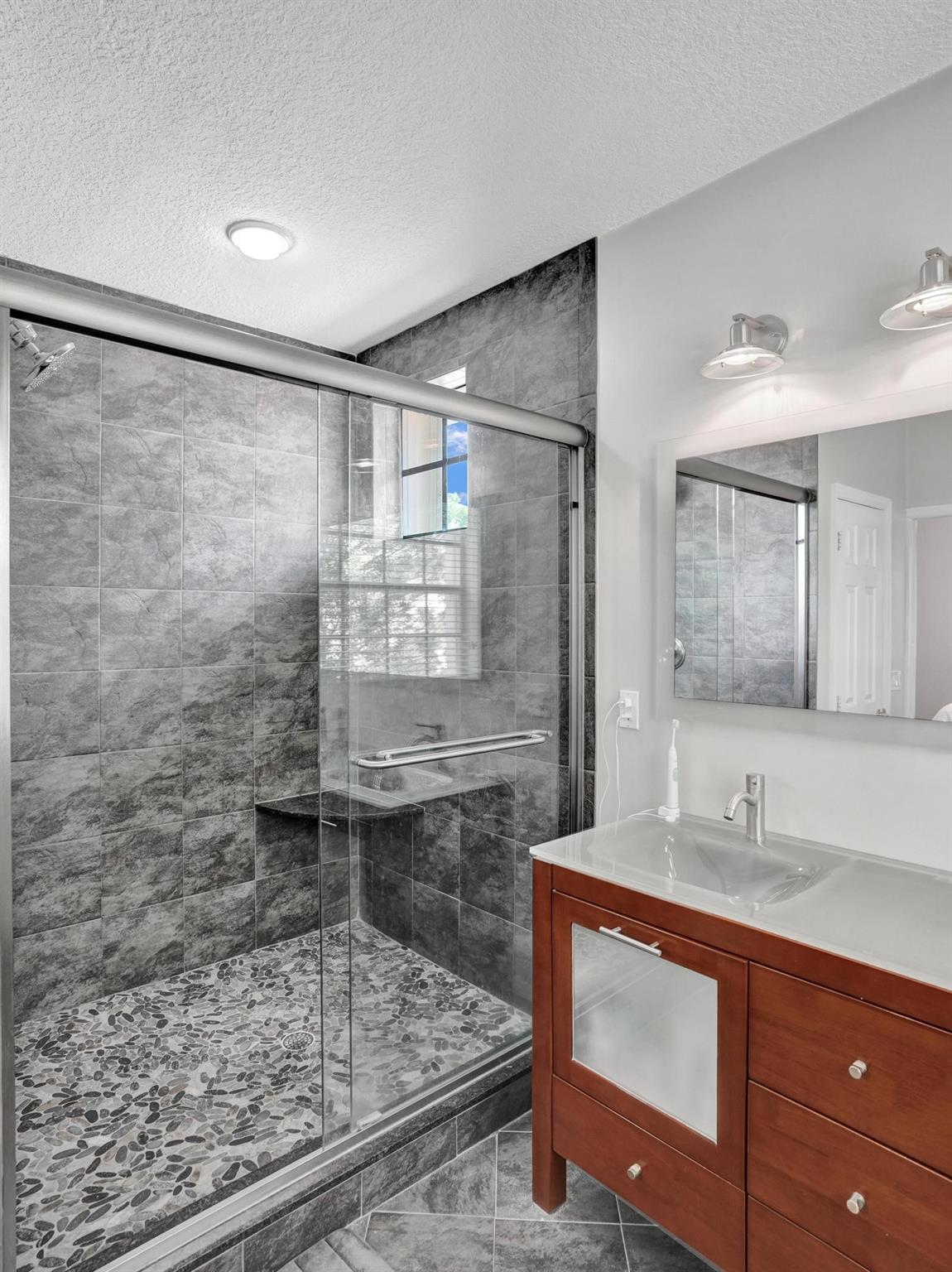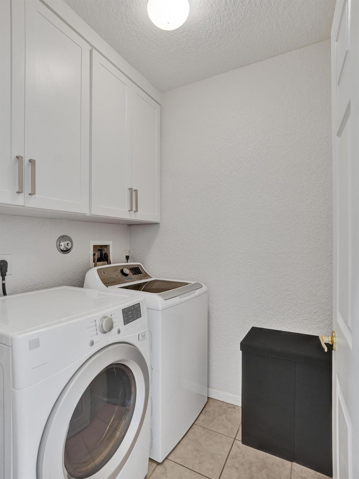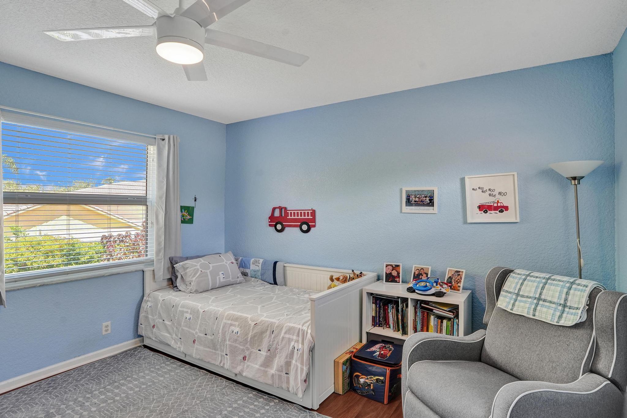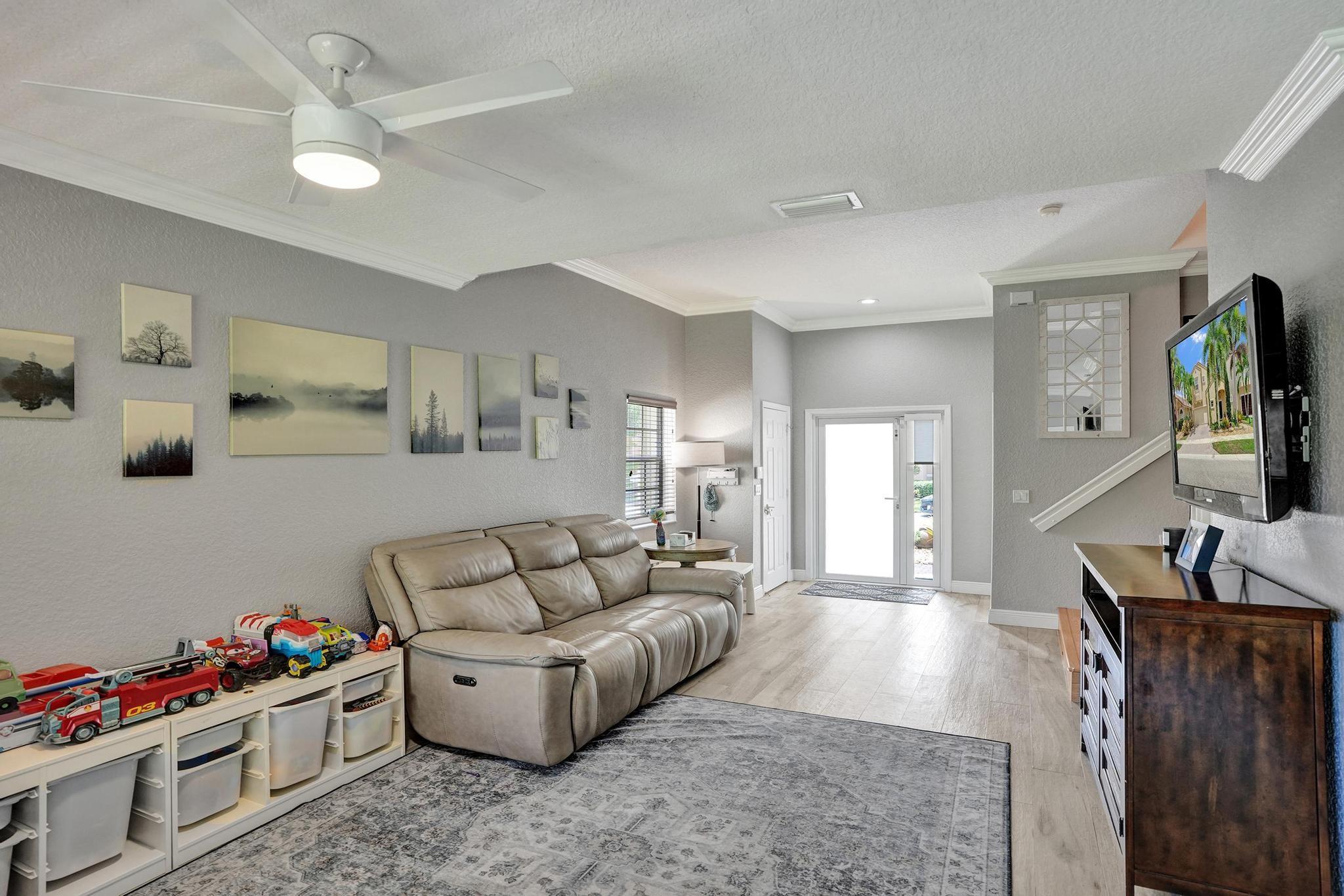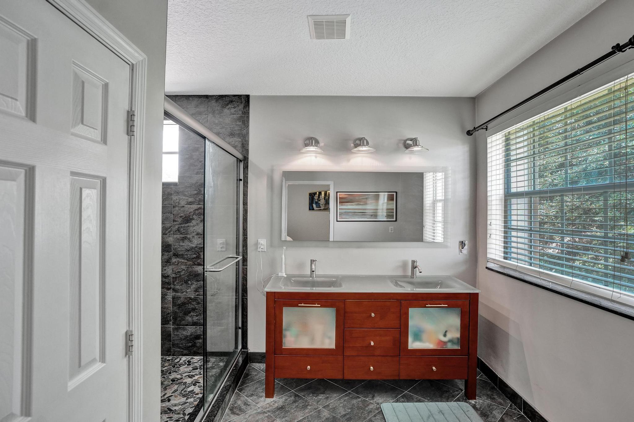 BEAUTIFULLY REMODELED home in gated community. This home features 3 bedrooms, 2.5 bathrooms, 2 car garage, spacious fully fenced backyard with covered patio. Gorgeous REMODELED GOURMET KITCHEN with newer stainless steel appliances including a double oven, modern real wood cabinets, quartz countertops, pull out shelves in pantry. UPDATED BATHROOMS, custom cabinetry in master closet, Modern wood-looking tile floors downstairs and laminate floors upstairs (no carpet). Hurricane impact glass front door, 1 impact window + accordion shutters on the rest. Garage with impact rated door, epoxy flooring and overhead storage. Newer AC & water heater, new fans/light fixtures. Low HOA includes landscaping, cable, alarm monitoring & amenities: Community pool, hot tub, gym and tennis!