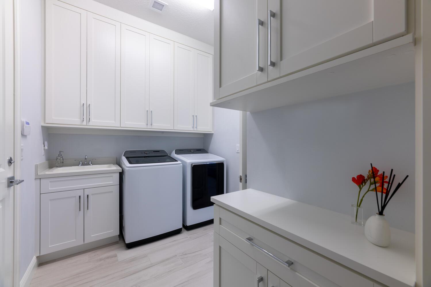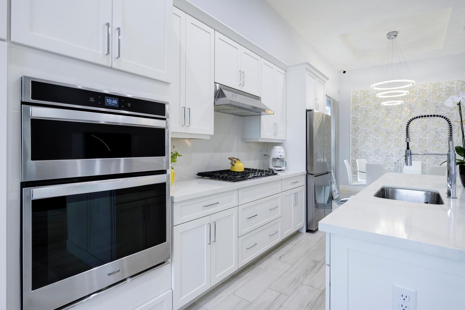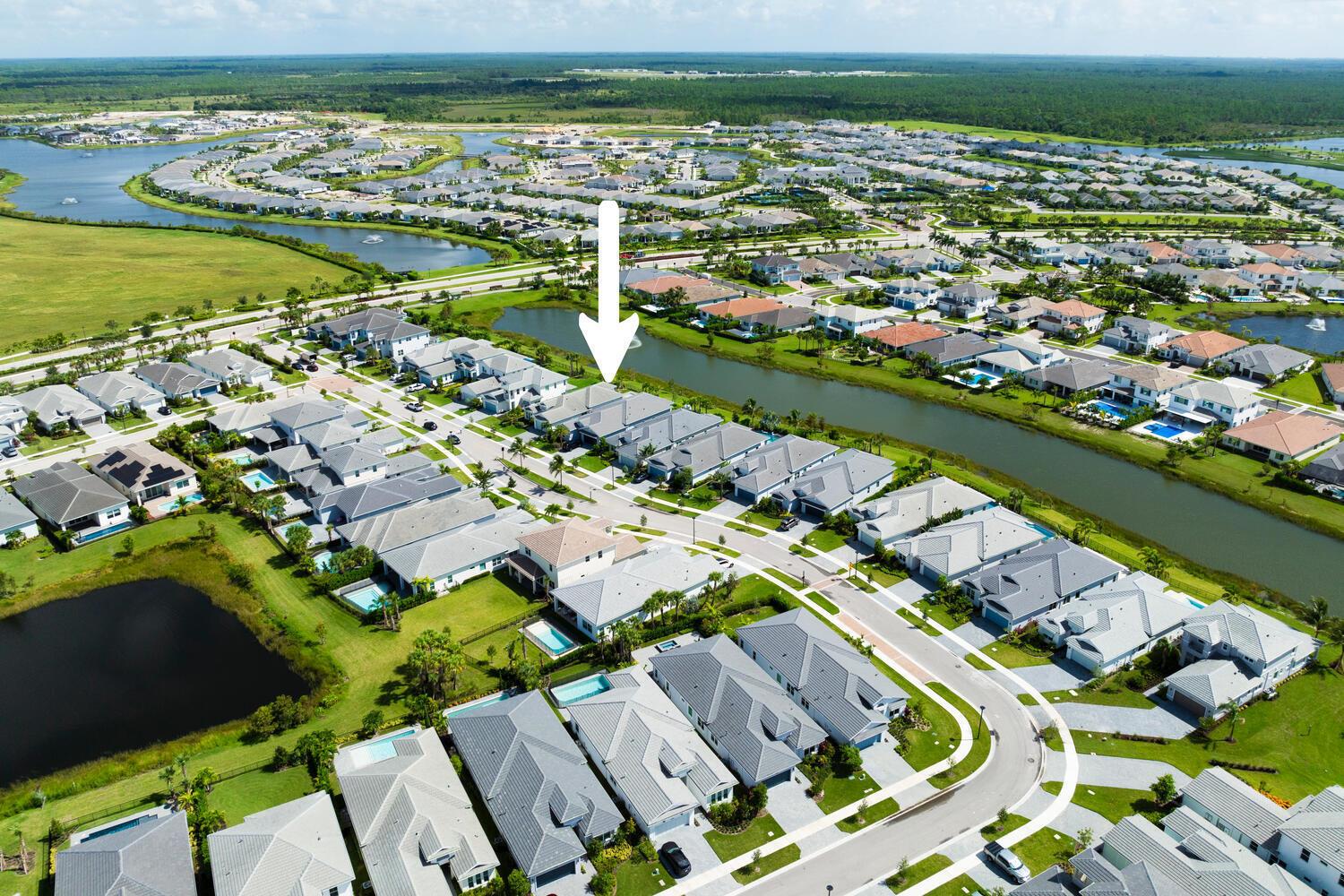 Built on one of the original premium lots in Windgate @ Avenir. This gorgeous waterfront home was built in 2021 with all the new construction kinks worked out, plus significant custom and builder upgrades. Brand new roof and impact windows in 2025. The home is being offered turn-key fully furnished. No detail has been left untouched. As you enter the home, you will immediately notice the custom high end light fixtures throughout and wood plank porcelain tile flooring. The gorgeous kitchen has a huge center island covered with top of the line quartz paired with SS appliances. The living area leads to a wonderful lanai and custom pool overlooking the lake and fountain. The main living area also has custom electric blinds and top of the line ceiling fans.