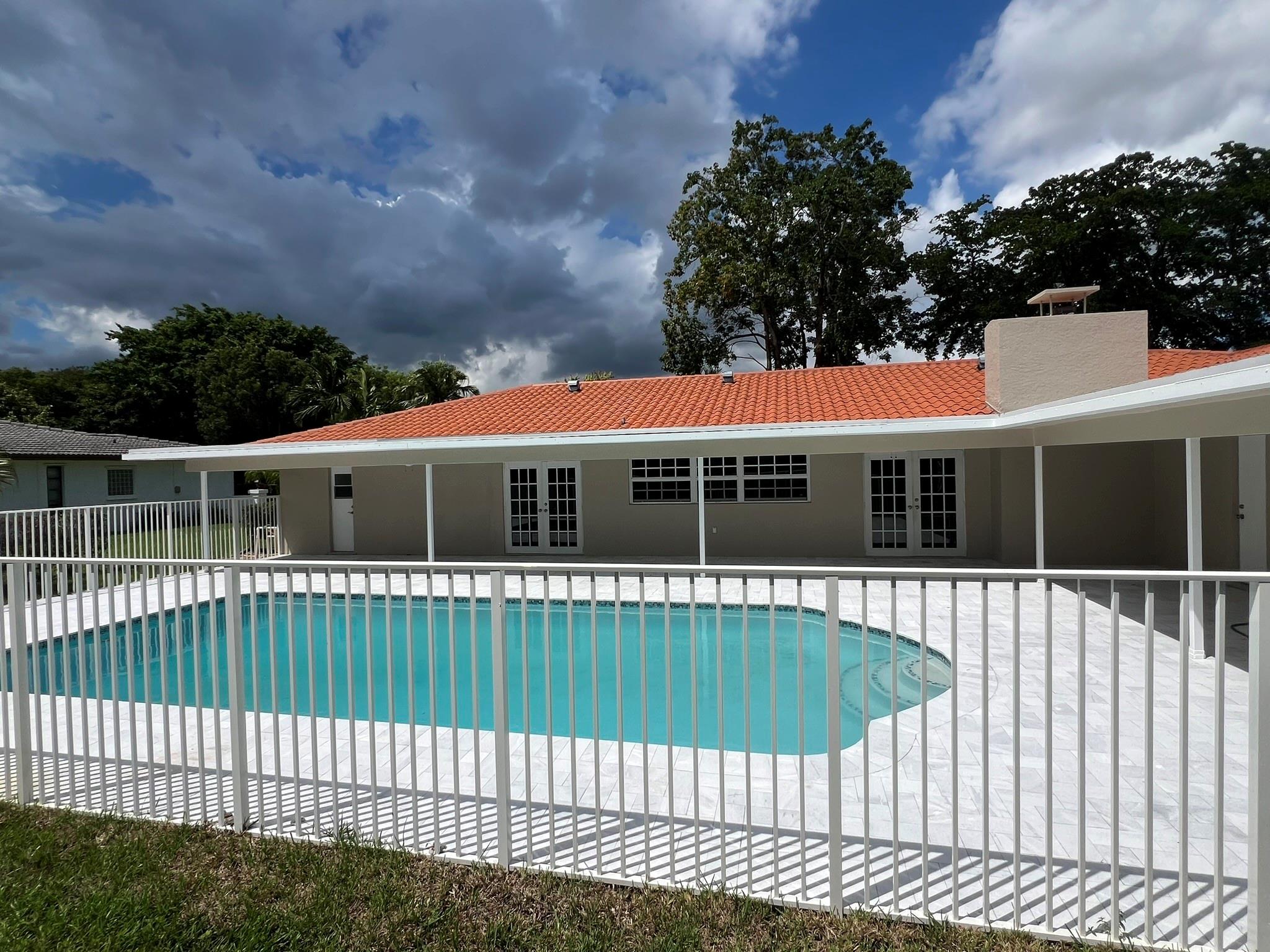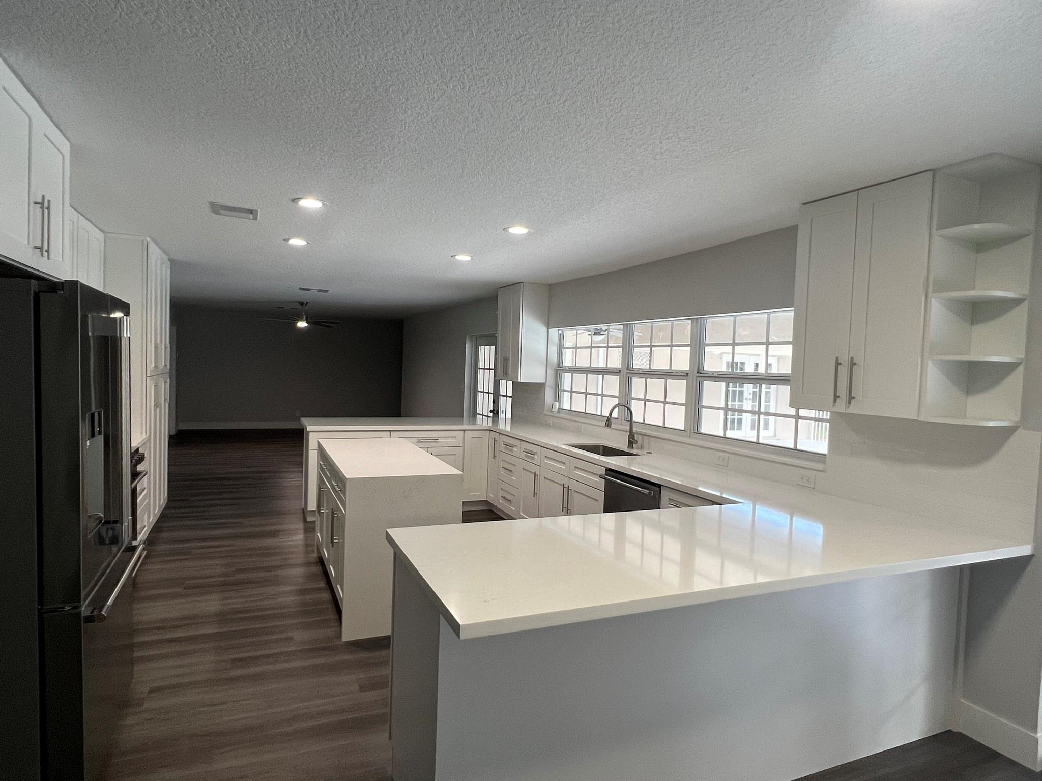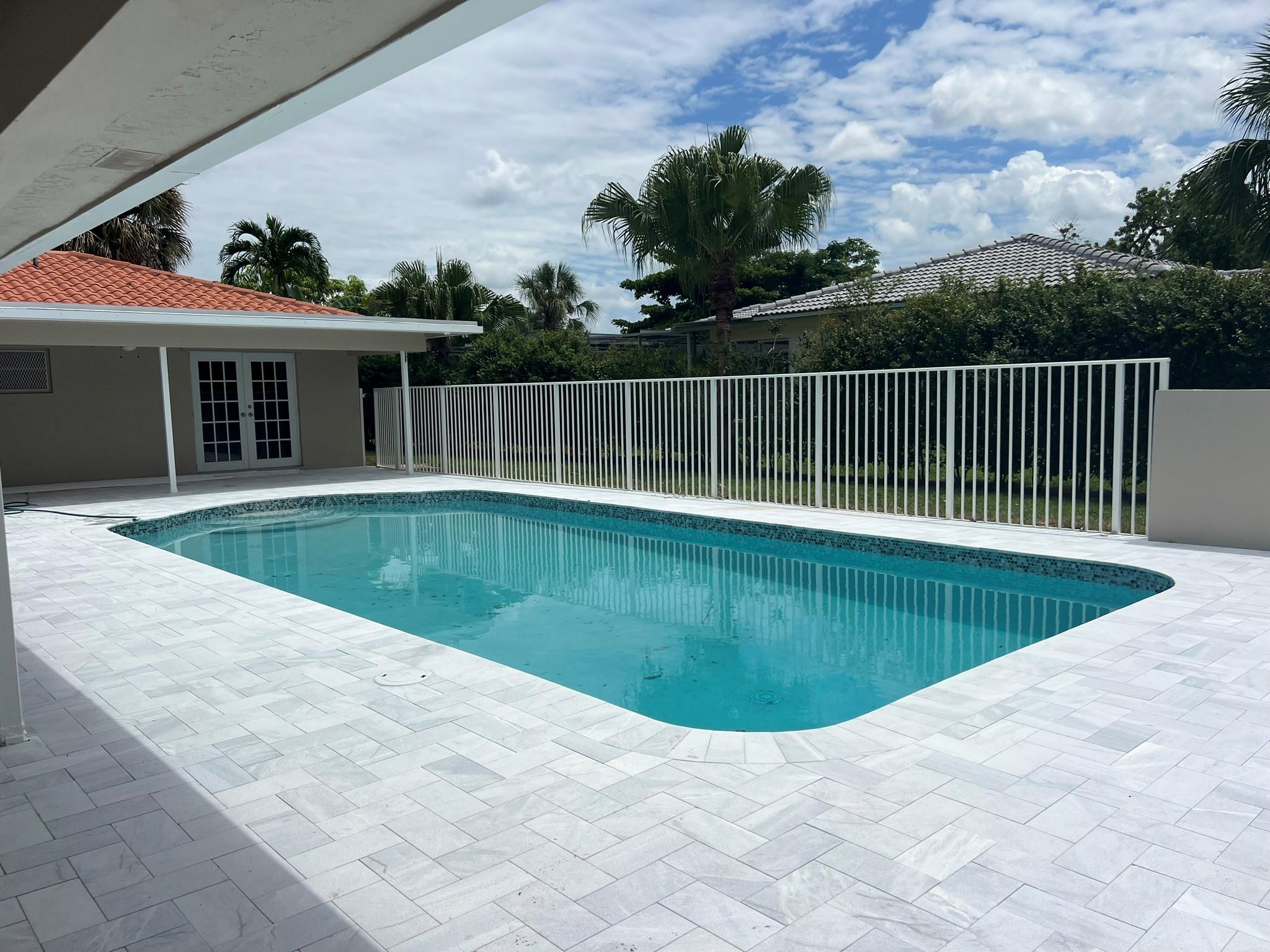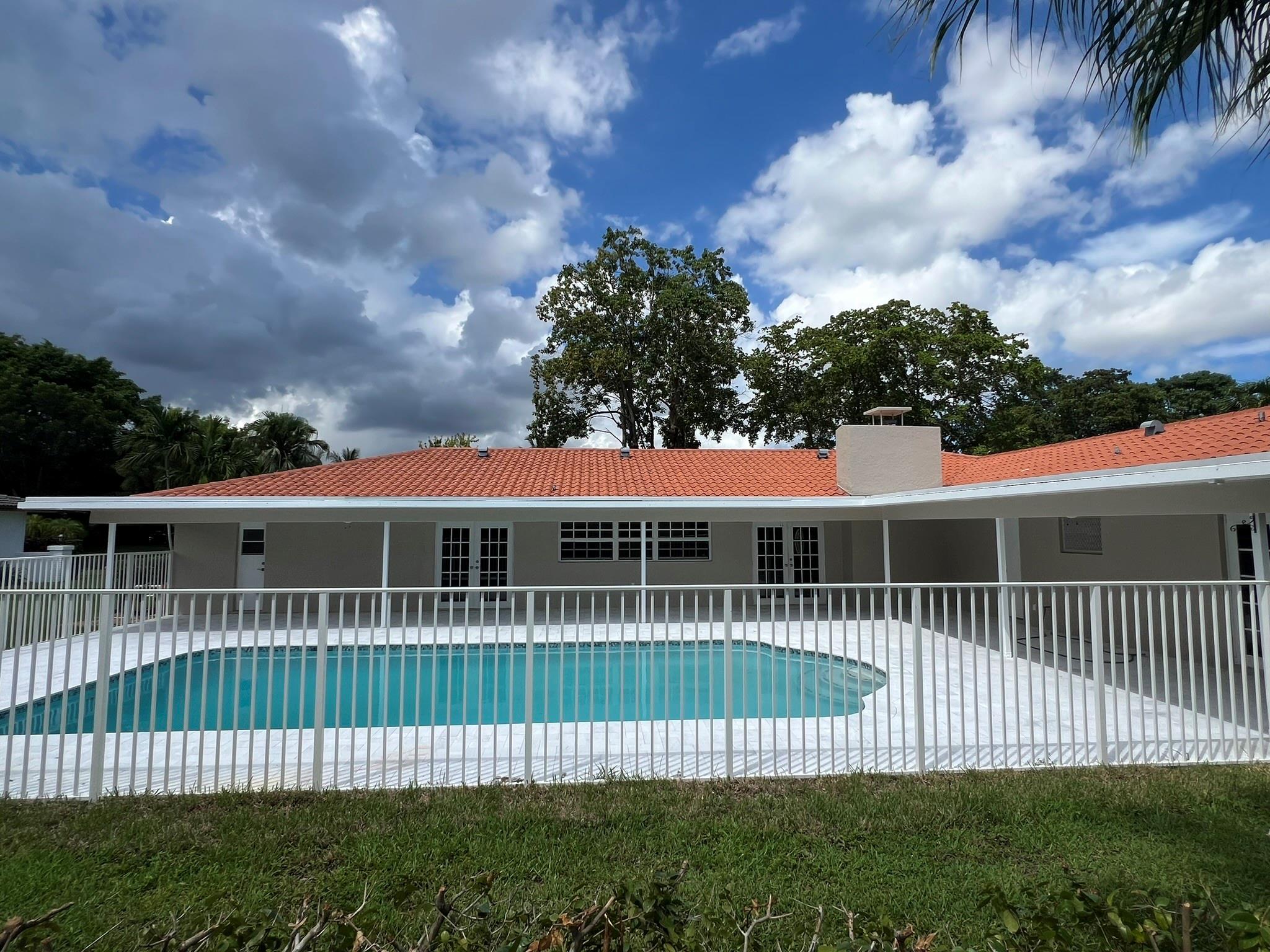 This stunning home features modern 42-inch white shaker cabinets, quartz countertops with a spacious island, and new stainless steel appliances. The updated bathrooms mirror the kitchen's style with shaker cabinets and quartz counters. The layout includes new vinyl wood flooring, 4 large bedrooms, and 3 bathrooms, with potential for two additional bedrooms—perfect for an executive lifestyle. Situated on an oversized lot, this property offers privacy and outdoor space. The split bedroom plan provides a peaceful retreat, while the family room is great for gatherings. The pool and open patio feature travertine tile, perfect for relaxation. A large interior laundry room adds convenience. The property also includes lush landscaping, impact windows, and a durable 15-year-new barrel-tiled roof.