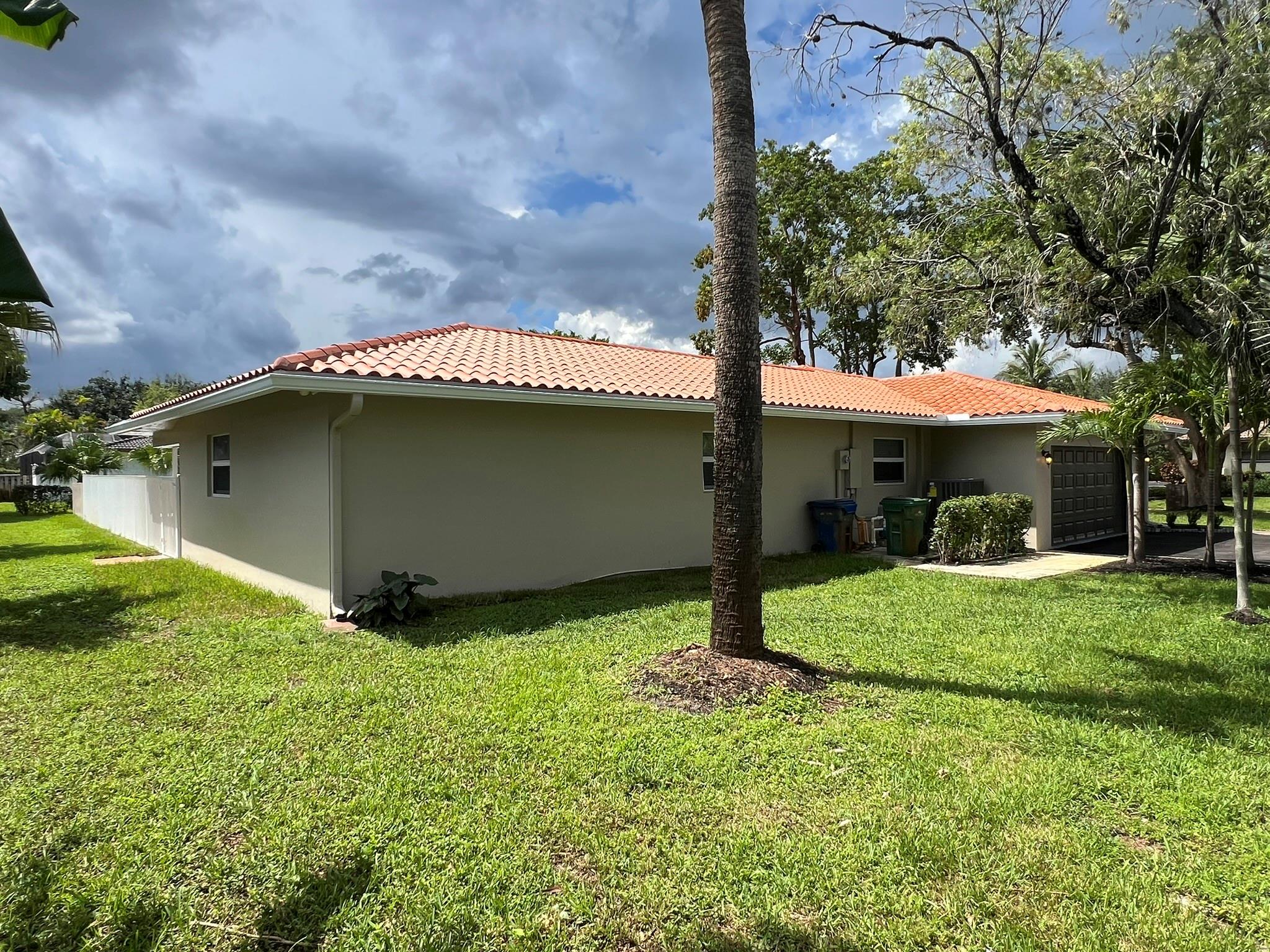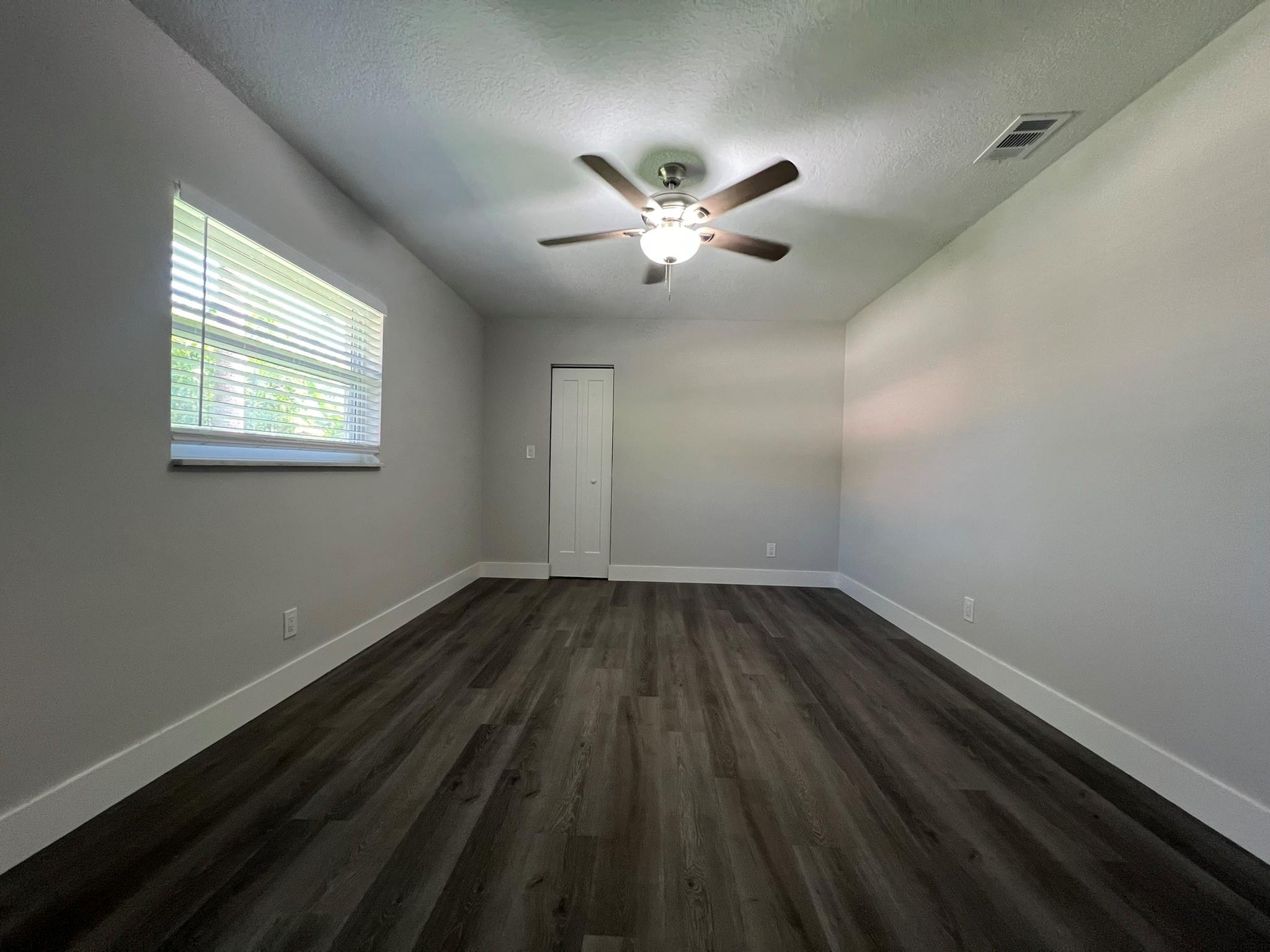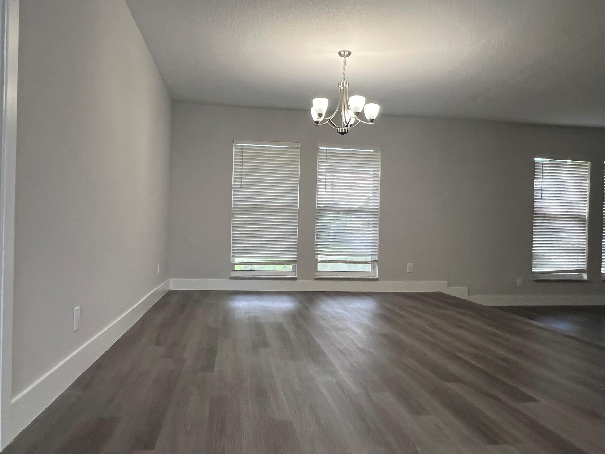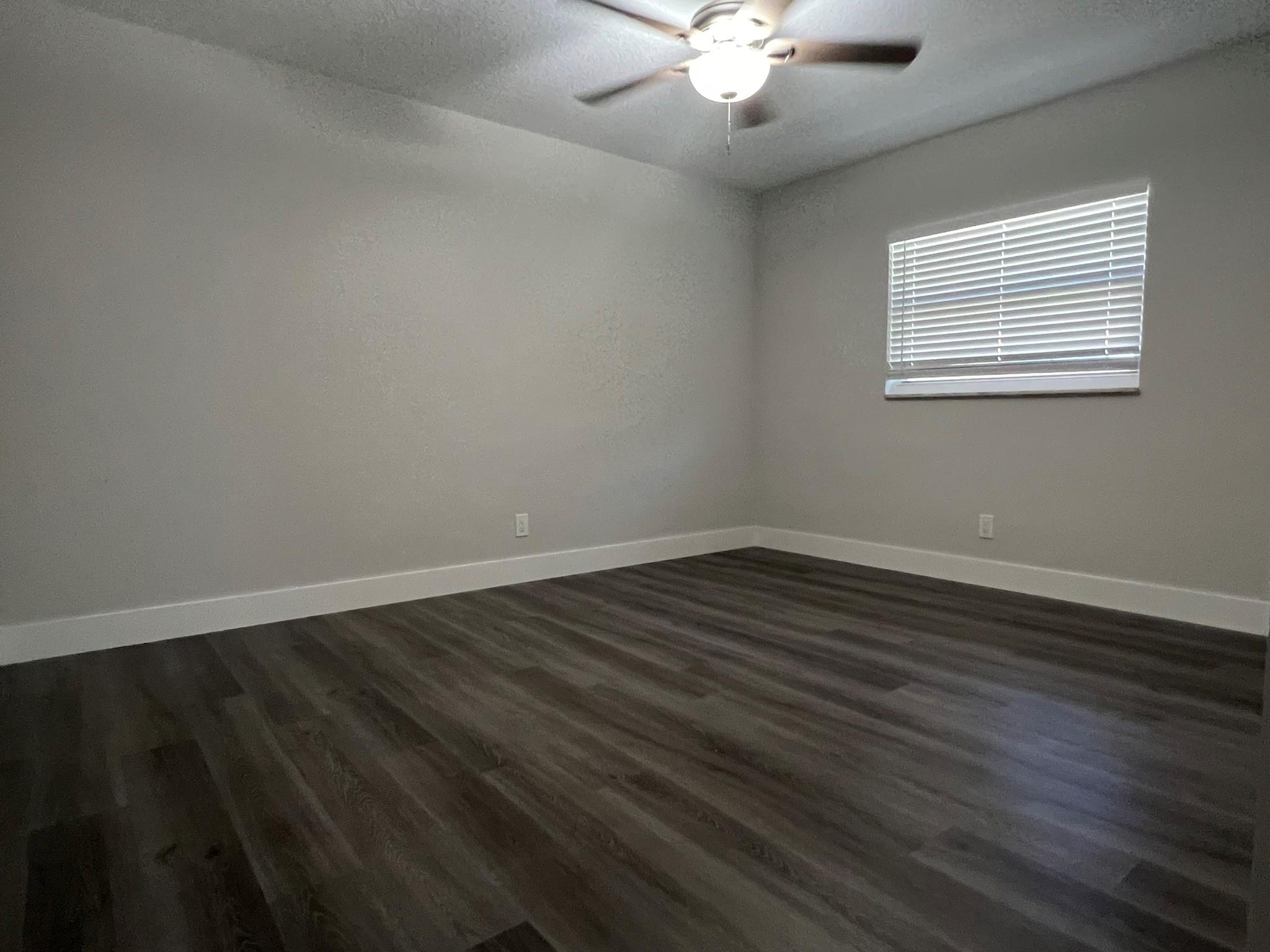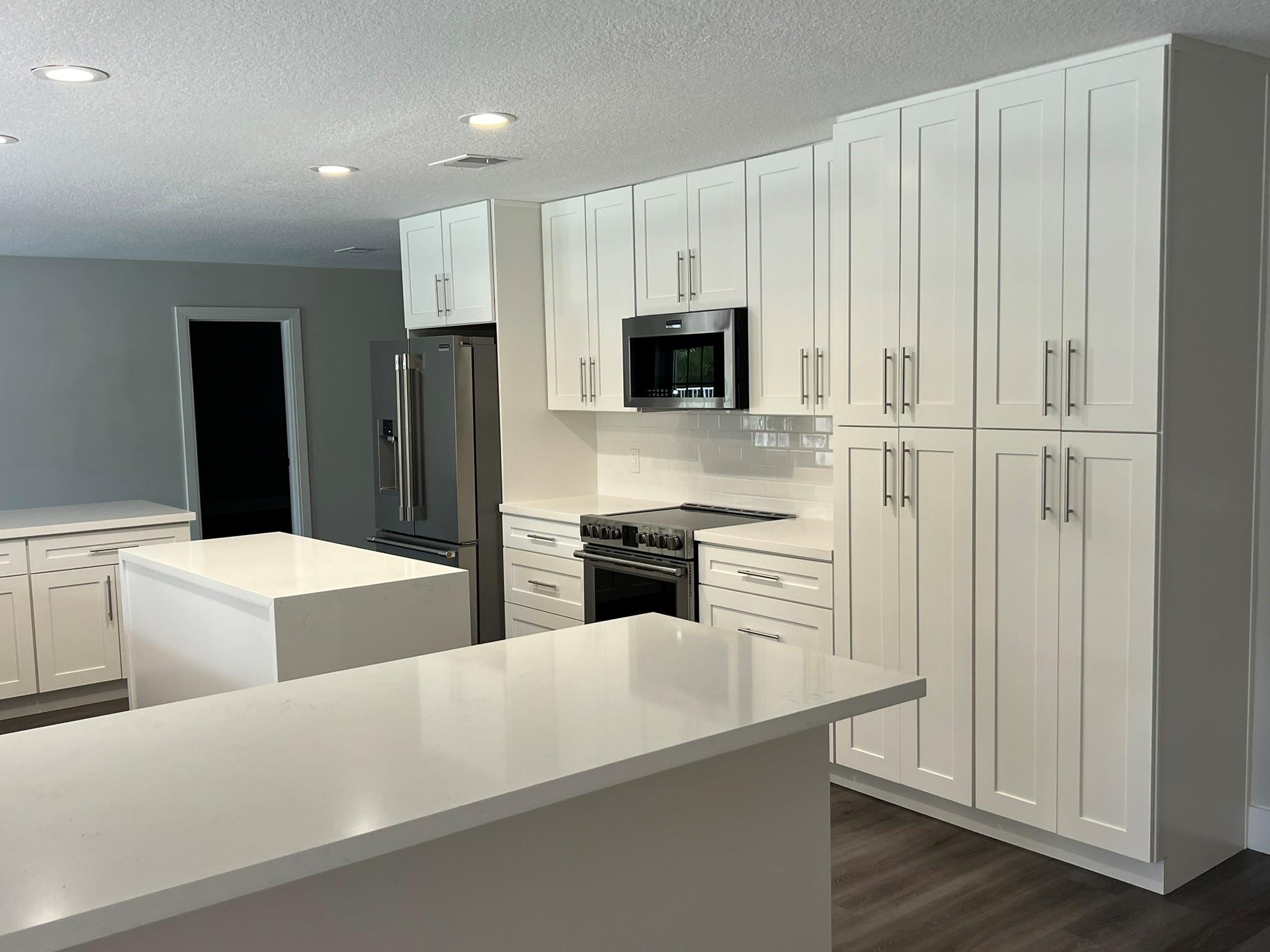This stunning home features modern 42-inch white shaker cabinets, quartz countertops with a spacious island, and new stainless steel appliances. The updated bathrooms mirror the kitchen's style with shaker cabinets and quartz counters. The layout includes new vinyl wood flooring, 4 large bedrooms, and 3 bathrooms, with potential for two additional bedrooms—perfect for an executive lifestyle. Situated on an oversized lot, this property offers privacy and outdoor space. The split bedroom plan provides a peaceful retreat, while the family room is great for gatherings. The pool and open patio feature travertine tile, perfect for relaxation. A large interior laundry room adds convenience. The property also includes lush landscaping, impact windows, and a durable 15-year-new barrel-tiled roof.