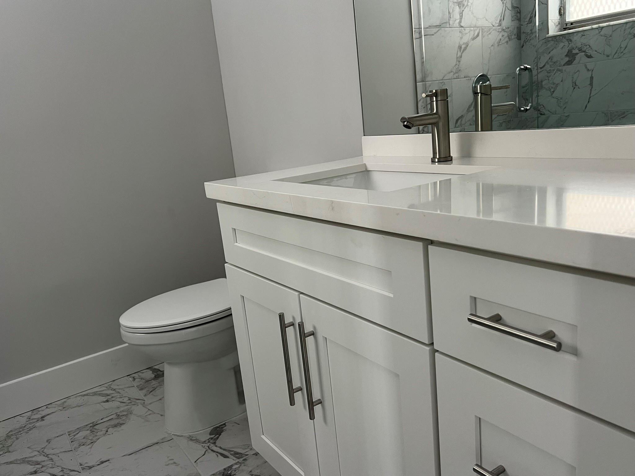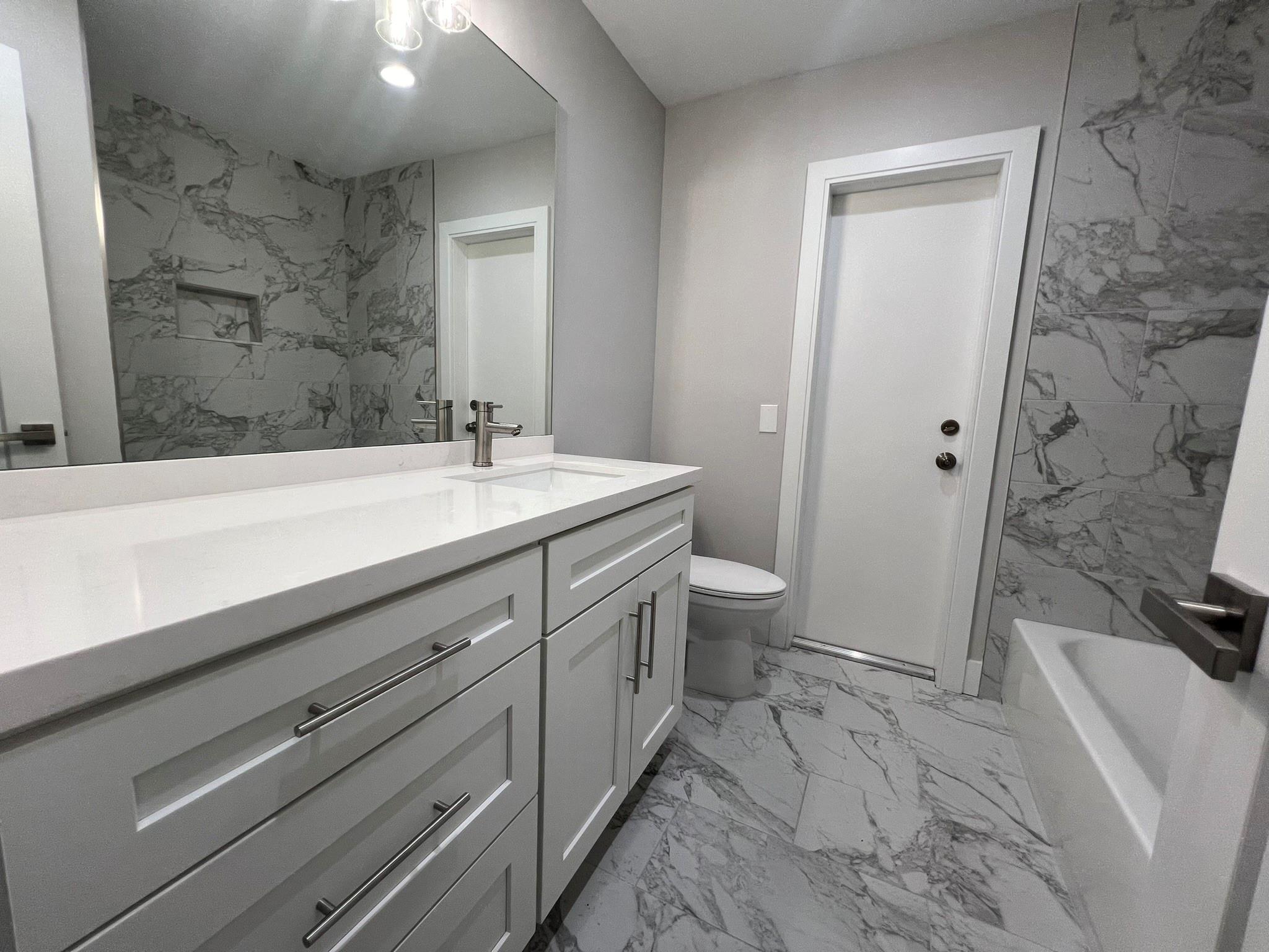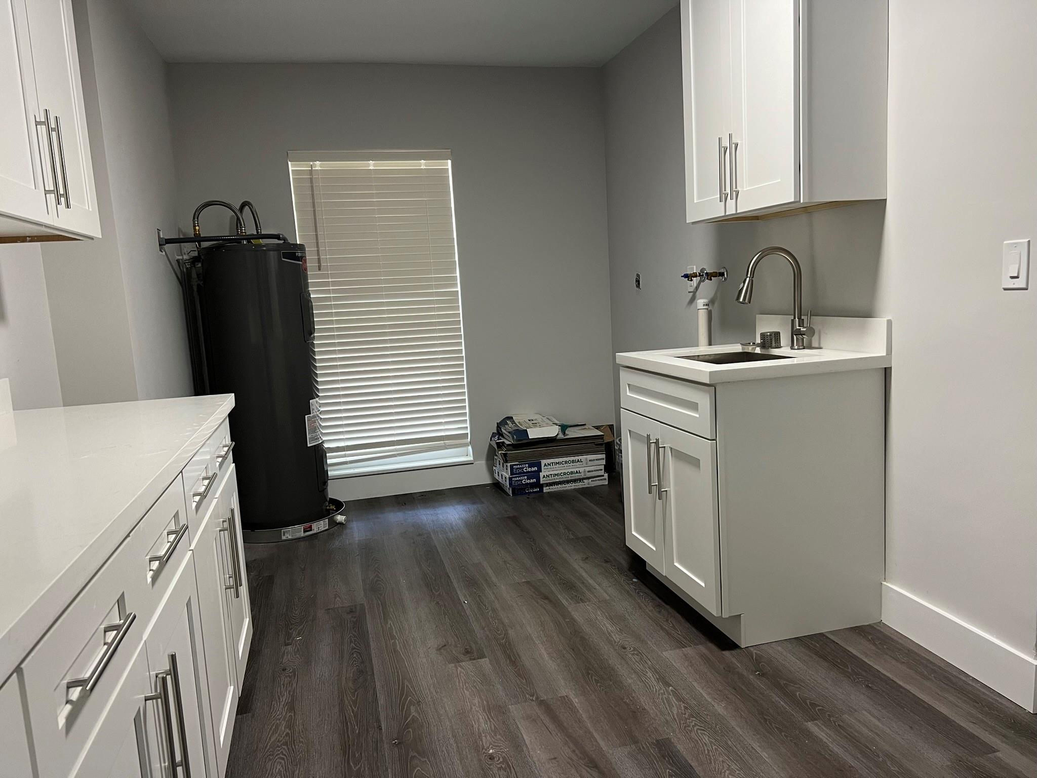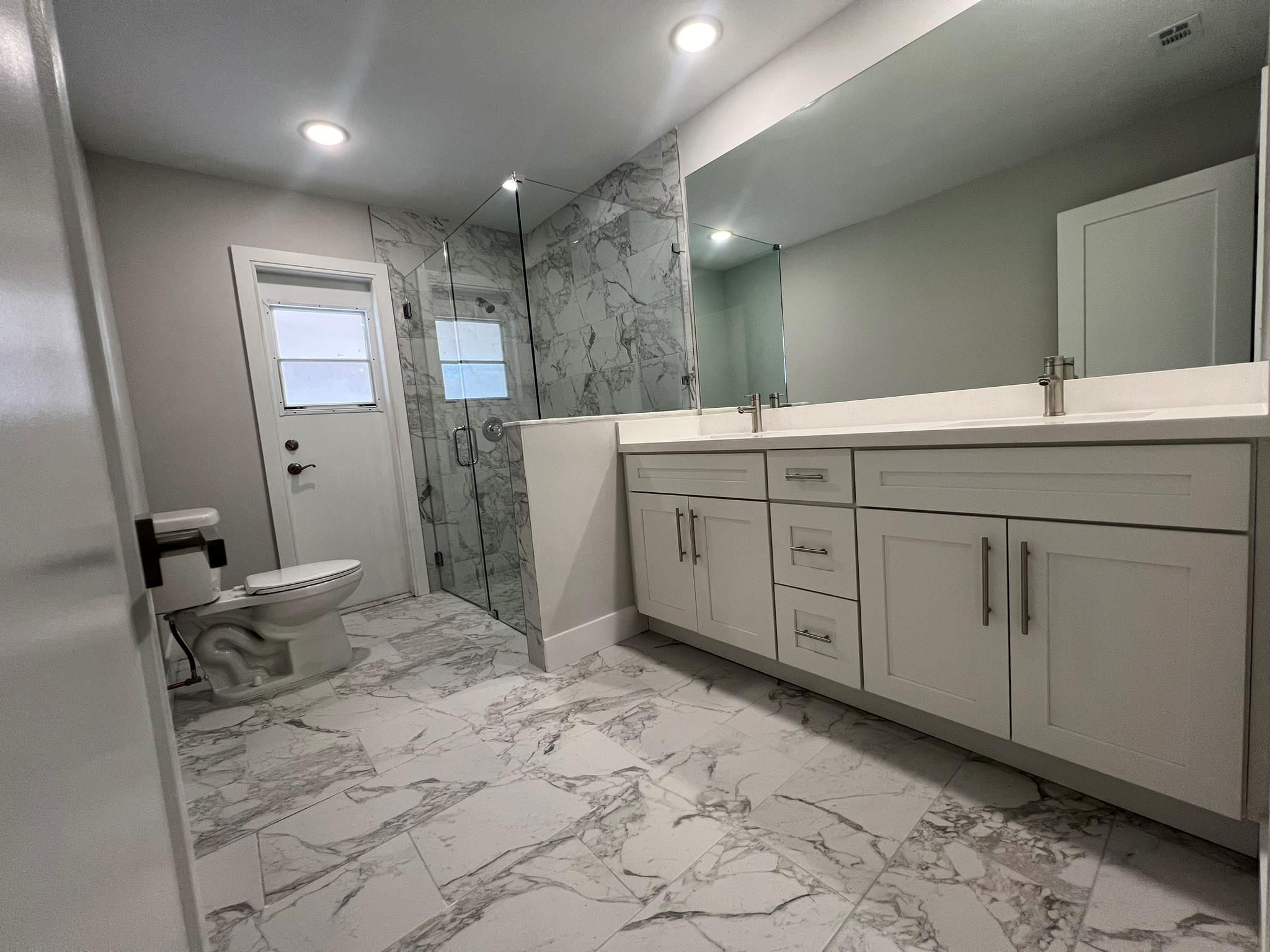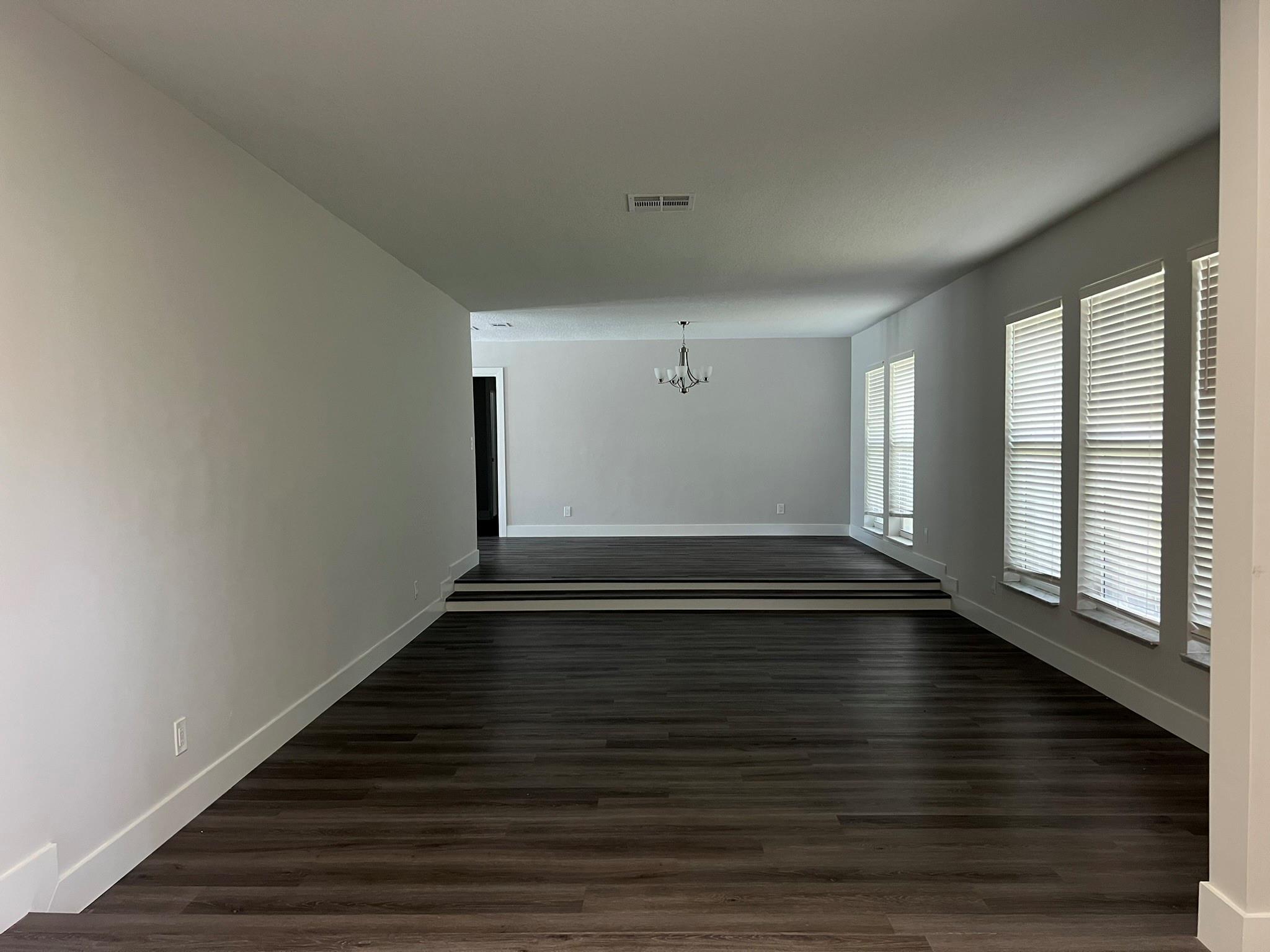 This stunning home features modern 42-inch white shaker cabinets, quartz countertops with a spacious island, and new stainless steel appliances. The updated bathrooms mirror the kitchen's style with shaker cabinets and quartz counters. The layout includes new vinyl wood flooring, 4 large bedrooms, and 3 bathrooms, with potential for two additional bedrooms—perfect for an executive lifestyle. Situated on an oversized lot, this property offers privacy and outdoor space. The split bedroom plan provides a peaceful retreat, while the family room is great for gatherings. The pool and open patio feature travertine tile, perfect for relaxation. A large interior laundry room adds convenience. The property also includes lush landscaping, impact windows, and a durable 15-year-new barrel-tiled roof.