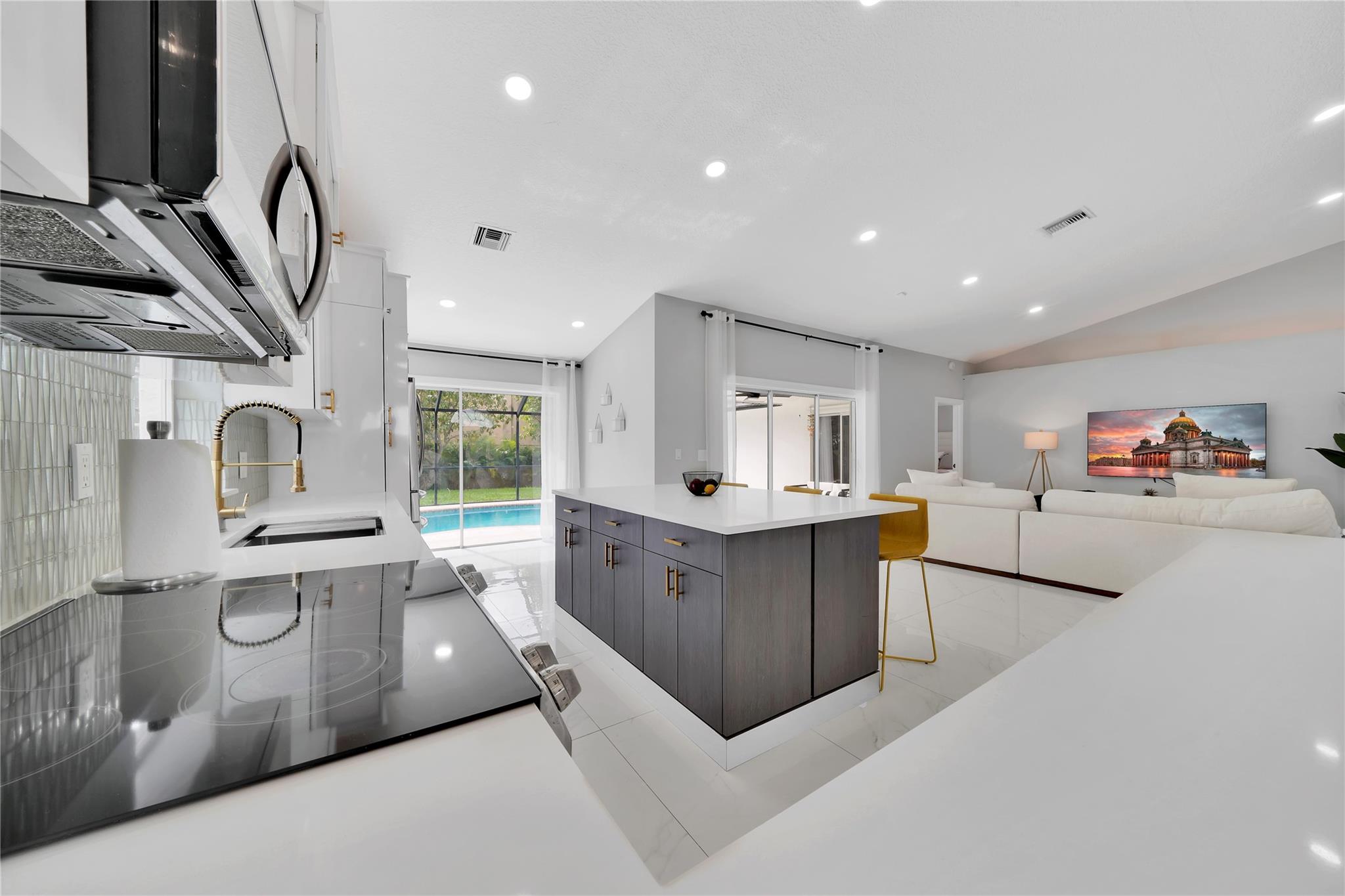 REDUCED TO SELL BY THE HOLIDAYS! If you like to entertain this one is for you! The center of the home is HUGE with high ceilings. Completely remodeled 4/2 pool home located on the Stranaham River, situated on a quiet cul-de-sac street of West Glenn. Open concept home features new flooring throughout, a custom eat in kitchen overlooking the river w/ stainless steel appliances, LED lighting throughout, vaulted ceilings, & a newly refinished pool. With your state of the art shower system, custom vanities, custom closets, new doors, base molding, and new landscaping you'll truly have it all! Just out the back, build your own BOAT DOCK & enjoy the C14 River! Enjoy your beautiful fruit trees w/ mangos & avocados on just under 1/2 acre of land! Huge Driveway. This is a must see!