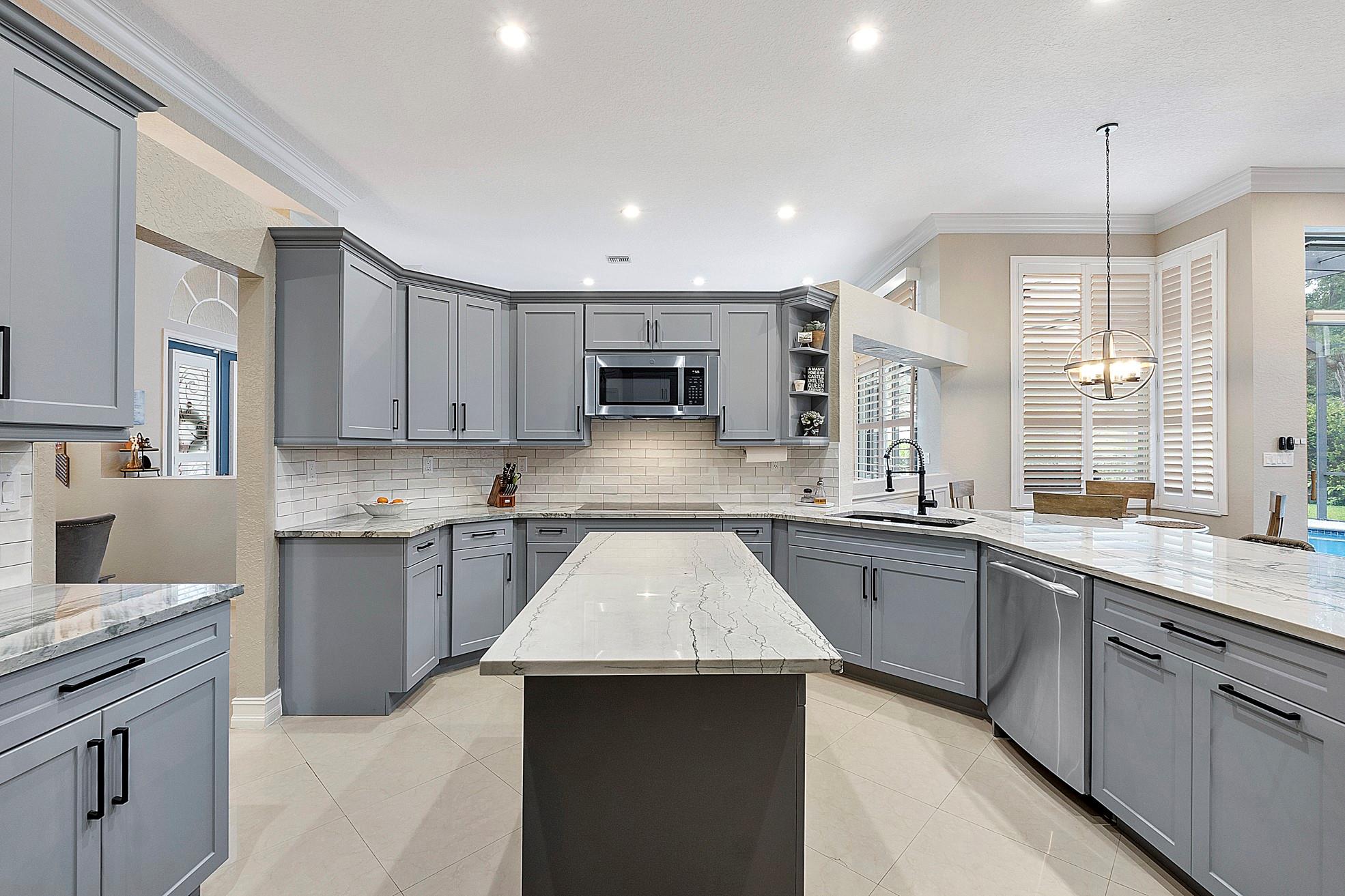 Spectacular upgraded 5 bedroom, 3.5 bath, 1 story home on private cul-de-sac in prestigious guard gated community "The Isles East" Roof 2020, Full hurricane protected windows & doors, Large 2024 kitchen with quartz countertops & white backsplash & modern hardware faucets & island, new stainless appliances, Induction cooktop & double ovens, Eat-in dining area's + formal dining room, Open floor plan & large rooms, New Plantation shutters 2024, new crown molding throughout, New flooring in bedrooms 2024 with marble flooring in living areas, New bathrooms & cabinets with Toto/remote water closet 2024, Insulated attic 2022, Freshly painted interior & exterior & patio 2024, Heated pool, Large fenced garden & 2024 lush landscaping front & back, Long new paved driveway 2024 for multiple cars,