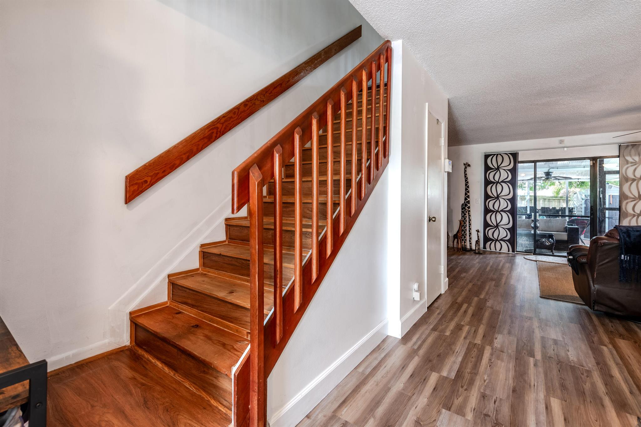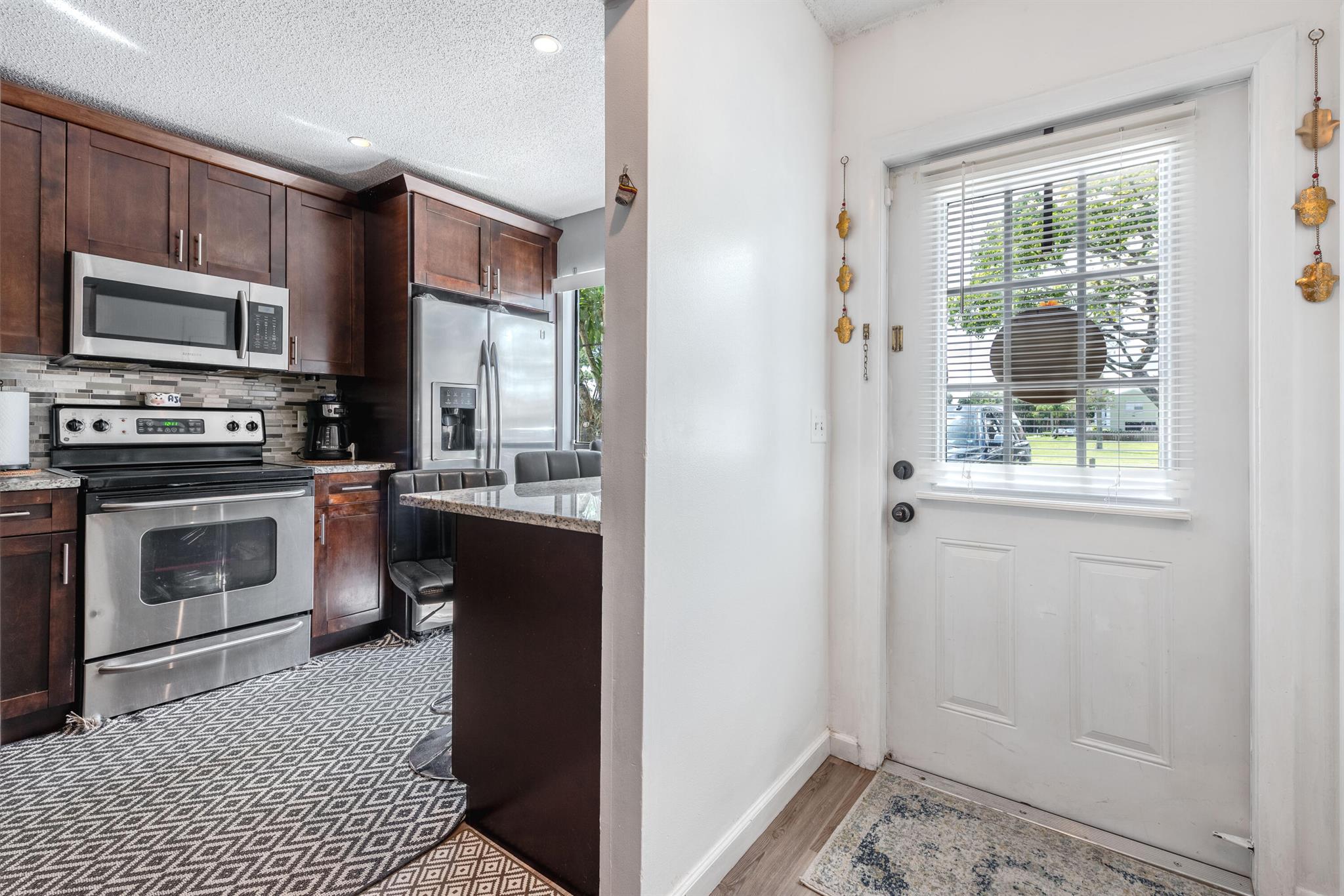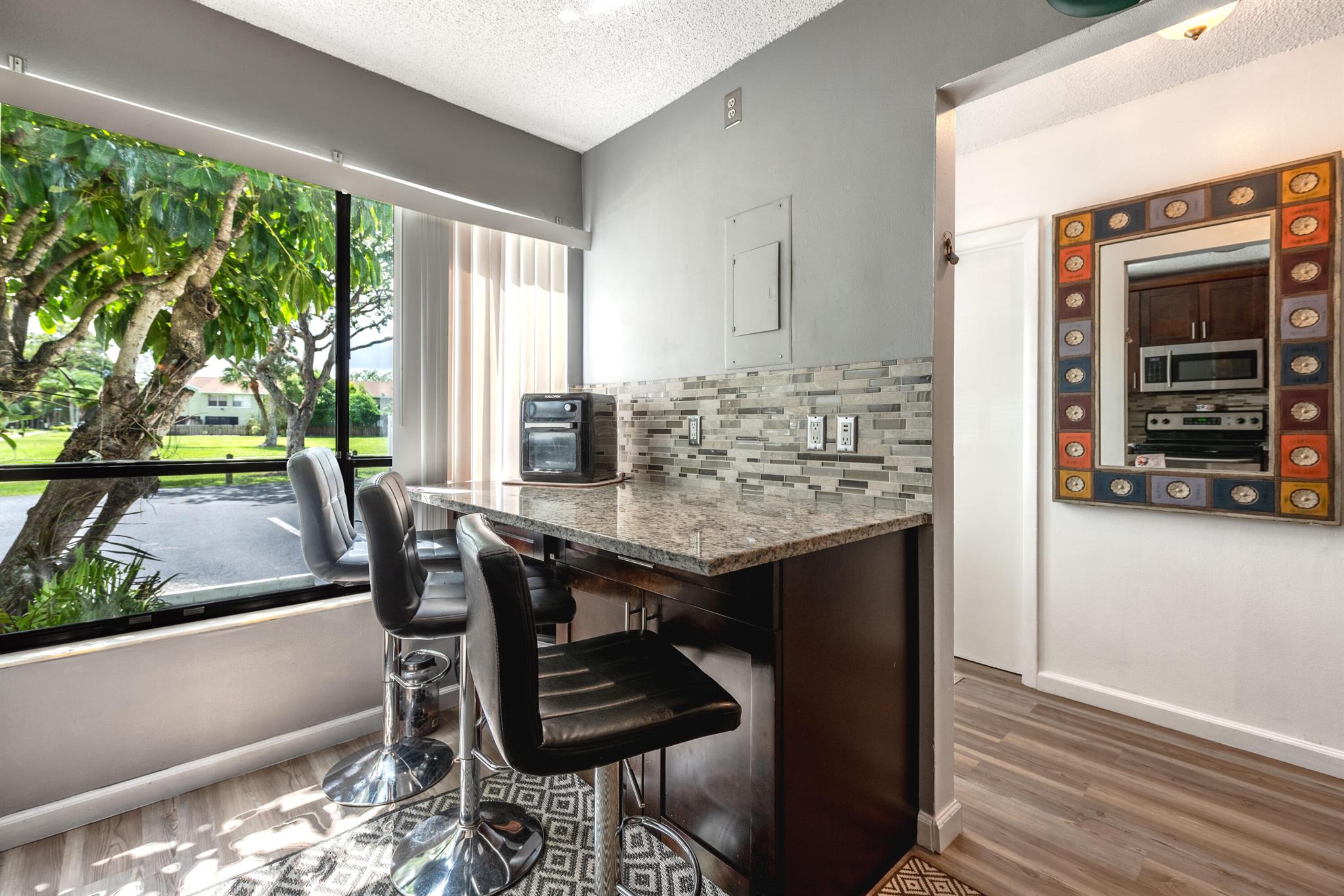 NEW ROOF AND SIDINGS updated 3-bedroom, 2-bath corner townhome in a prime location! This spacious home offers a recently renovated roof with a semi-open floor plan, abundant natural light, modern finishes, and brand-new waterproof vinyl floors throughout the first floor. The updated kitchen features stainless steel appliances, granite countertops, and a breakfast bar that flows into the dining area. The master main suite has a spacious wall closet and an upgraded bathroom. Enjoy your private outdoor patio, perfect for relaxing or entertaining--Hurricane-ready with accordion hurricane shutters throughout the home. Society Hill is conveniently located on Haverhill Blvd between Summit Blvd and Gun Club Road. Near schools, shopping, dining, and major highways. Low HOA fees! Move-in ready