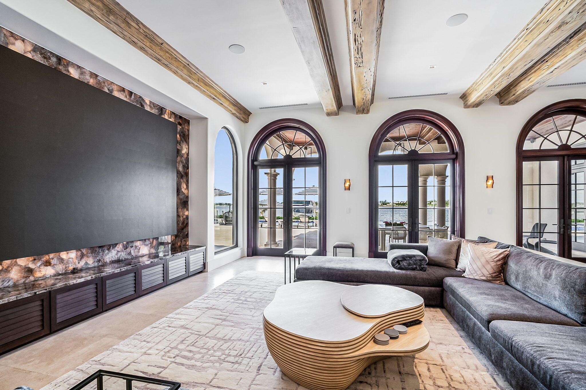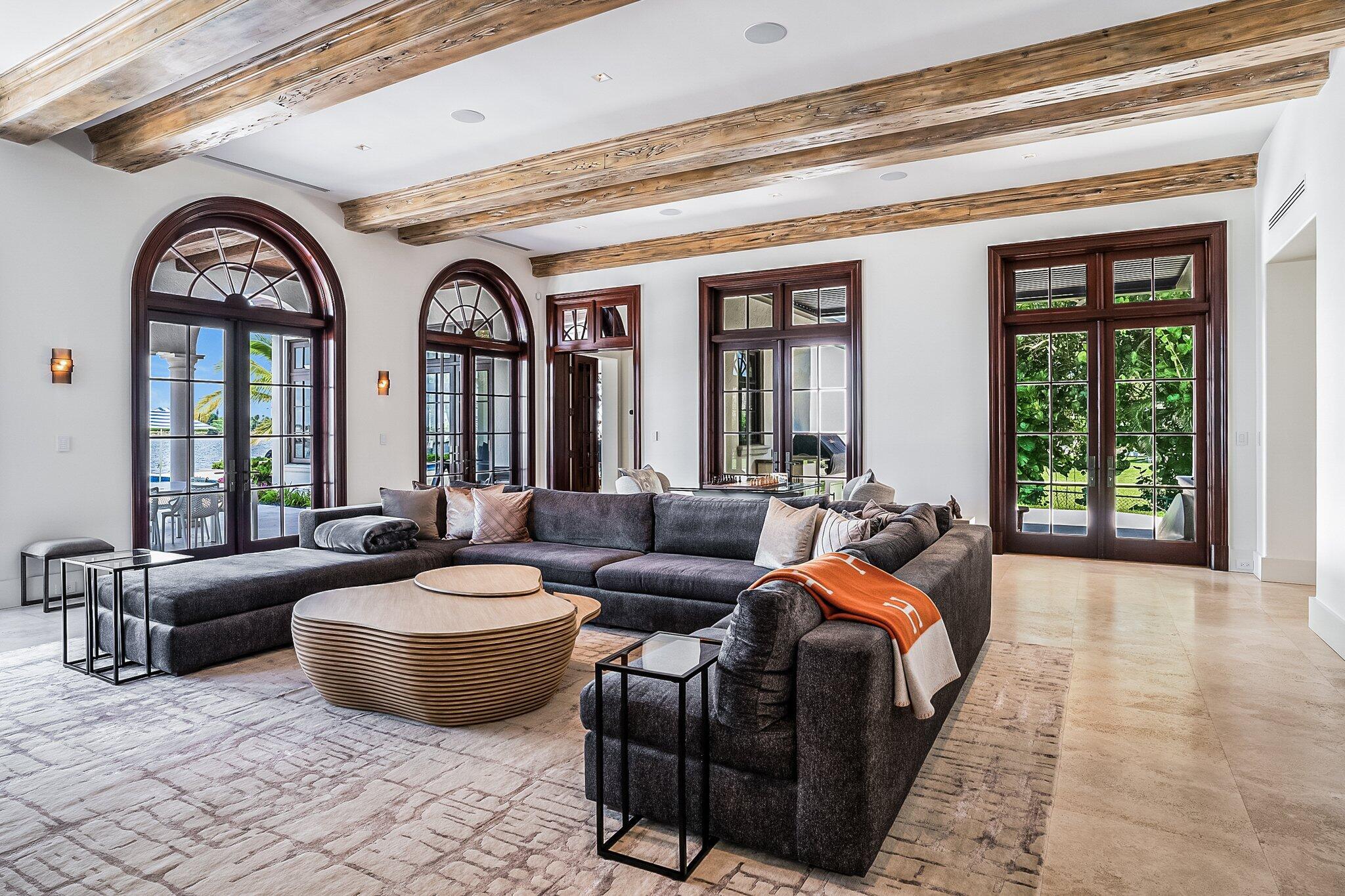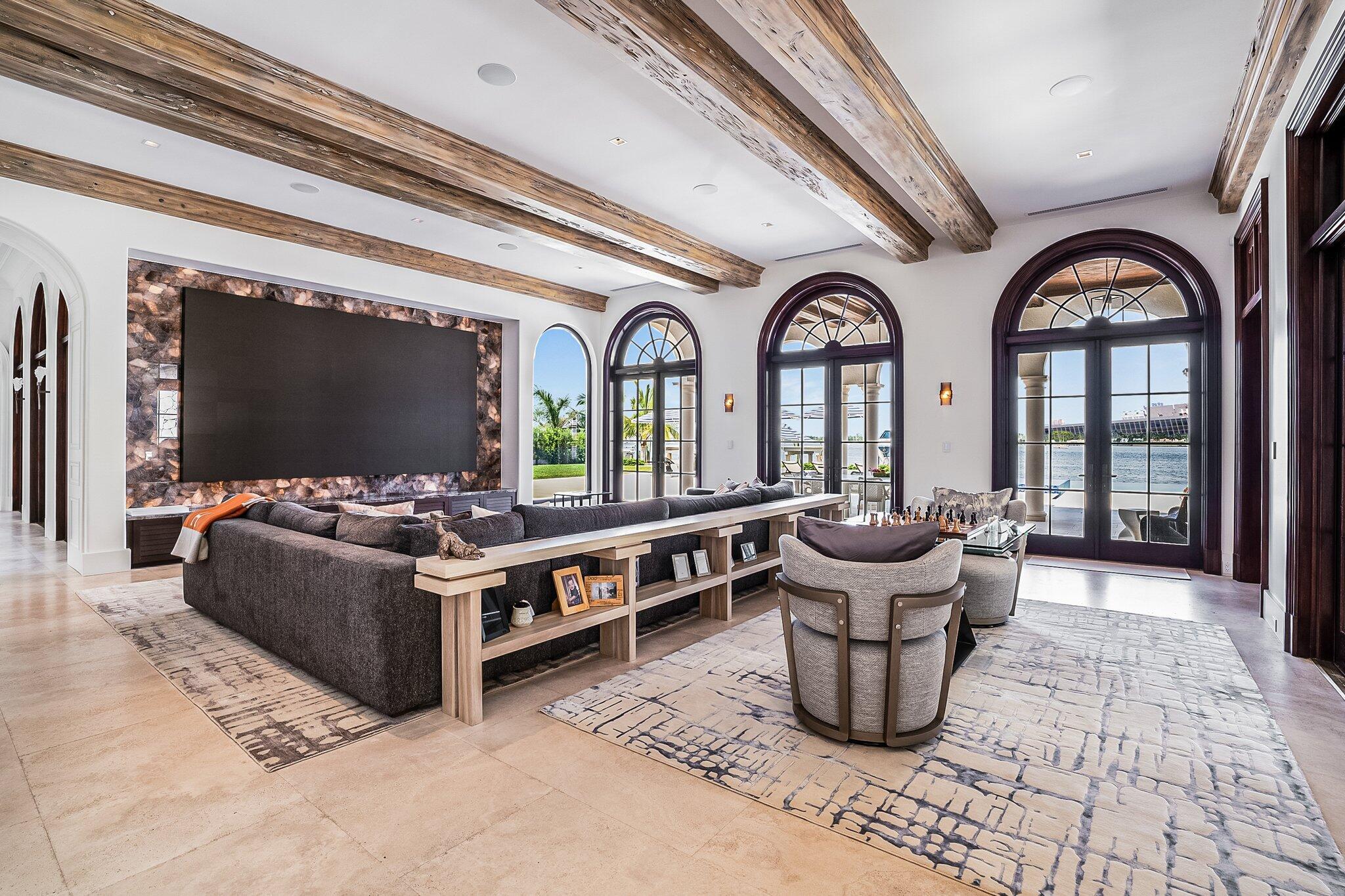 Introducing a remarkable waterfront masterpiece. This ultra-luxury estate spans over 33,000 sq ft of land & 13,000+ sq ft of air-conditioned living space across two stories. Featuring 7 bedrooms & 8.5 baths, the property showcases 140 ft of direct Intracoastal frontage, a private concrete dock, a 60,000-lb boat lift, & a covered jet ski lift. Enjoy an 8-car garage, designer furnishings, a commercial-grade gym, & private guest & staff quarters. With no HOA, this is the finest Intracoastal estate available, offering unmatched privacy, luxury, and convenience.