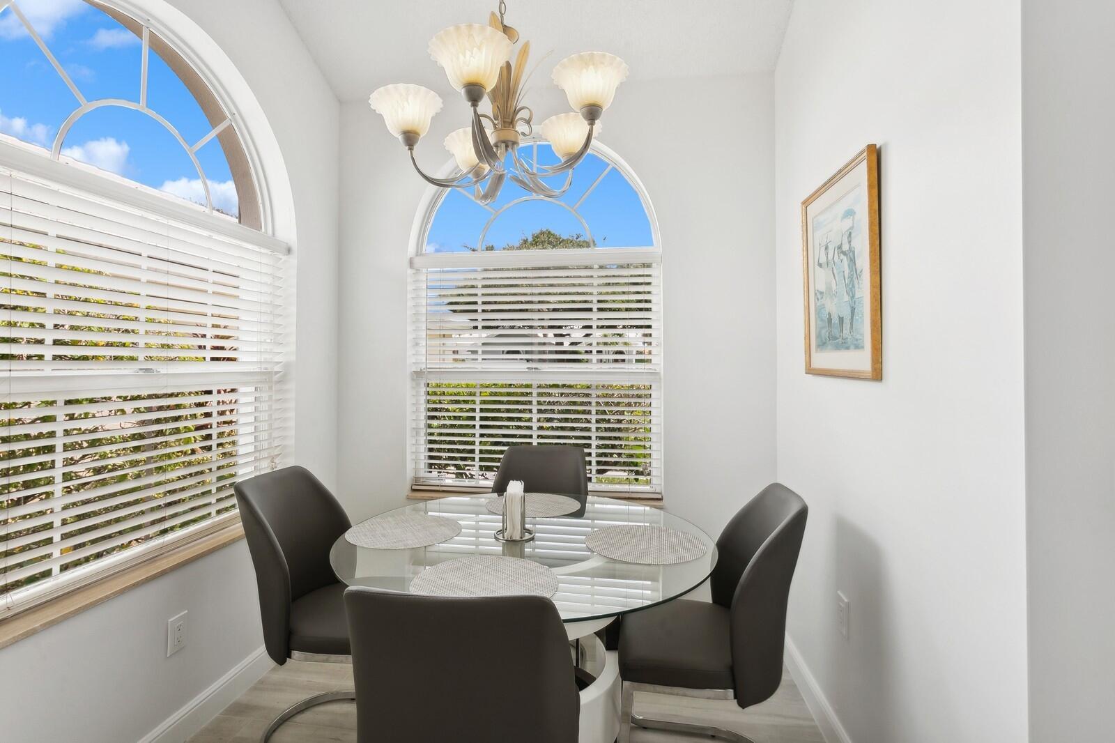 Welcome to this stunning single-family home in the gated community of Bear Island in WPB. Fl. This beautifully updated residence features a newer galley kitchen with stainless steel appliances, granite countertops, freshly painted throughout. The home boasts newer floors & an eat-in kitchen, perfect for casual dining.The spacious FR with a beautiful wall unit, formal DR open up to sliders that lead to a Florida room, which leads out to a private paver backyard. The property also offers a two-car garage & hurricane protection for added peace of mind.With 3 BR/2 BA the home includes a large owner's suite with a walk-in closet & sliders that lead to a lush landscape patio. Residents will enjoy exclusive access to 3 parks, pools ,exercise trails, tennis & pickleball facilities.