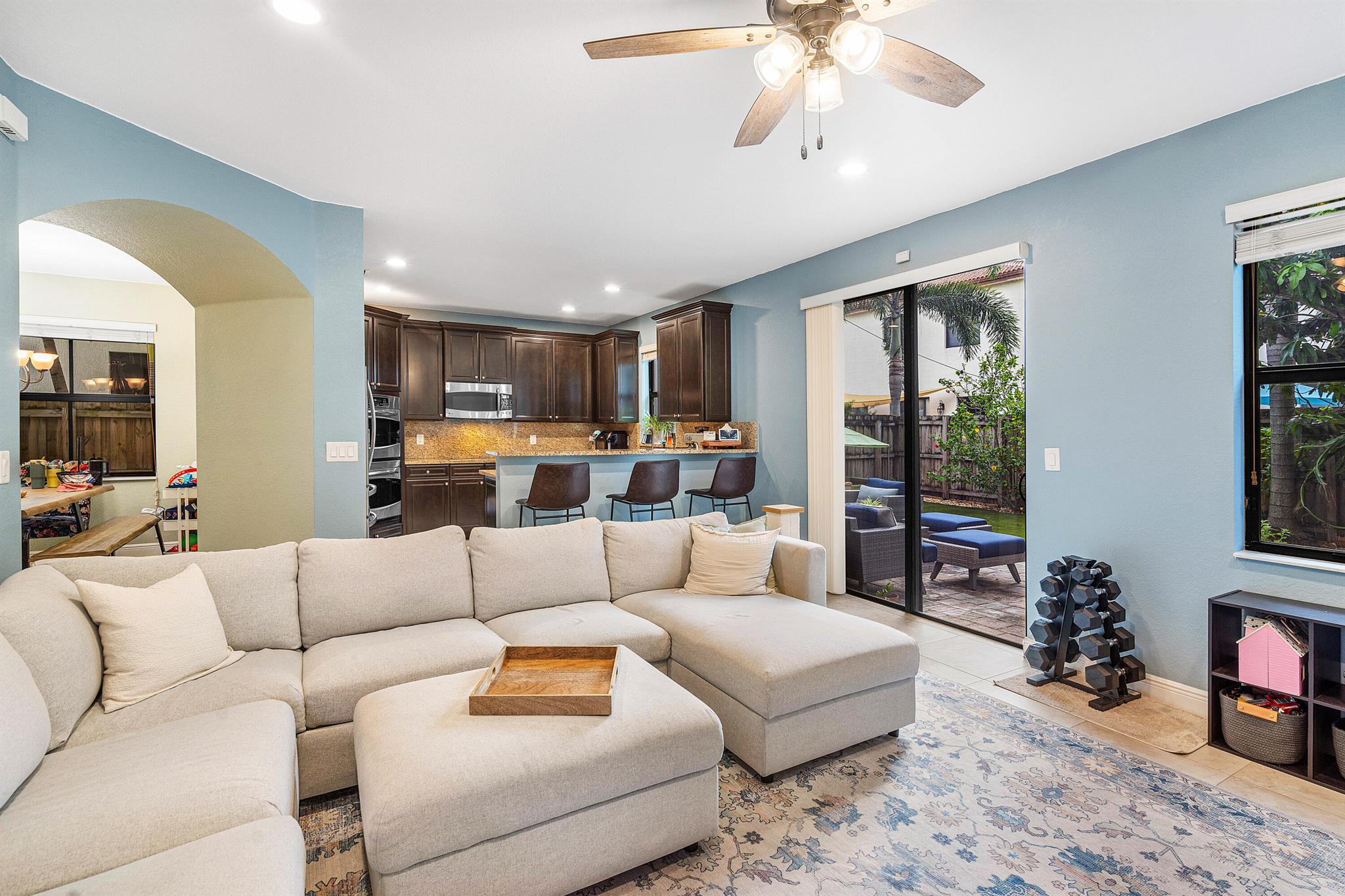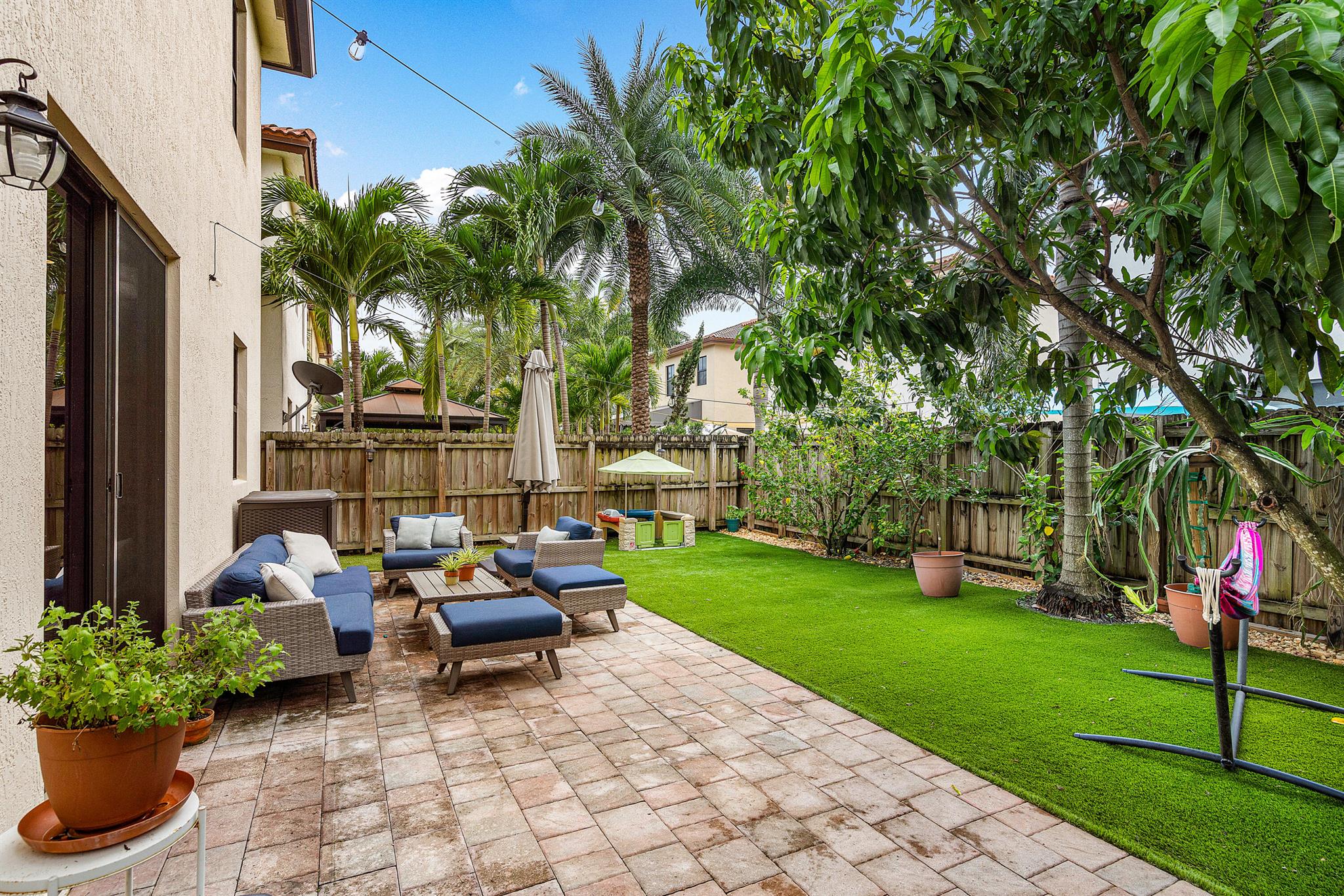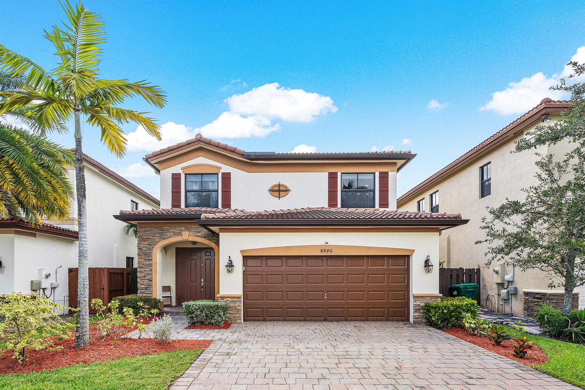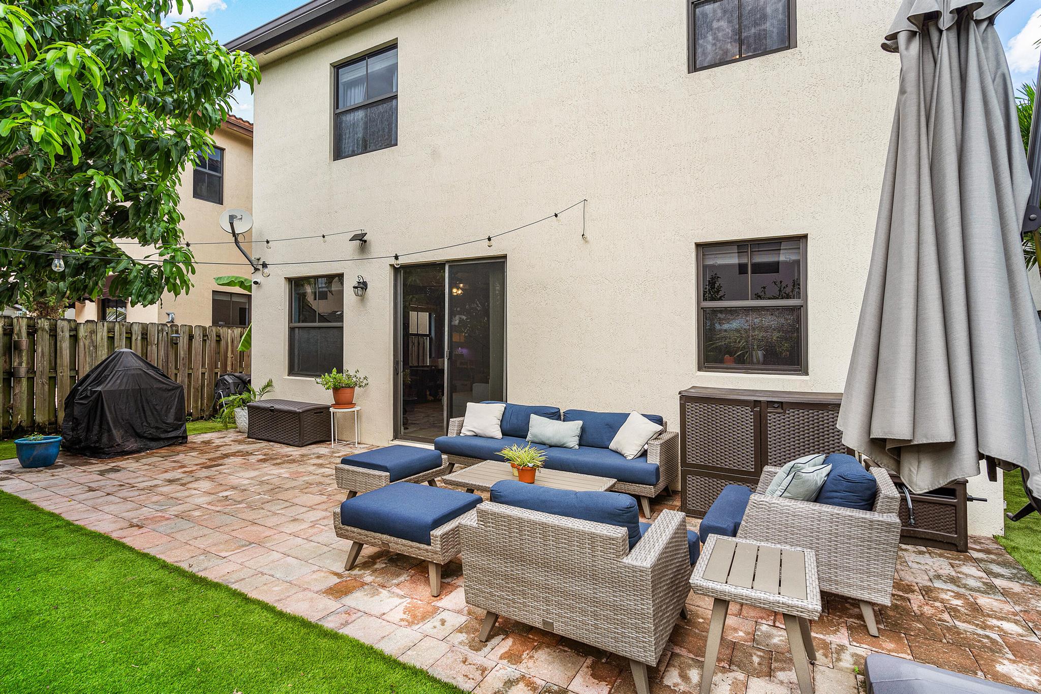 Spacious 4 bedrooms, 3 full bath home available in the highly desired Isles at Grand Bay Estates in Doral. This home has impact windows, updated washer/dryer (2022), refrigerator (2023), stainless steel appliances, double oven, wine cooler fridge, pantry, jacuzzi/spa tub and more. Fully fenced backyard features fruit trees, artificial grass for easy maintenance, solar patio lights, rain gutters and 2 French drains, ceiling storage added in garage. Home is set up for ADT Security, has Google cameras/doorbell and thermostat. Grand Bay's beautiful gated community has 24 hr. security with an onsite community park and additional access to Park Central Doral's resort-style amenities. Located near parks, schools, shopping, restaurants and major highways.