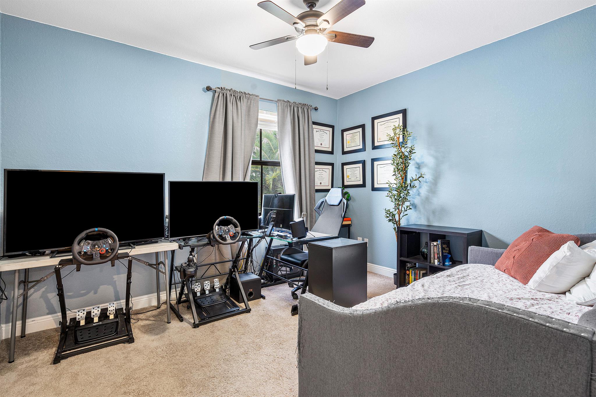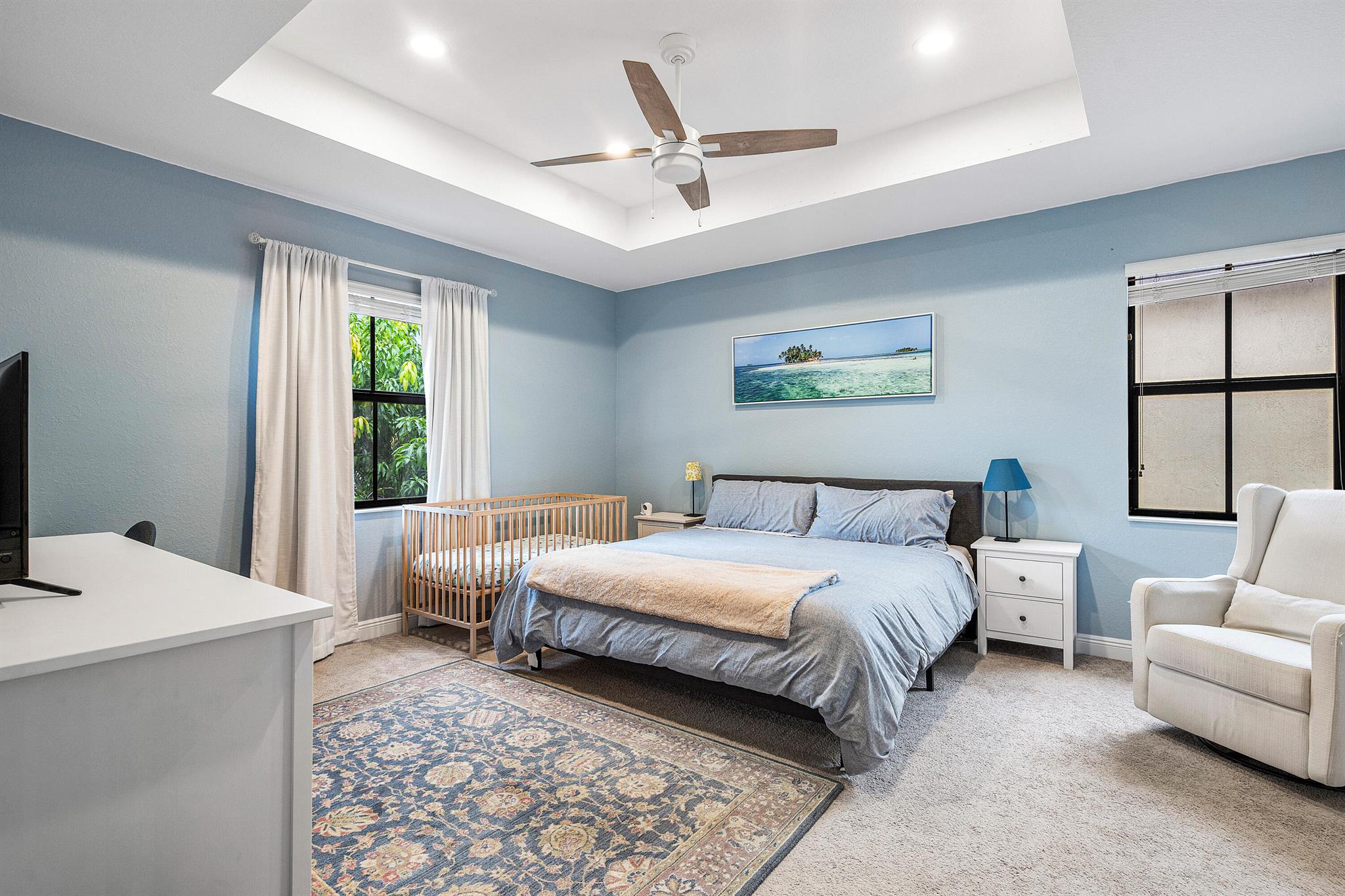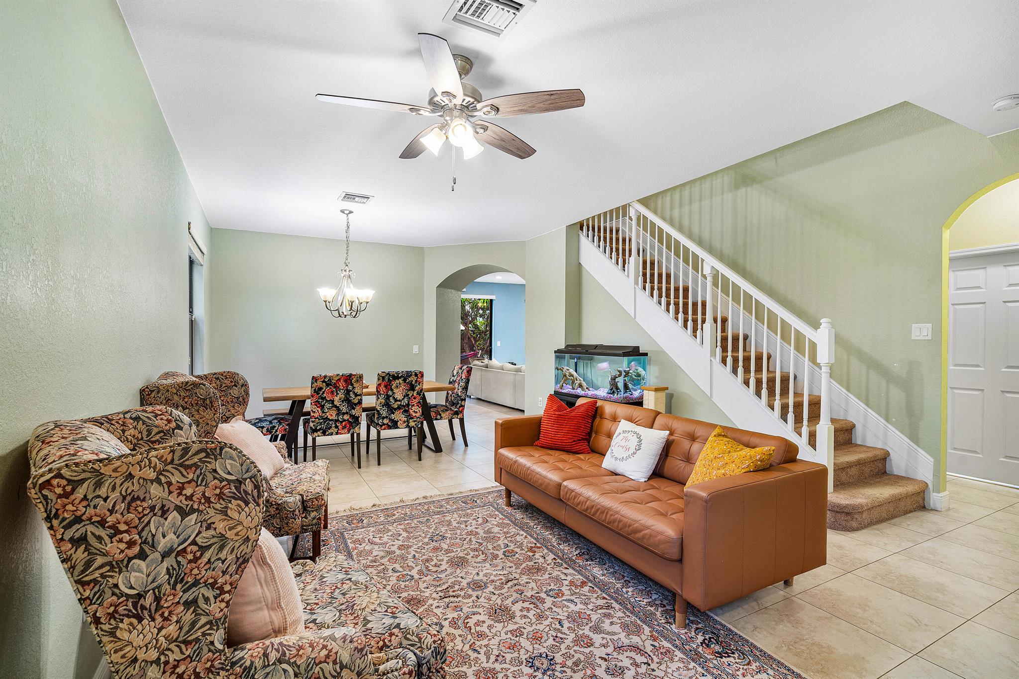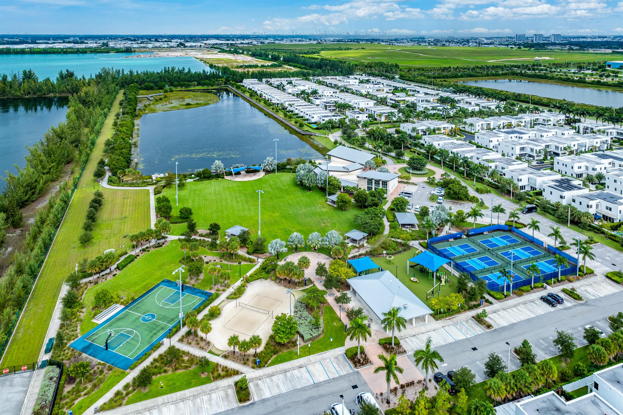 Spacious 4 bedrooms, 3 full bath home available in the highly desired Isles at Grand Bay Estates in Doral. This home has impact windows, updated washer/dryer (2022), refrigerator (2023), stainless steel appliances, double oven, wine cooler fridge, pantry, jacuzzi/spa tub and more. Fully fenced backyard features fruit trees, artificial grass for easy maintenance, solar patio lights, rain gutters and 2 French drains, ceiling storage added in garage. Home is set up for ADT Security, has Google cameras/doorbell and thermostat. Grand Bay's beautiful gated community has 24 hr. security with an onsite community park and additional access to Park Central Doral's resort-style amenities. Located near parks, schools, shopping, restaurants and major highways.