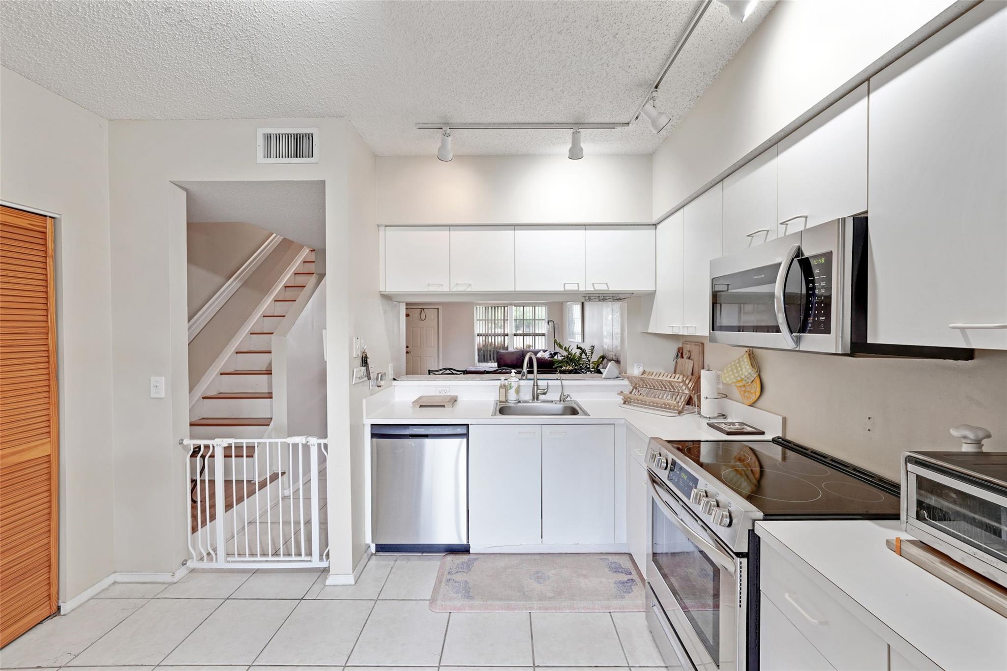 Charming waterfront townhouse in Fiesta with 2BD 1.5BA. The home features tile and laminate floors, stainless steel kitchen appliances that are less than 4 years old and a relaxing, enclosed patio with beautiful lake views. Recent updates include a 2024 washer and dryer, a 2022 water heater, and a 2-year-old A/C condenser. New bedroom fan. Halogen dimmer lights on the stairs. Located in a gated community with quality amenities and a low HOA fee that covers the roof, exterior and landscaping. Conveniently near 441, Sample Rd, the Turnpike, Turtle Crossing Mall, Promenade at Coconut Creek Mall, Tradewinds Park, and Butterfly World. FHA Approved, fee simple townhome. Equal Housing Opportunity.