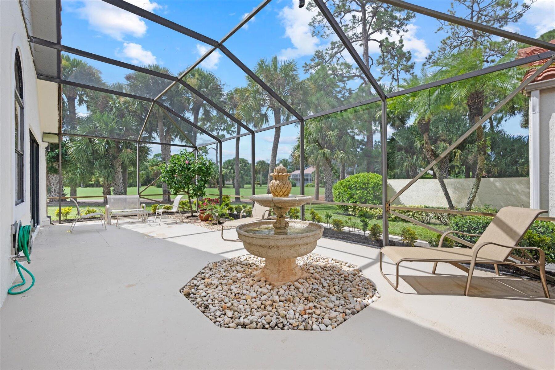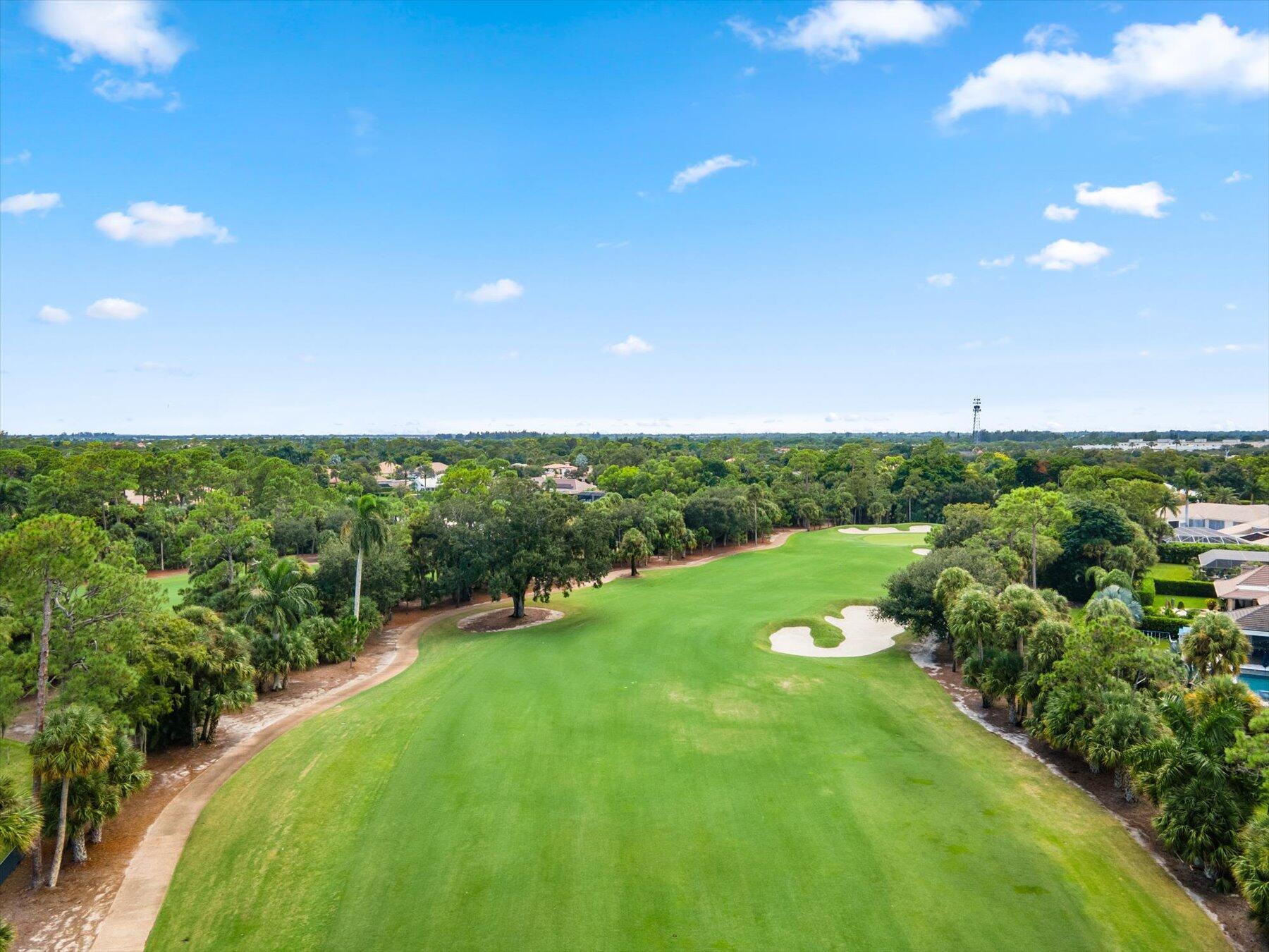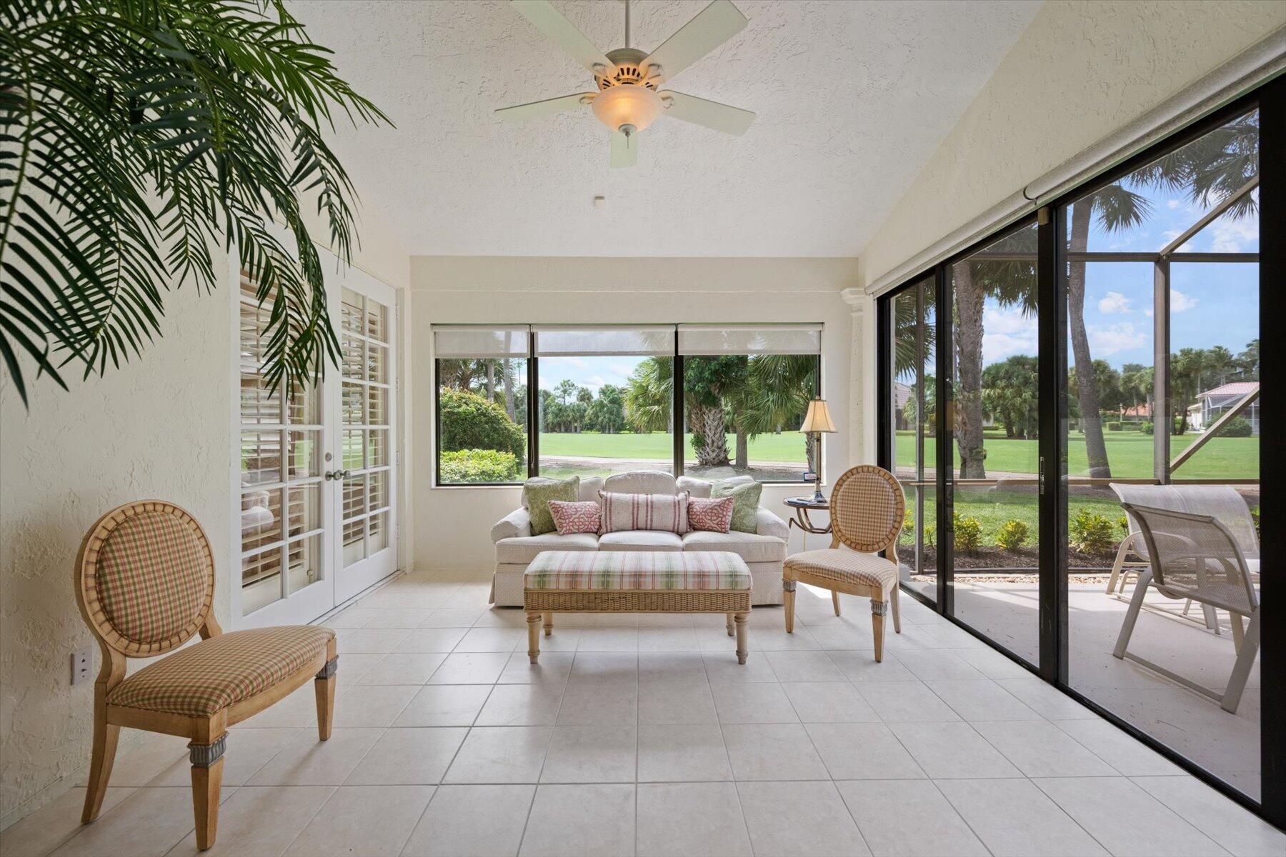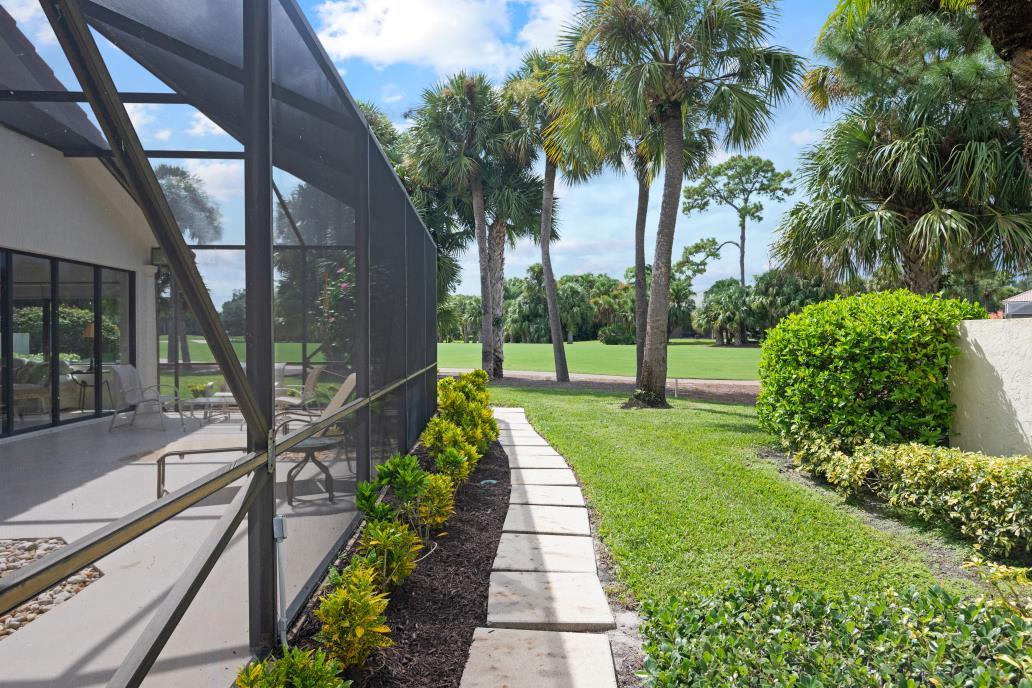 Location, Location, Location in Breakers West in West Palm Beach! This charming detached home has 3 Bedrooms + Florida Room, 3 Full Baths, 2 Car Garage and is situated in the boutique neighborhood of Fairway Villas with just 19 homes overlooking the 5th fairway of Breakers Rees Jones Course. The open Great Room floor plan with vaulted ceilings makes for easy living and entertaining. The adjoining Florida Room has sliding doors opening to the screen enclosed patio and boasts beautiful golf course views. Lg kitchen also opens to Great Room and has white cabinets, stone countertops & full backsplash, GE Profile appliances and a breakfast area overlooking the patio. Spacious 17' x 15' Primary Suite has vaulted ceilings and French Doors with plantation shutters opening to Florida Room as well.