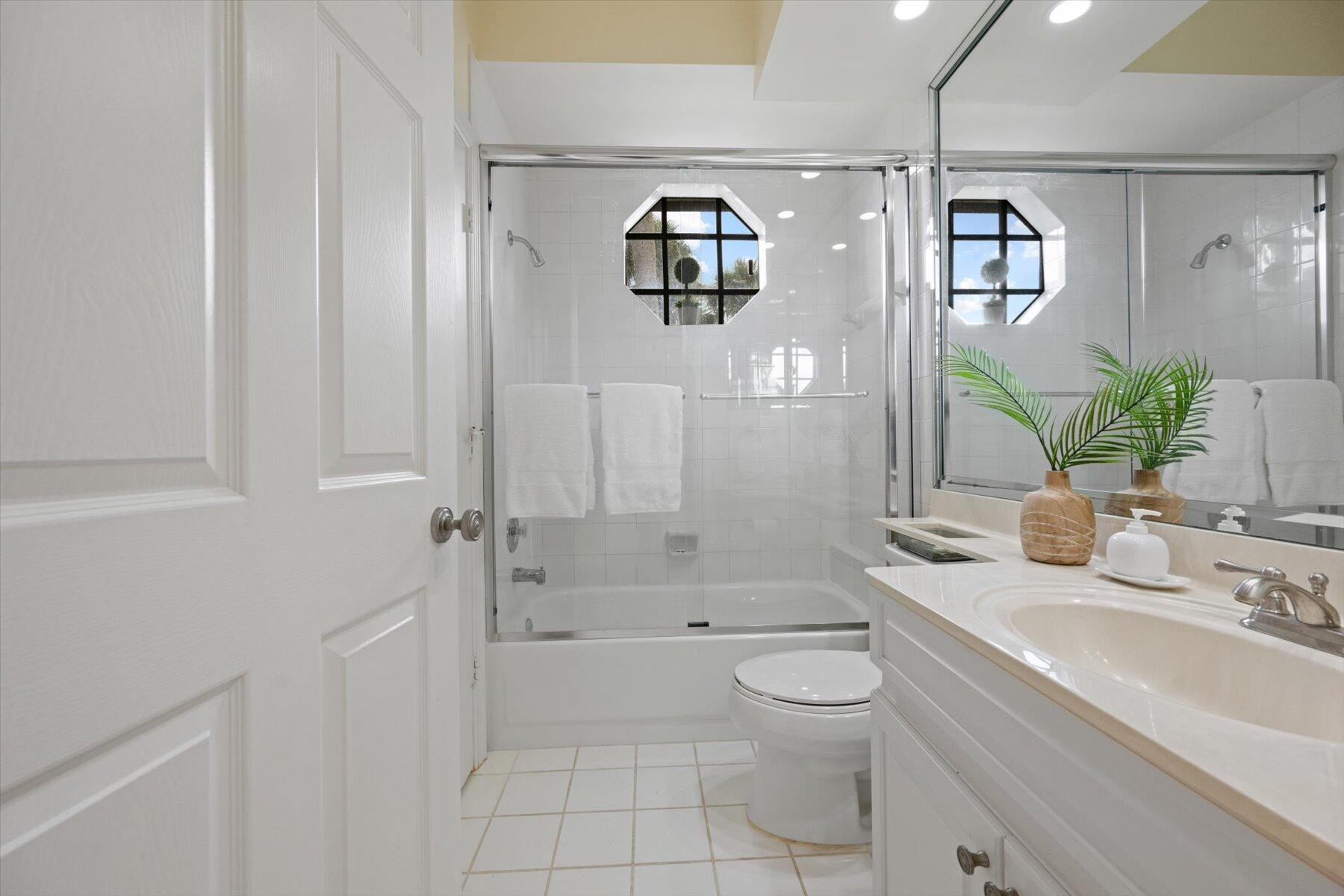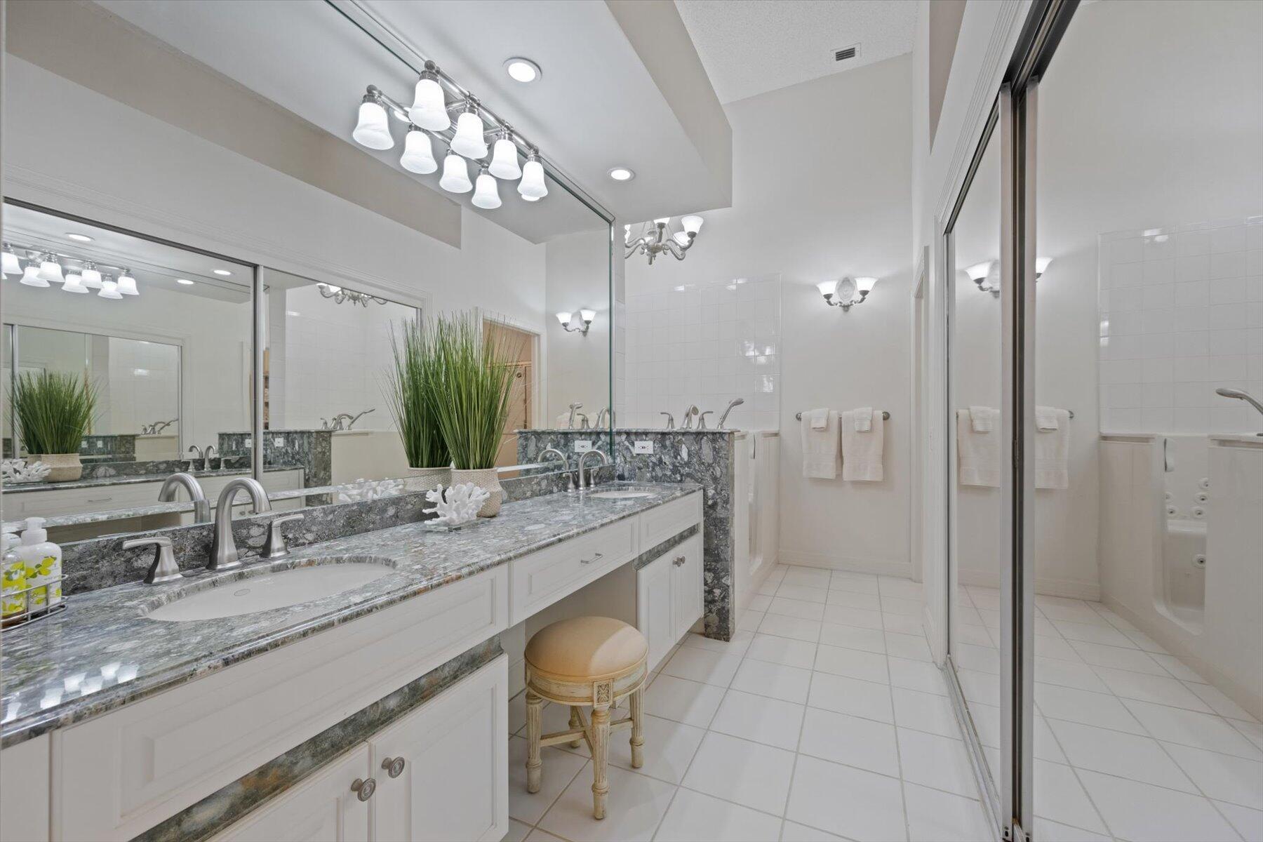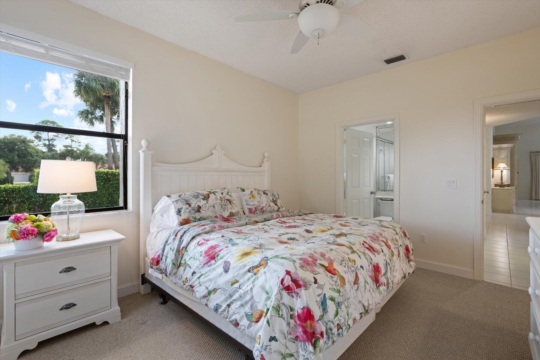 Location, Location, Location in Breakers West in West Palm Beach! This charming detached home has 3 Bedrooms + Florida Room, 3 Full Baths, 2 Car Garage and is situated in the boutique neighborhood of Fairway Villas with just 19 homes overlooking the 5th fairway of Breakers Rees Jones Course. The open Great Room floor plan with vaulted ceilings makes for easy living and entertaining. The adjoining Florida Room has sliding doors opening to the screen enclosed patio and boasts beautiful golf course views. Lg kitchen also opens to Great Room and has white cabinets, stone countertops & full backsplash, GE Profile appliances and a breakfast area overlooking the patio. Spacious 17' x 15' Primary Suite has vaulted ceilings and French Doors with plantation shutters opening to Florida Room as well.