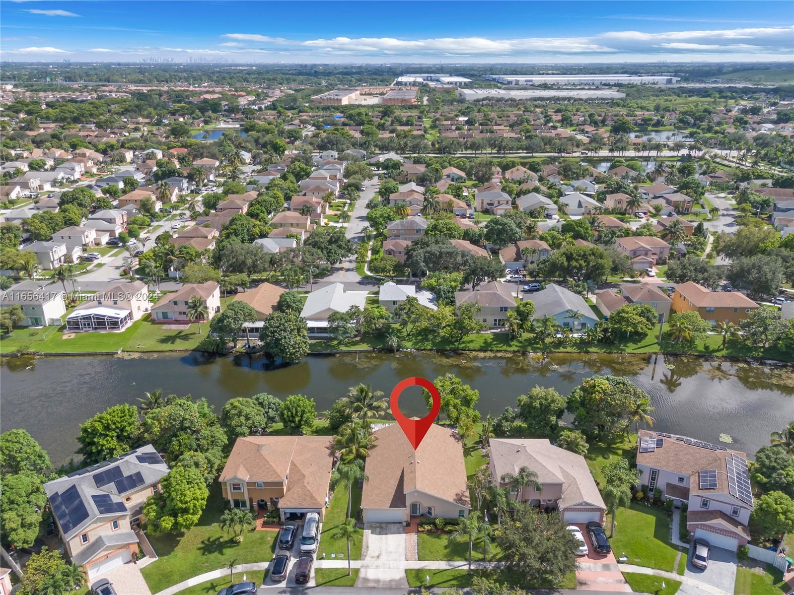 Welcome to this beautiful 3-bedroom, 2-bathroom home in the heart of Miramar with serene waterfront living. The open floor plan welcomes you with a bright, airy living space that leads to a spacious kitchen with sleek countertops, stainless steel appliances, and plenty of cabinet space. The master bedroom includes an en-suite bathroom and stunning views of the water, creating a peaceful retreat. Outside, enjoy your private backyard overlooking the water—perfect for relaxing or entertaining. Hurricane impact doors and windows throughout the home; garage door is also impact rated. Conveniently located near top-rated schools, parks, shopping, and dining, this home is ideal for families seeking a quiet, yet connected lifestyle. Tax records show property is 2,340 square feet with garage area.