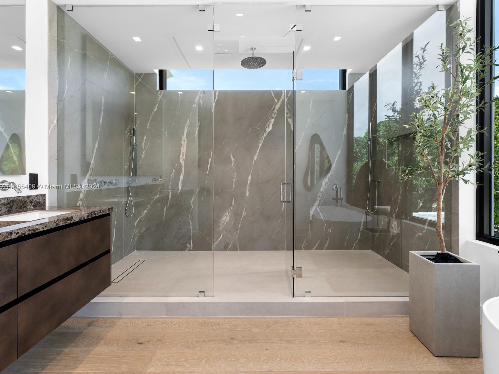 This stunning new construction home is centrally located in Miami Beach's coveted Lakeview neighborhood & offers 4 bedrooms & 3 luxurious bathrooms. The upstairs master suite features expansive dual walk-in closets and a spa-like bathroom with a large shower, soaking tub, and high-tech Toto automated toilet. A conveniently located downstairs bedroom, next to a full bathroom, is perfect for guests or a home office. The sophisticated interiors, curated by Visionnaire Home, enhances the seamless design. Outside, a serene pool and summer kitchen await for outdoor entertaining and relaxation. With soaring ceilings in the living area and a 1-car garage, this home combines style and convenience. Upstairs, two additional bedrooms.