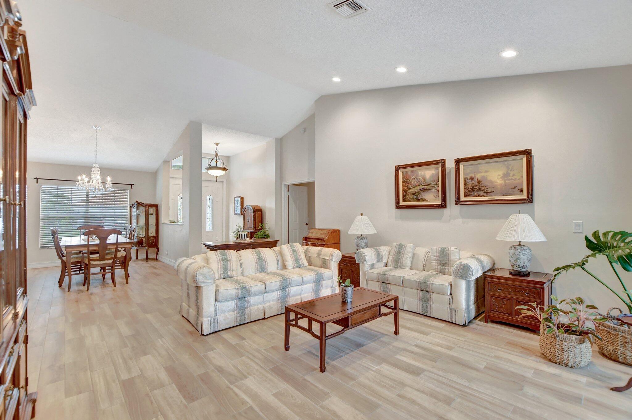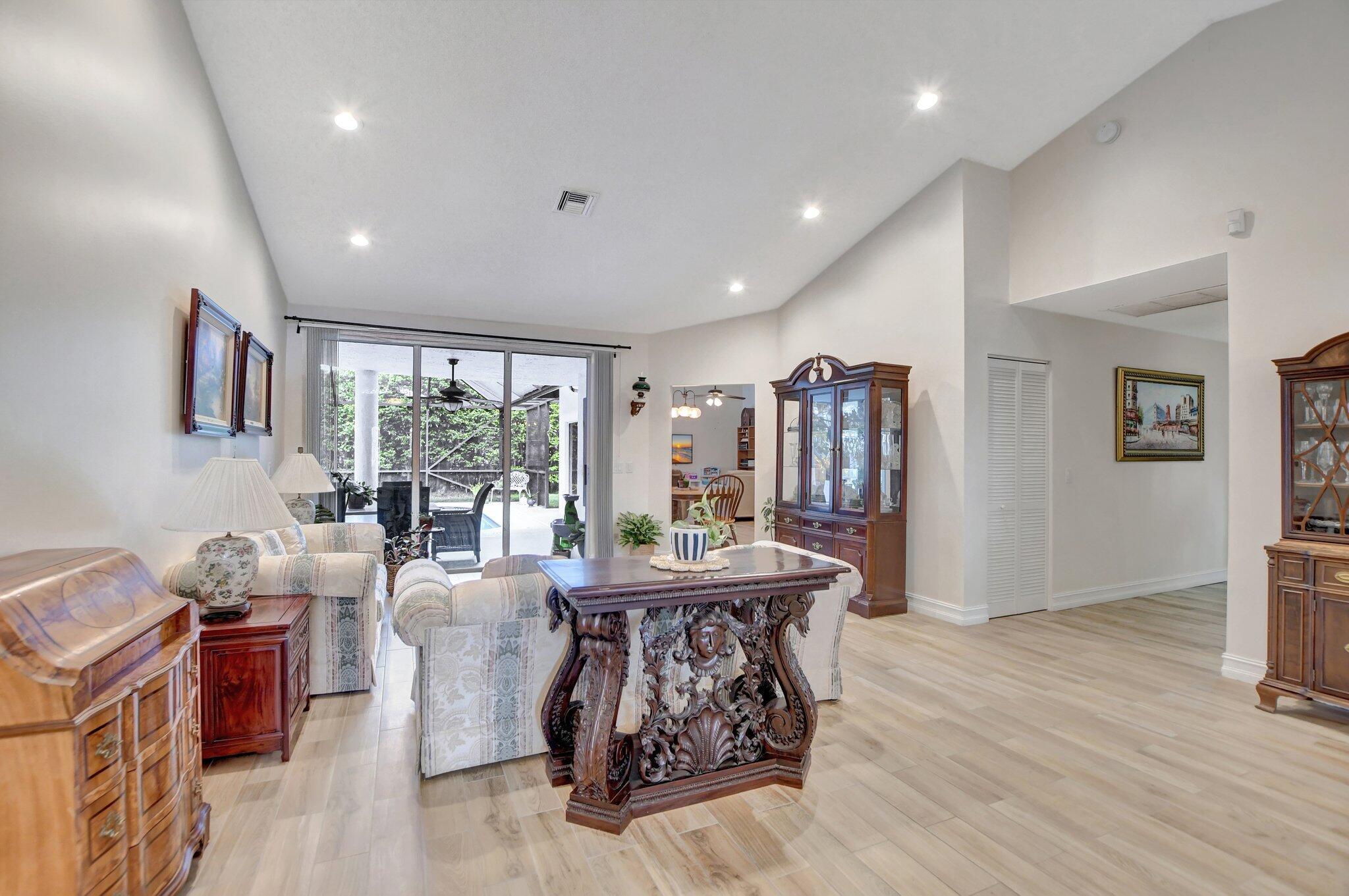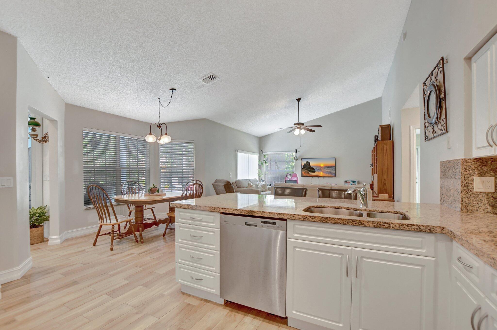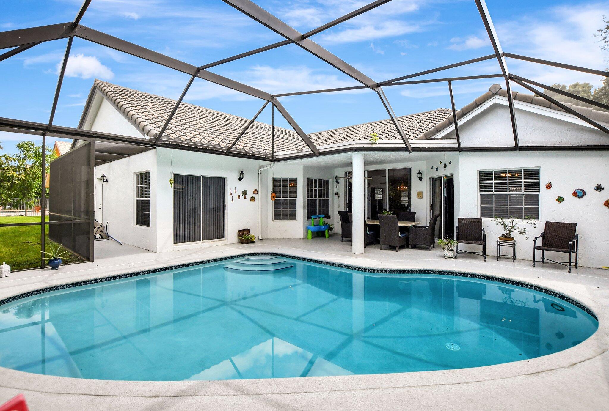 Spacious 4/3 split floor plan pool home on a corner lot in gated community of The Isle. Open concept area which is great for entertaining. Kitchen features granite countertops & stainless steel appliances. Kitchen & flooring throughout main areas updated in 2018. Water heater replaced in 2018. Pool & patio flooring resurfaced in 2021. Roof replaced in 2017. Mango & lychee trees in the yard. Enjoy the luxurious amenities of Mission Bay such as tennis, pickleball, basketball & a gym. Daily organized free fitness classes such as Zumba, yoga and body sculpting to name a few. Olympic size pool, kiddie pool and sauna. Community is very family-oriented and does many community activities for residents. 1 mile from 441 & Glades where you have grocery stores, pharmacy, restaurants and shopping.