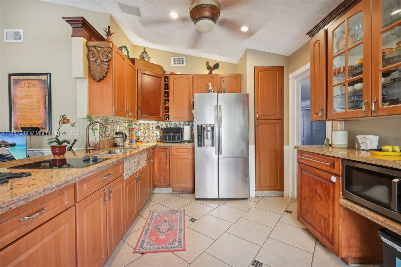 Introducing a beautifully maintained home in the highly desirable Shenandoah neighborhood of Davie. This home offers a bonus room with endless potential—perfect for a home gym, extra living space, or a creative workspace. The open-concept layout features high ceilings, allowing for abundant natural light. The kitchen boasts granite countertops, an eat-in breakfast bar, and stainless steel appliances, making it ideal for both everyday meals and entertaining. The updated bathrooms add a modern touch, complementing the home's Mediterranean, rustic custom-built style. Step outside to your private fenced-in yard, complete with a built-in fire pit, outdoor barbecue and tiki area—the perfect setup for outdoor gathering. Located near top-rated schools, parks, and just minutes from local amenities.