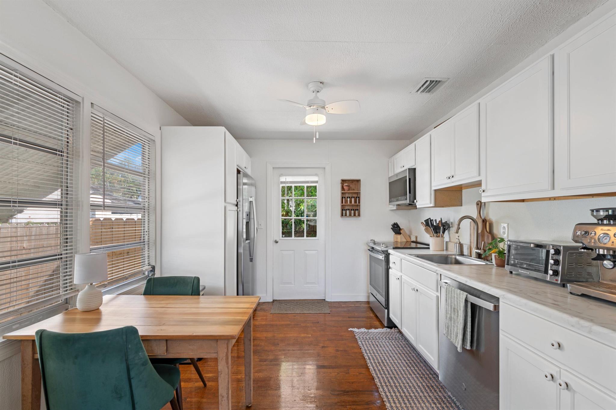 Talk about a revival! This charming home nestled in one of the most desired locations in West Palm Beach has been brought back to life over the past year. New upgrades include: roof, A/C, full bathroom re-model, plumbing, appliances, kitchen cabinets, duct work, fresh paint, ceiling fans, gate/fence. I mean there just really has been no stone left unturned. Expansive yard great for entertaining and plenty of room for a pool. Screened-in porch perfect for shade, your morning coffee or even a small outdoor gym. Laundry room inside. Just 7 blocks from the intracoastal where you can walk alongside historic Flagler Drive. Steps to local restaurants on Dixie Hwy. 5-minute drive to either downtown WPB or LWB. Starter home? Investment opportunity? The options are endless. Come see for yourself!