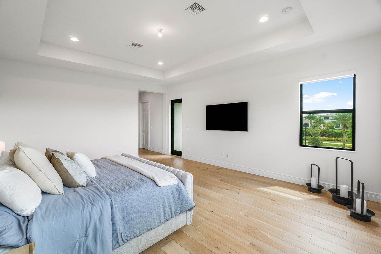 Welcome to this stunning Palma model in Boca Bridges. Nestled on a corner lot in a quiet cul-de-sac, this residence offers exceptional privacy and elegance. Featuring 5 bedrooms, each with its own bathroom, and 6 bathrooms total. The primary suite boasts waterfront views, a spa bath with soaking tub, two custom walk-in closets and a private balcony. The layout includes a versatile den/media room and a loft, providing ample space for relaxation and entertainment. The chef's kitchen is the heart of the home, complemented by two dining areas and two separate living rooms, perfect for hosting gatherings. Enjoy the backyard oasis with a private pool overlooking the water. Additional highlights include a 4-car garage, custom wood flooring, and a house generator.