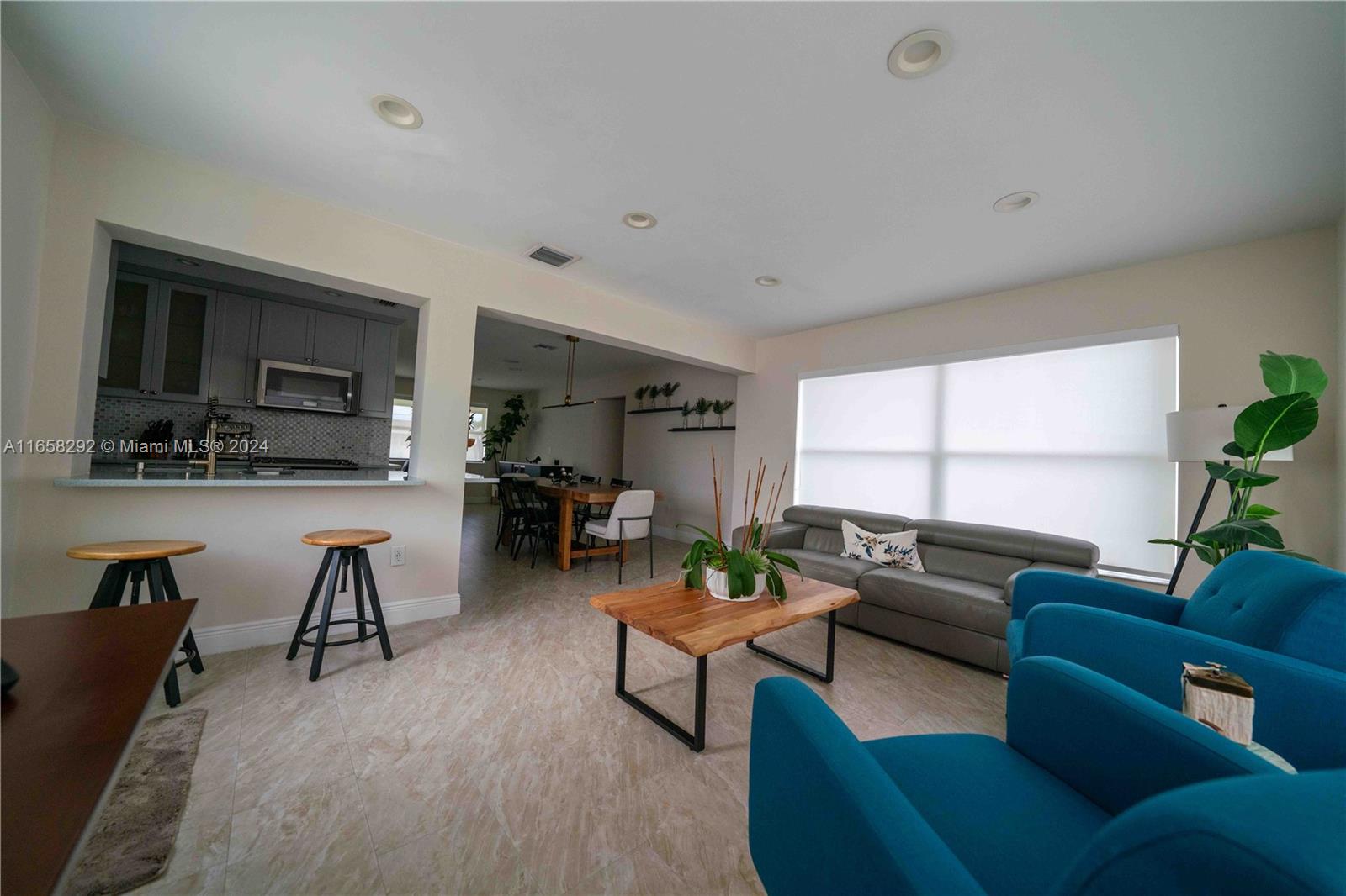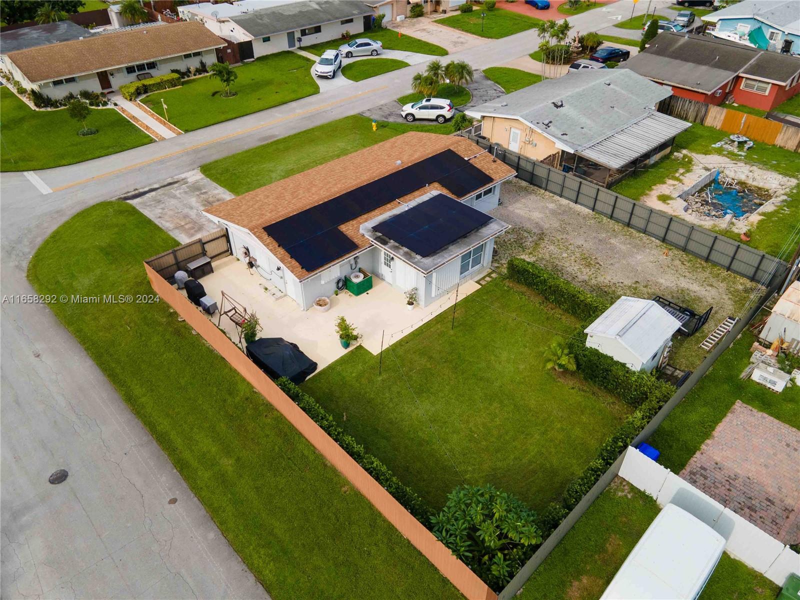 Updated 2/1 single-family home on a desirable corner lot in Pembroke Pines, offering 1,254 sq ft of living space with a 3-year-old roof. Step inside to a bright, open floor plan featuring beautiful porcelain tile floors throughout. The updated kitchen boasts sleek quartz countertops, modern cabinetry, and appliances. The bathroom has been renovated with high-end finishes. This home features a state-of-the-art solar panel system, providing significant energy savings. Outside, enjoy the well-maintained lawn and spacious backyard, perfect for entertaining. A garage offers parking and extra storage. Don't miss this opportunity!