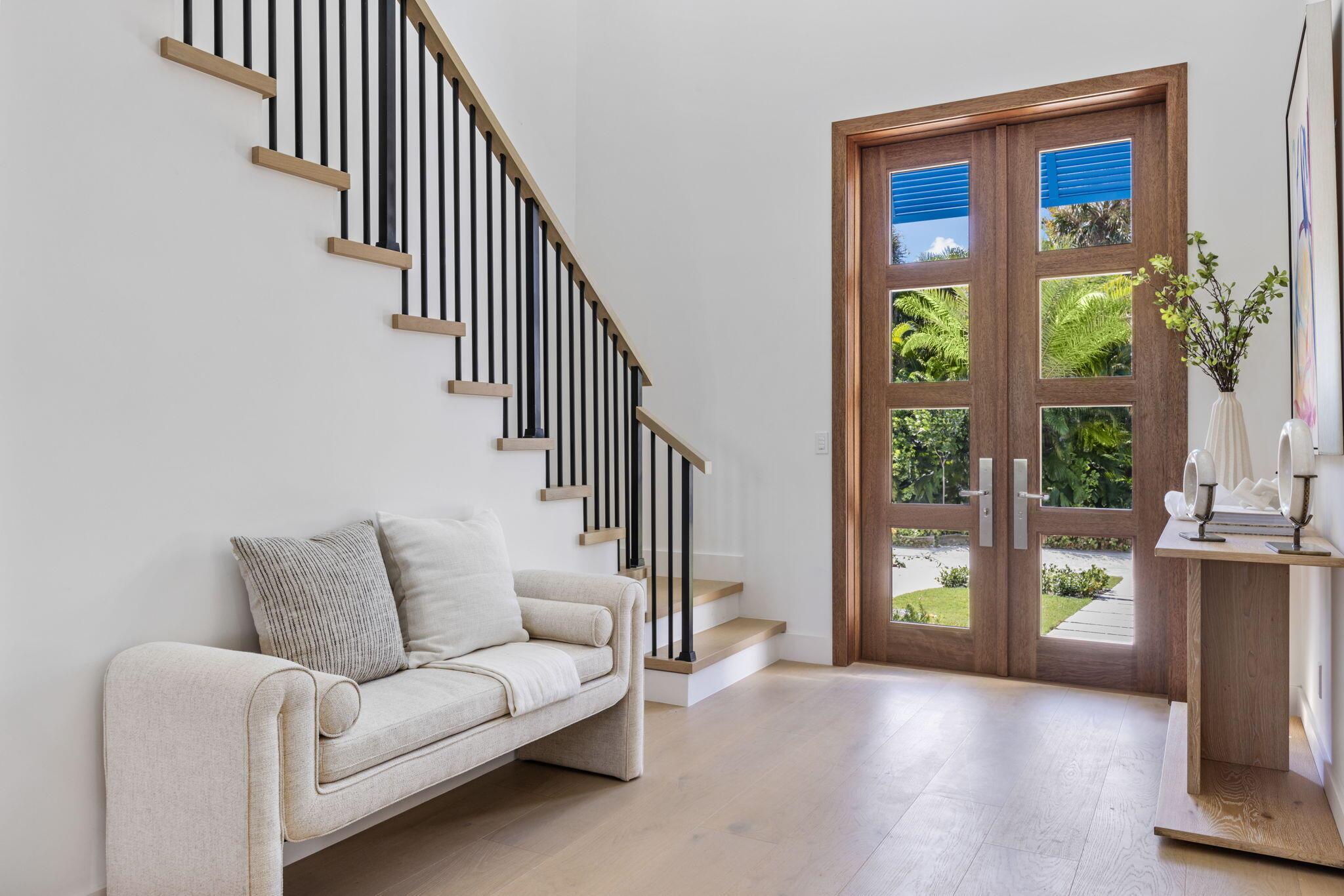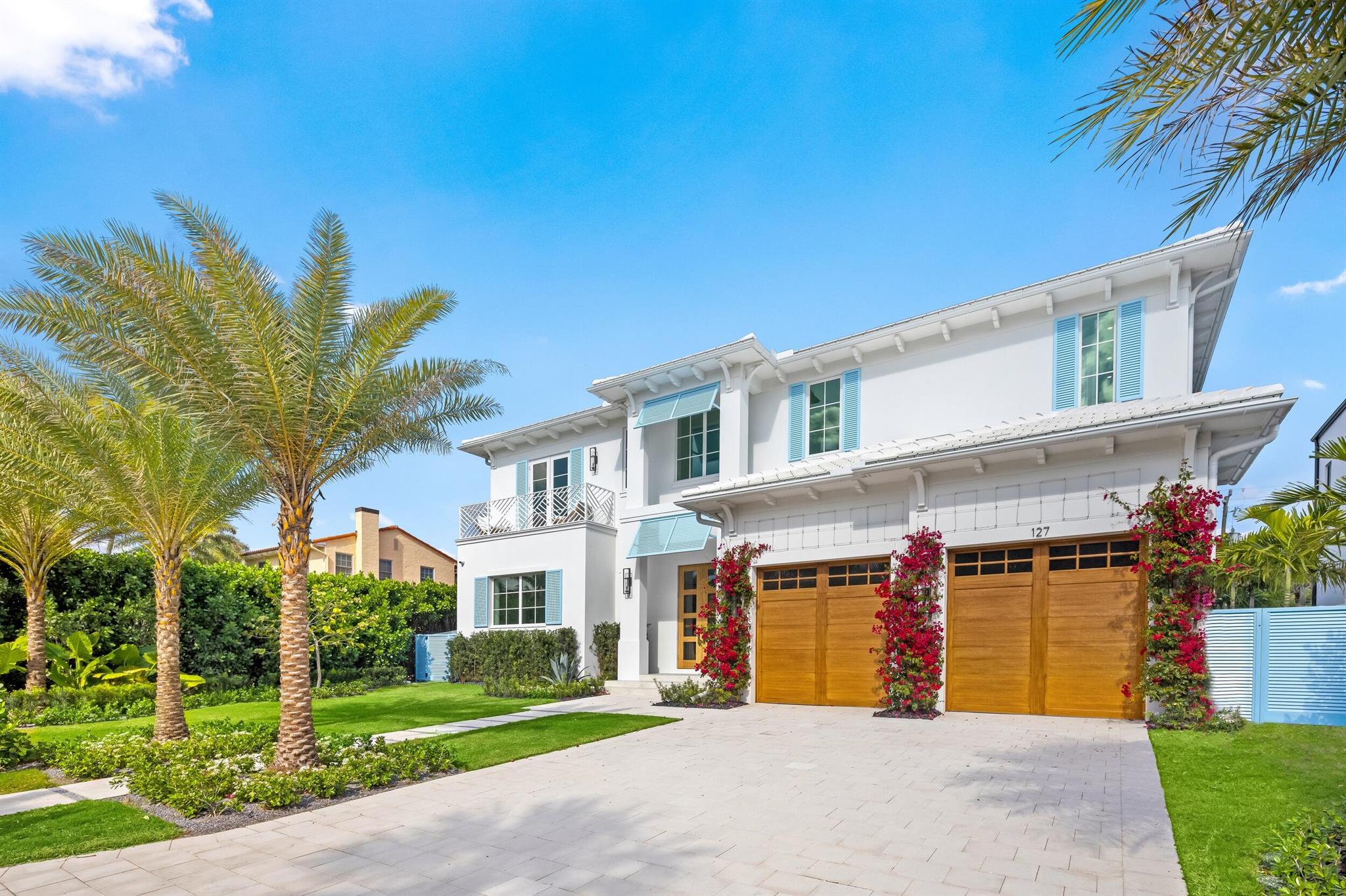 Welcome to 127 Murray Road, the premier new construction residence in the coveted ''SoSo'' neighborhood of coastal West Palm Beach. Located just steps from Flagler Drive with views from the upstairs of Palm Beach Island and the Intracoastal waterway, this British West Indies and Dutch Colonial inspired residence was just completed in September 2024 and is situated on a high elevation on one of the best streets South of Southern - only about a 1 minute drive to Palm Beach Island. Sitting on the desirable 100 lakefront block of well-known Murray Road, some of the home's features include 6,889 sq feet of total living space with 5 en suite bedrooms and baths, a two car garage, and a gorgeous powder room off of the inviting entry-hall.