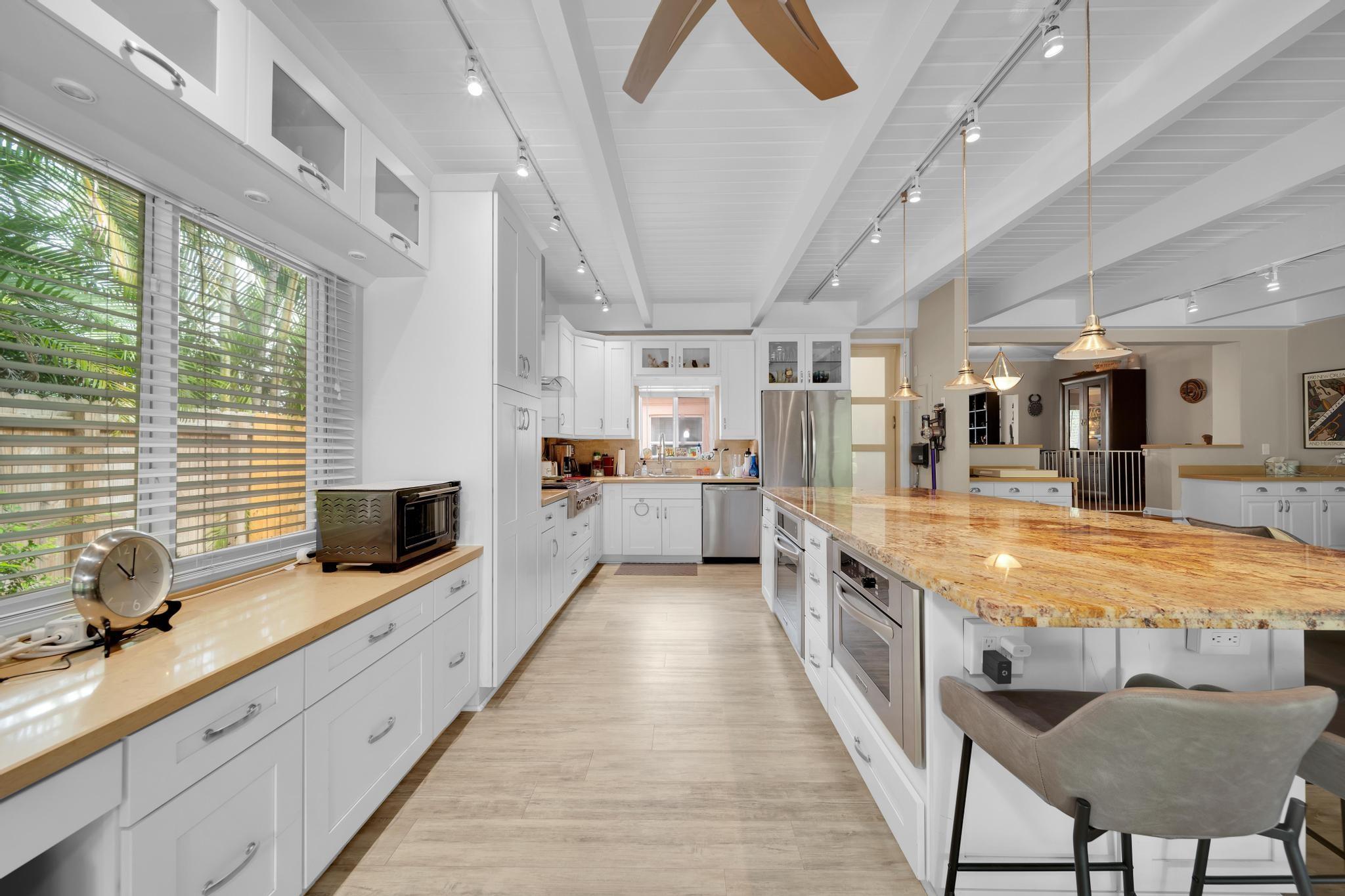 Impeccably maintained expanded 3/2 with a fantastic pool waterfall and spa set in a lush tropical rare big 65 X 135 yard, living room with fireplace, dining room, huge family room, additional office and beautiful open kitchen with a large granite island, big primary bedroom with ample closets, tile roof and impact glass. Walking distance to Las Olas, close to beaches, great restaurants, shopping, airport, and everywhere you want to be.