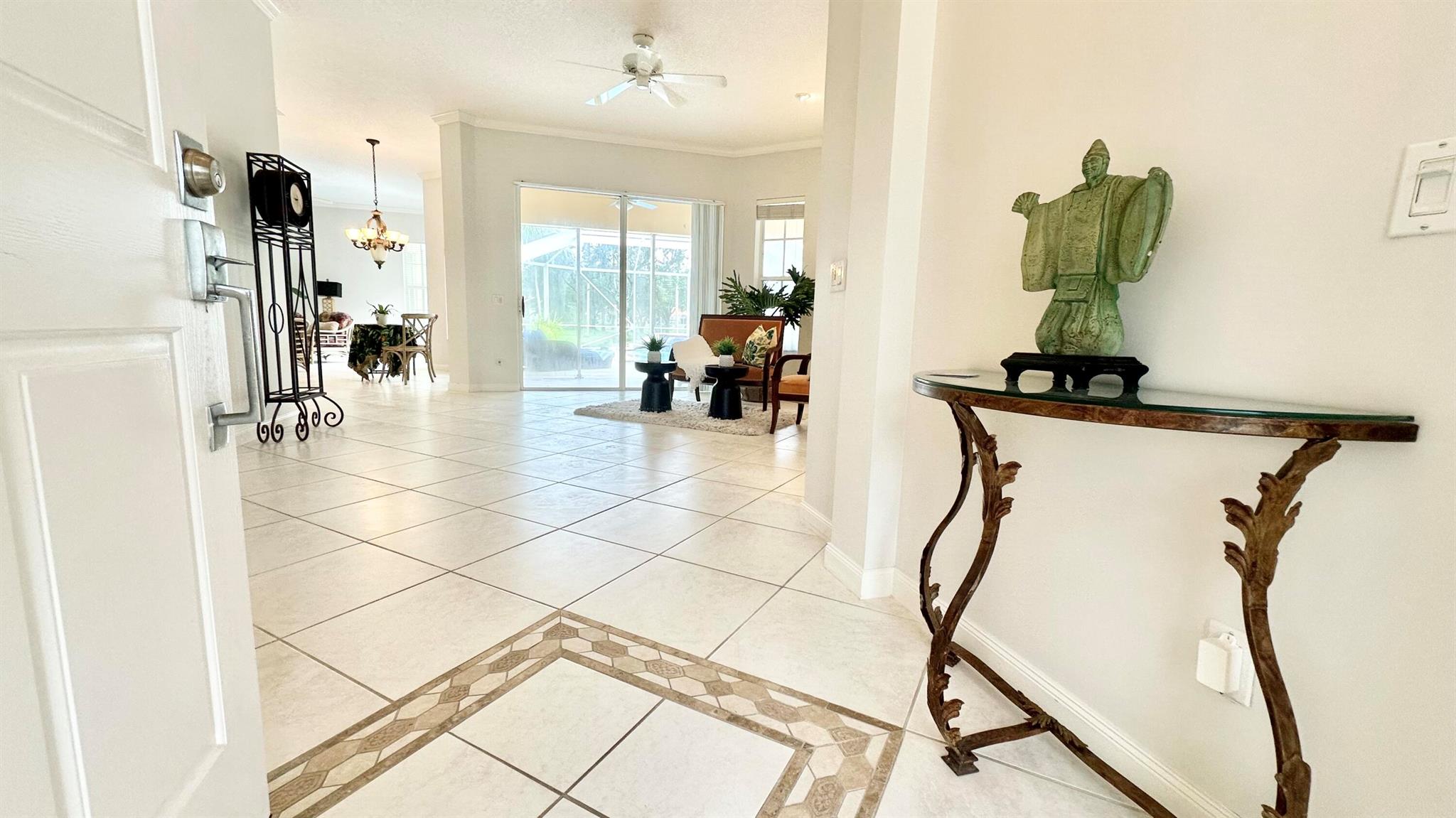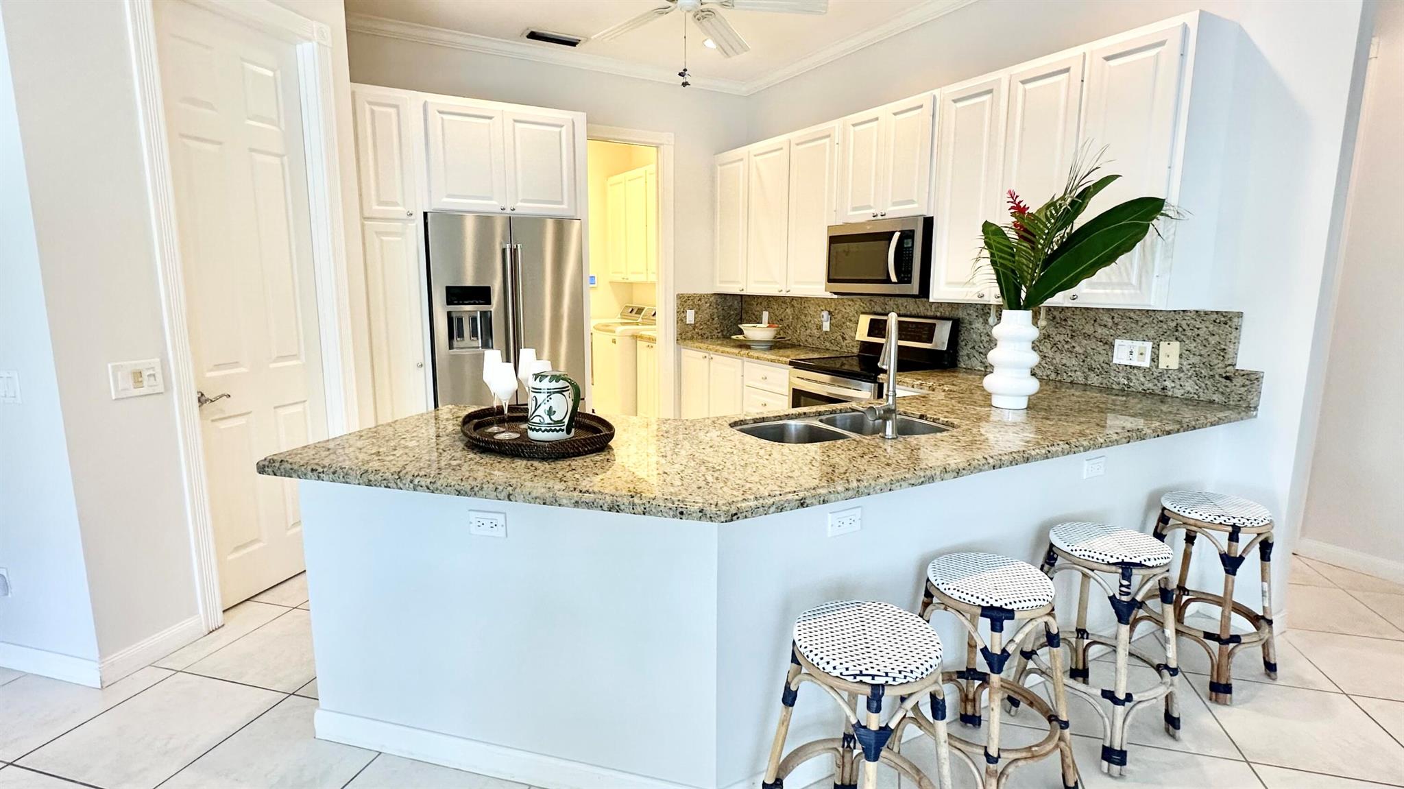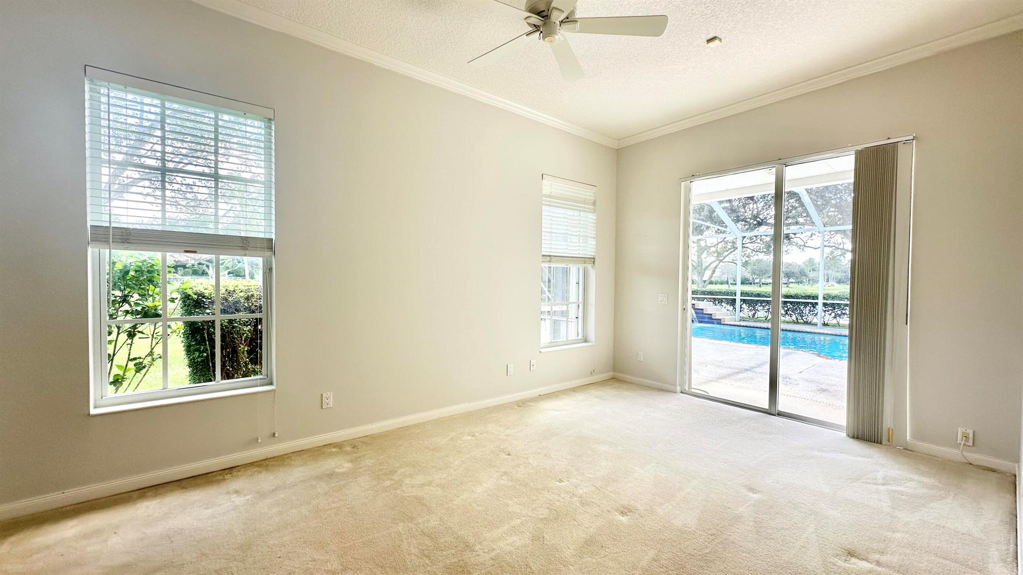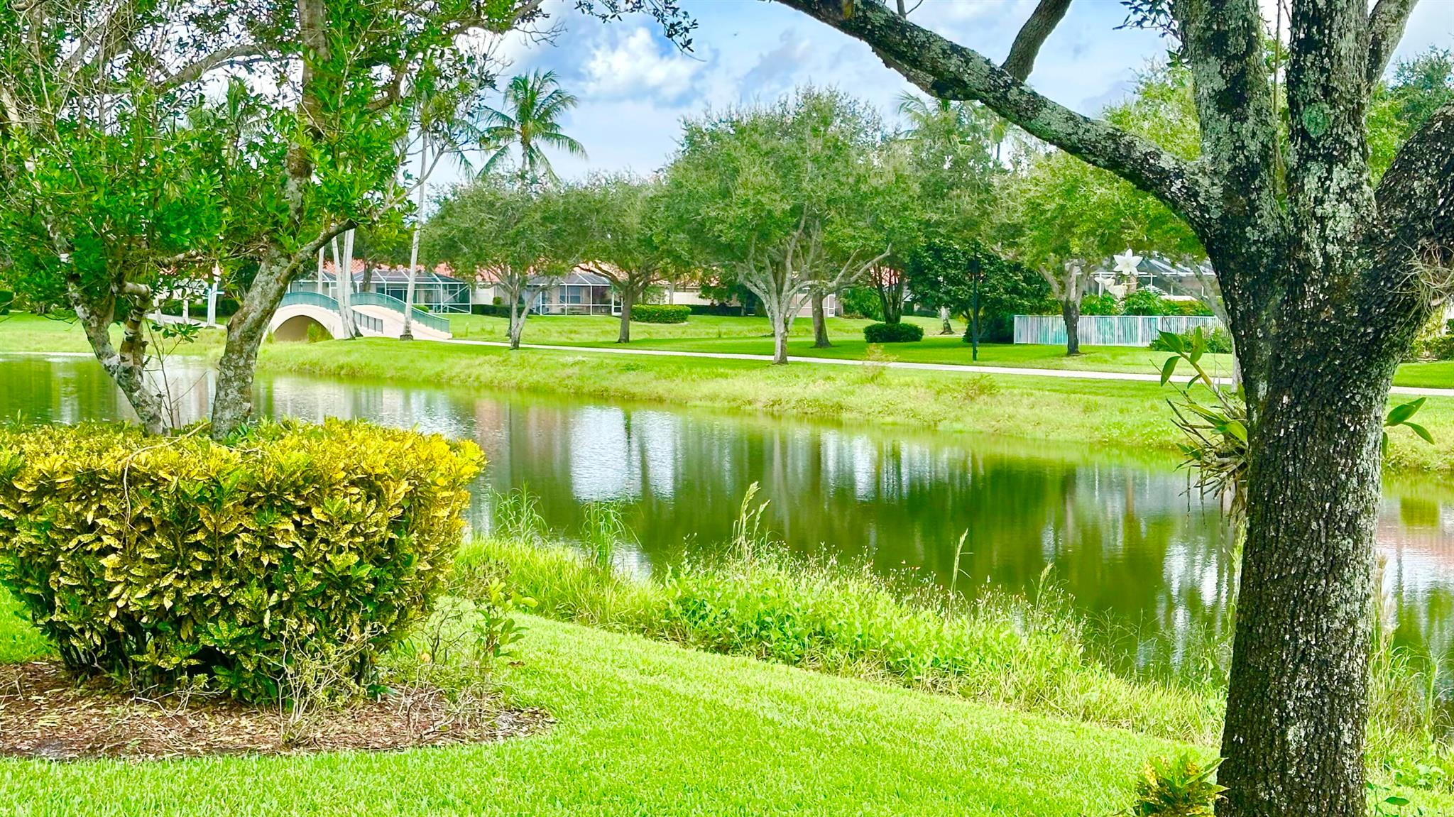 PHENOMENAL!! Hands down one of the best views and locations in RiverWalk... wake up to a glorious sunrise and wind down to a stunning sunset! This beautiful ''Windsor'' is situated on the point lot at the end of the cul de sac and enjoys wrap around views of the lakes and bridges. The oversized custom pool is a show stopper and has a raised spa with waterfalls and jets. Another great feature is the NEW ROOF in 2020!! The list of features this home has is abundant- roll down hurricane shutters, custom tiled flooring in the main living areas, crown molding, split floor plan (3 bedrooms on one side and the principal suite the opposite.