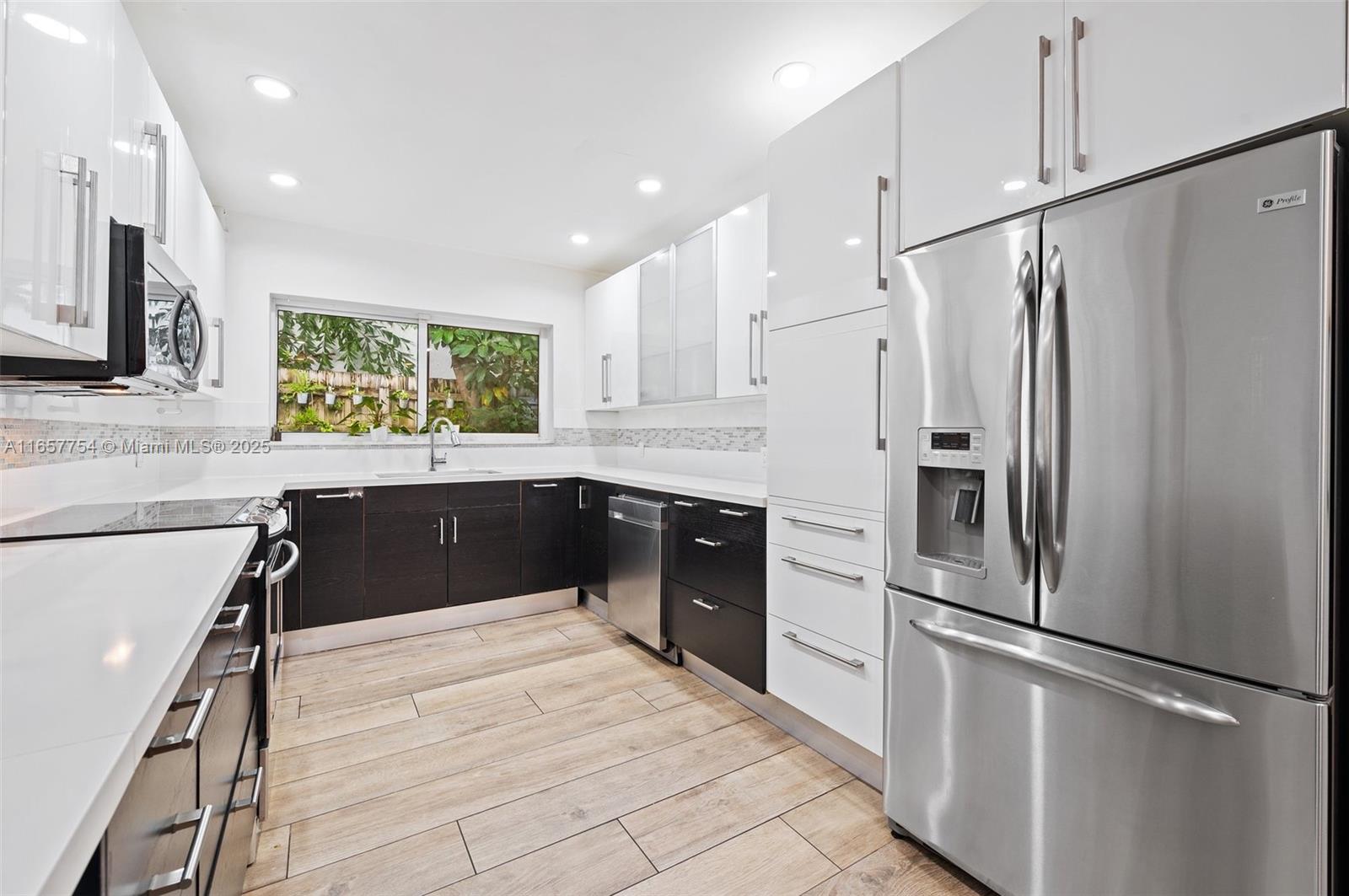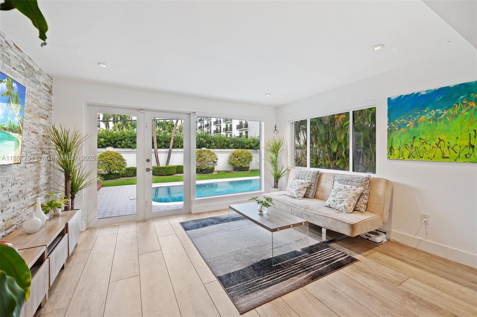 Elegantly reimagined, this 4-bedroom, 3-bathroom residence is tucked away on a quiet cul-de-sac in prestigious North Coconut Grove. Ideally positioned near the Brickell Financial District and the historic Coconut Grove Village, celebrated for its dining, boutiques, and lush parks—the home offers both serenity and convenience. A gracious foyer opens to a sun-filled open-concept layout featuring a modern kitchen, dining area, and inviting living space. An entertainment room overlooks the pool and landscaped garden. The split floor plan includes a private principal suite with walk-in closet and spa-inspired bath, two bedrooms with a Jack-and-Jill bathroom, and a guest suite with private bath. Additional features include a den or fifth bedroom, a small office, a two-car garage, and thoughtful modern upgrades throughout. A neighborhood drainage improvement project currently underway is set to further enhance long-term appeal and value.