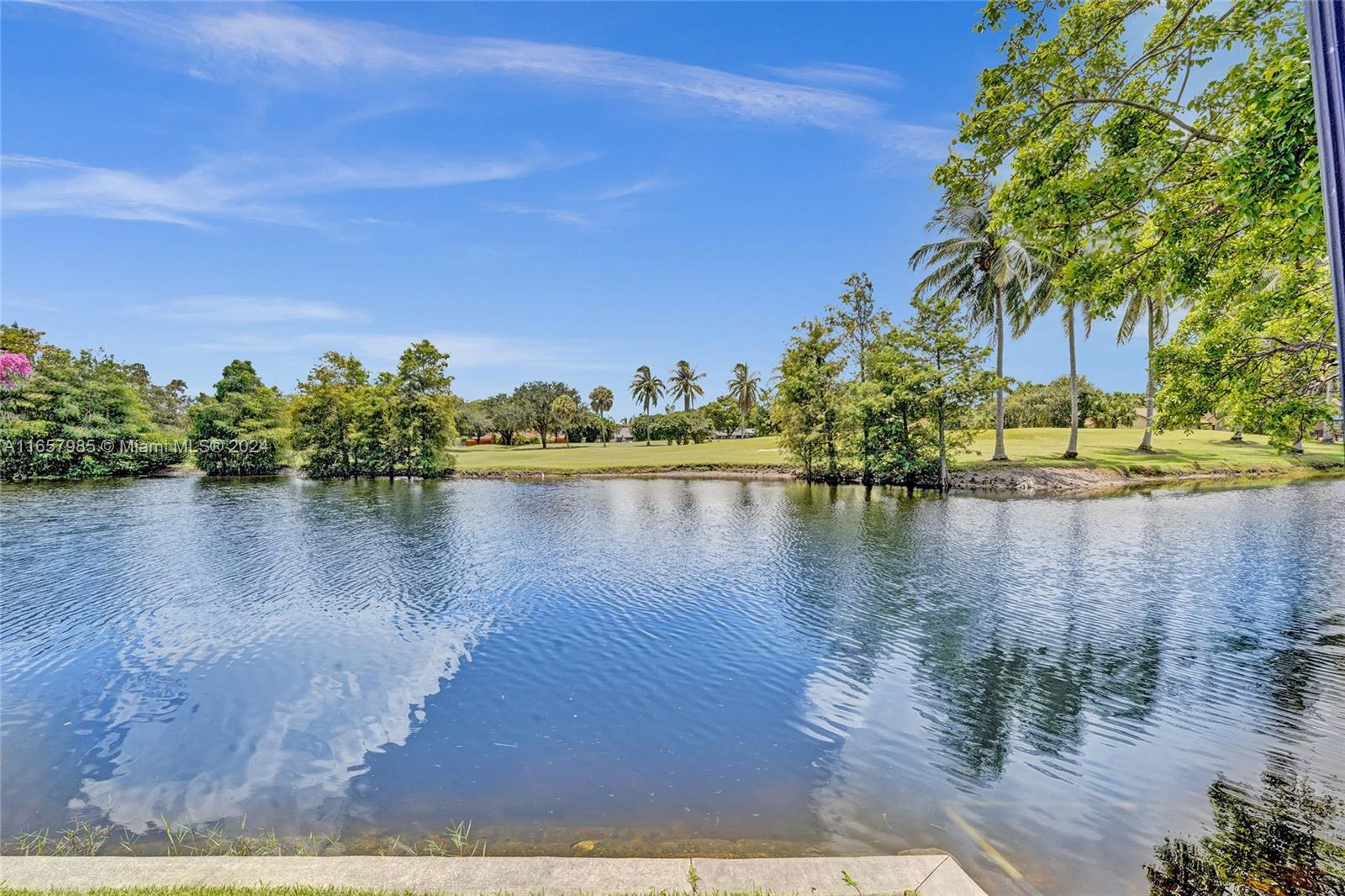 RARELY AVAILABLE! This 3/2.5 townhouse is located on a PRIME CORNER LOT w/ WATERFRONT ON TWO SIDES & a SERENE VIEW OF THE GOLF COURSE. Grand living area features LARGE & OPEN KITCHEN WITH SNACK BAR overlooking a SPACIOUS DINING/LIVING ROOM with a FIREPLACE (gas, not connected). A SPACIOUS PRIMARY SUITE features LARGE BEDROOM W/SITTING AREA great for an office, nursery, or exercise room, a PRIMARY BATH W/ SEPARATE SINKS, SPA TUB & WALK-IN SHOWER, & a LARGE WALK-IN CLOSET. Upstairs GUEST BEDROOM W/ MURPHY BED is perfect for guests & just steps to the UPDATED GUEST BATH. Enjoy your GORGEOUS VIEWS from the SCREENED PATIO that has a BUILT-IN GAS GRILL. Just steps to LARGE CLUBHOUSE with POOL, SAUNA, GYM, REC ROOM, etc. ACCORDIAN SHUTTERS ALL AROUND. **Read Broker's Remarks**