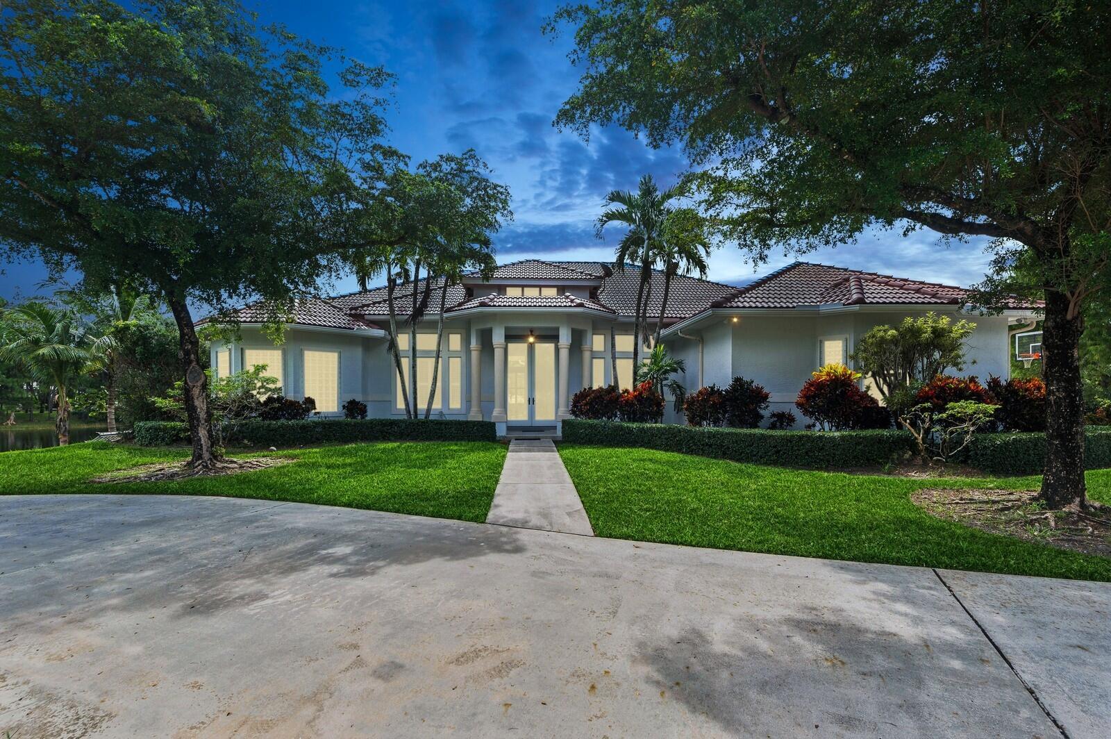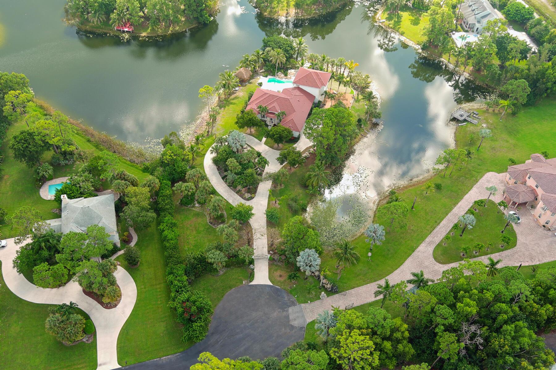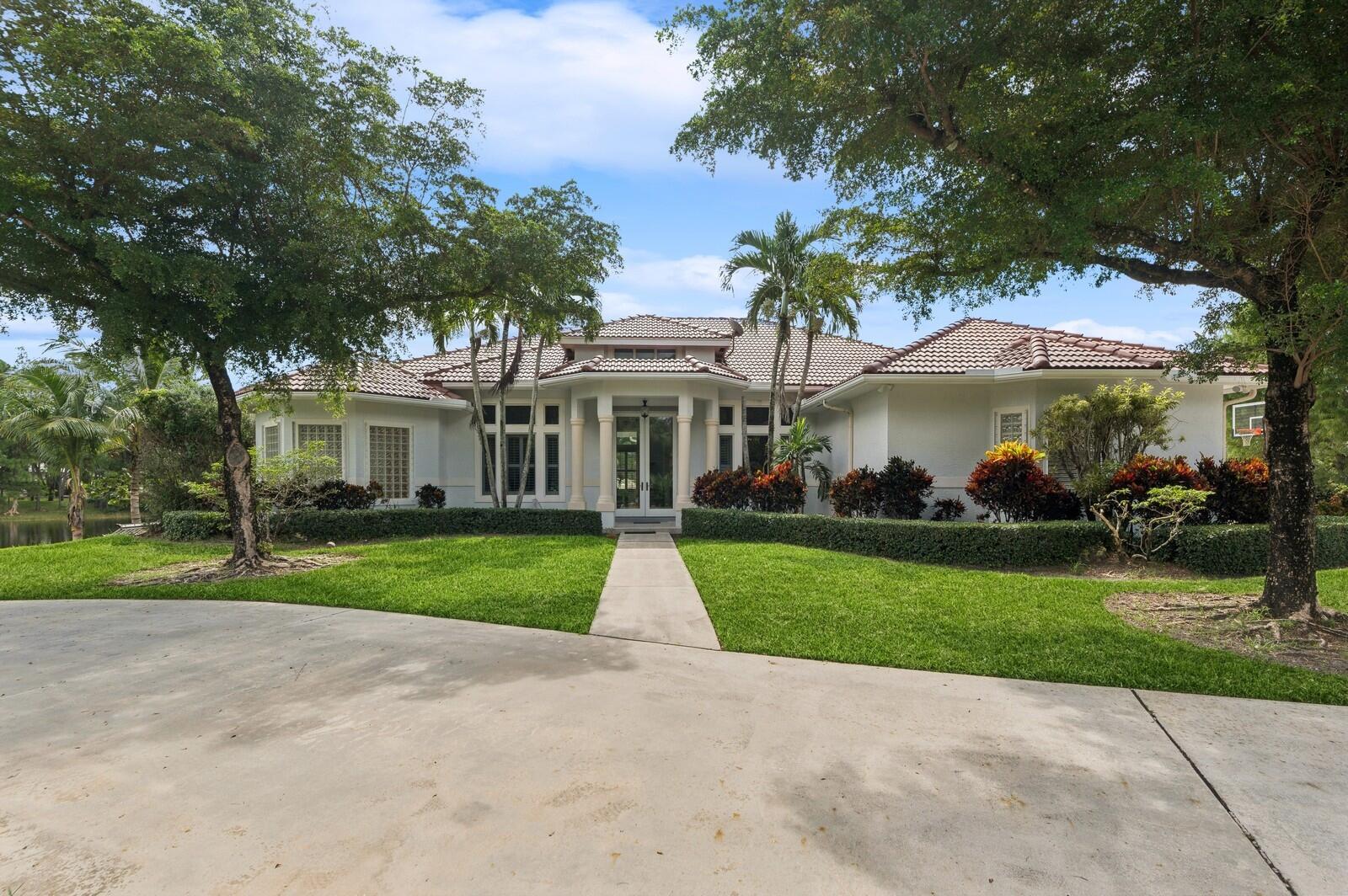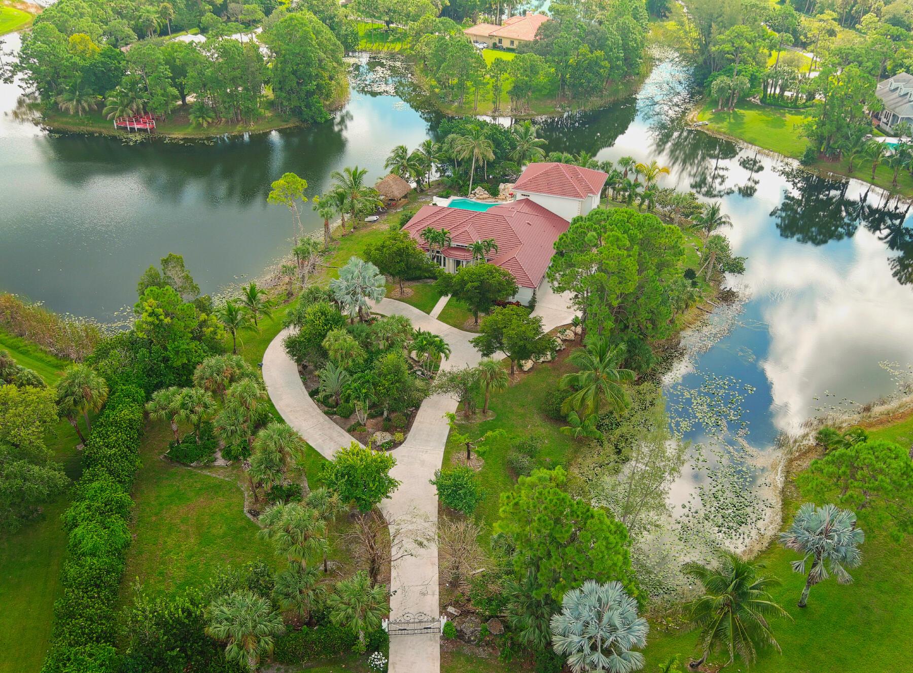 Your dream PENINSULA 2.5-acre Estate offers incredible panoramic views of water, a sense of privacy & a unique connection to nature. Centrally located in West Palm Beach, FL, your 'escape from reality' spans 5k+ft of living area & 600+ft of water frontage. Your private acreage has an extensive circular driveway & beautiful gardens all around. This home has 4BR+flex rm+den/4.5BA/3CG a tremendous dining area/chef's kitchen, quartz c-tops, wine fridge, coffee station, buffet & captivating views! You'll be in awe stepping into the massive family rm where you see water views everywhere! More features include marble floors, wrought iron railing up the stairs, a stunning chandelier at the landing & 2 more phenomenal master suites; one w/ a balcony & pool views. Enjoying your rear SE expososure,