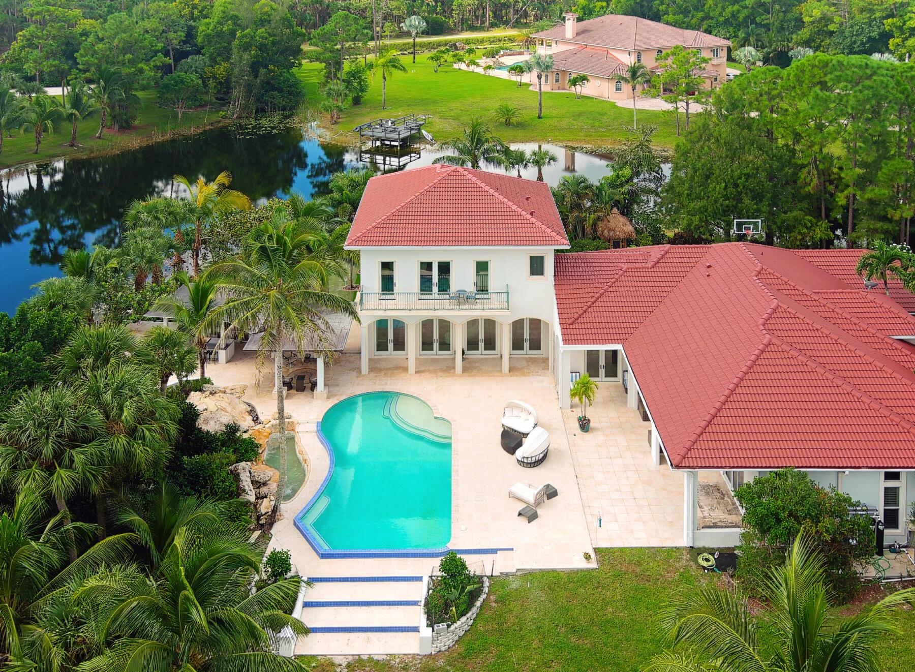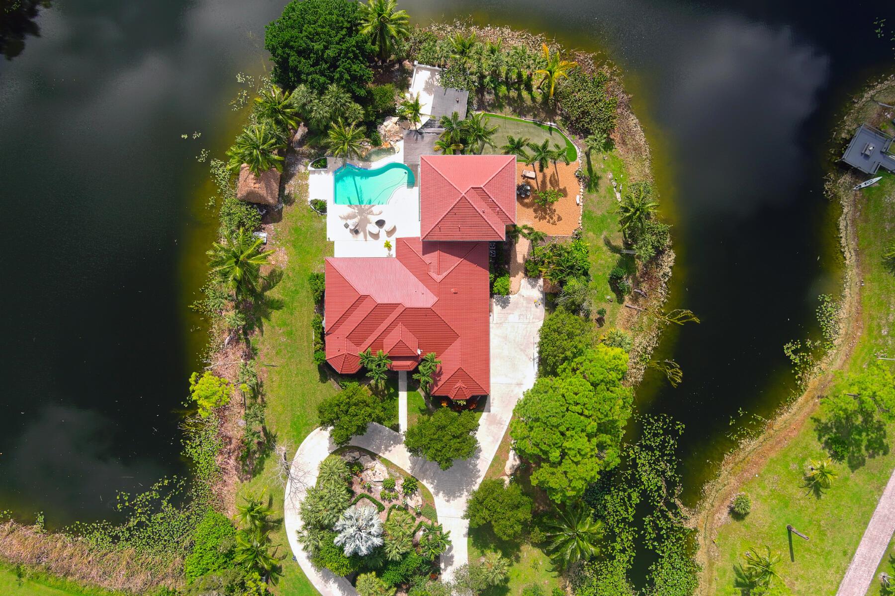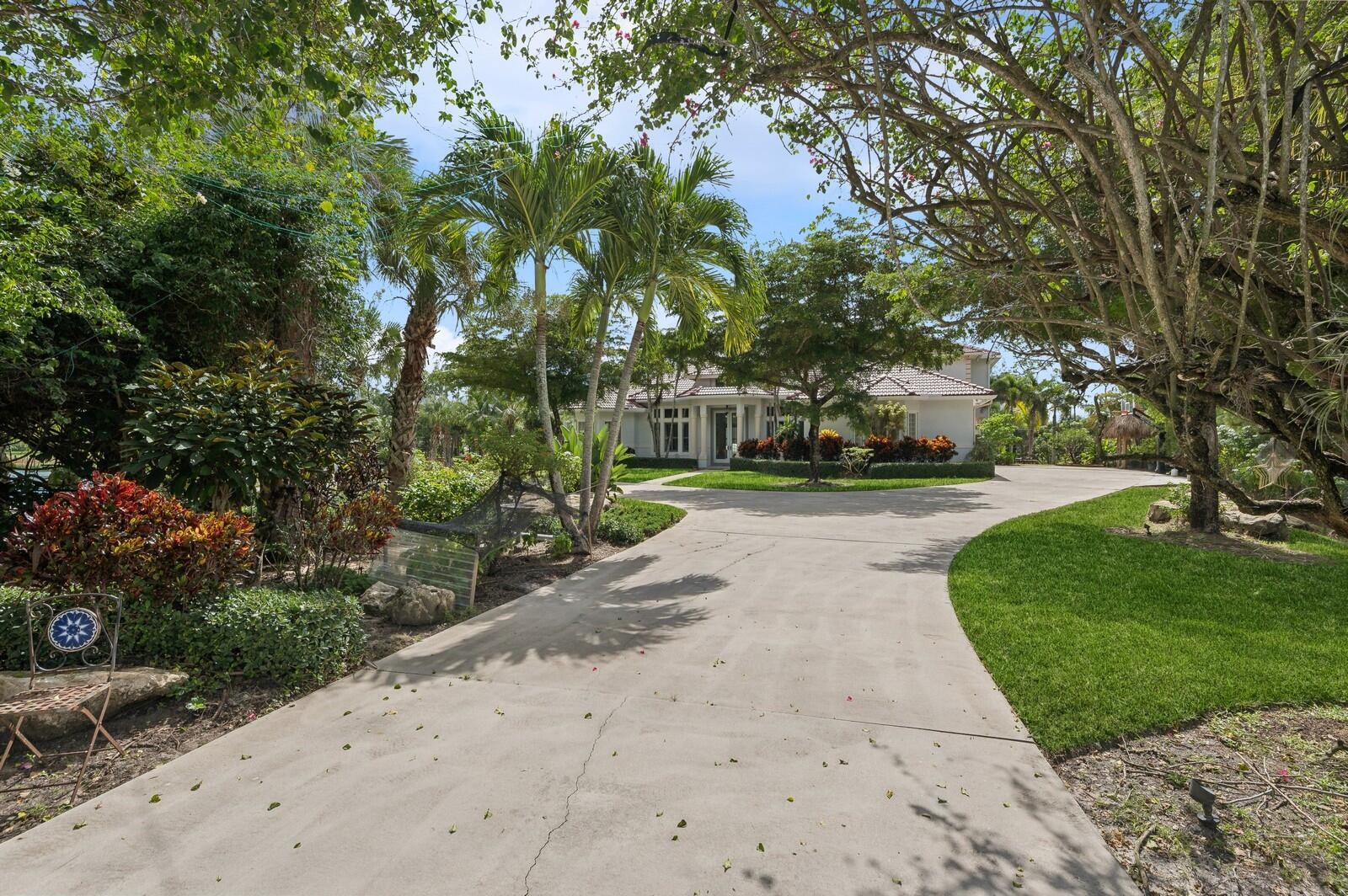 Your dream PENINSULA 2.5-acre Estate offers incredible panoramic views of water, a sense of privacy & a unique connection to nature. Centrally located in West Palm Beach, FL, your 'escape from reality' spans 5k+ft of living area & 600+ft of water frontage. Your private acreage has an extensive circular driveway & beautiful gardens all around. This home has 4BR+flex rm+den/4.5BA/3CG a tremendous dining area/chef's kitchen, quartz c-tops, wine fridge, coffee station, buffet & captivating views! You'll be in awe stepping into the massive family rm where you see water views everywhere! More features include marble floors, wrought iron railing up the stairs, a stunning chandelier at the landing & 2 more phenomenal master suites; one w/ a balcony & pool views. Enjoying your rear SE expososure,