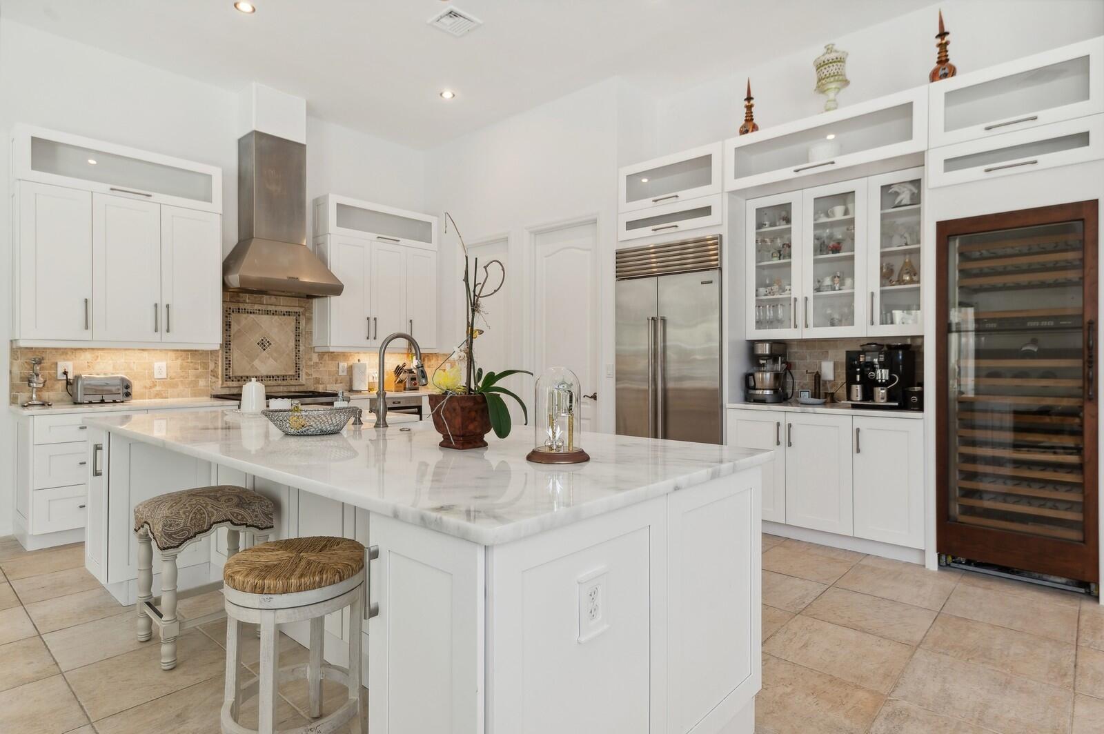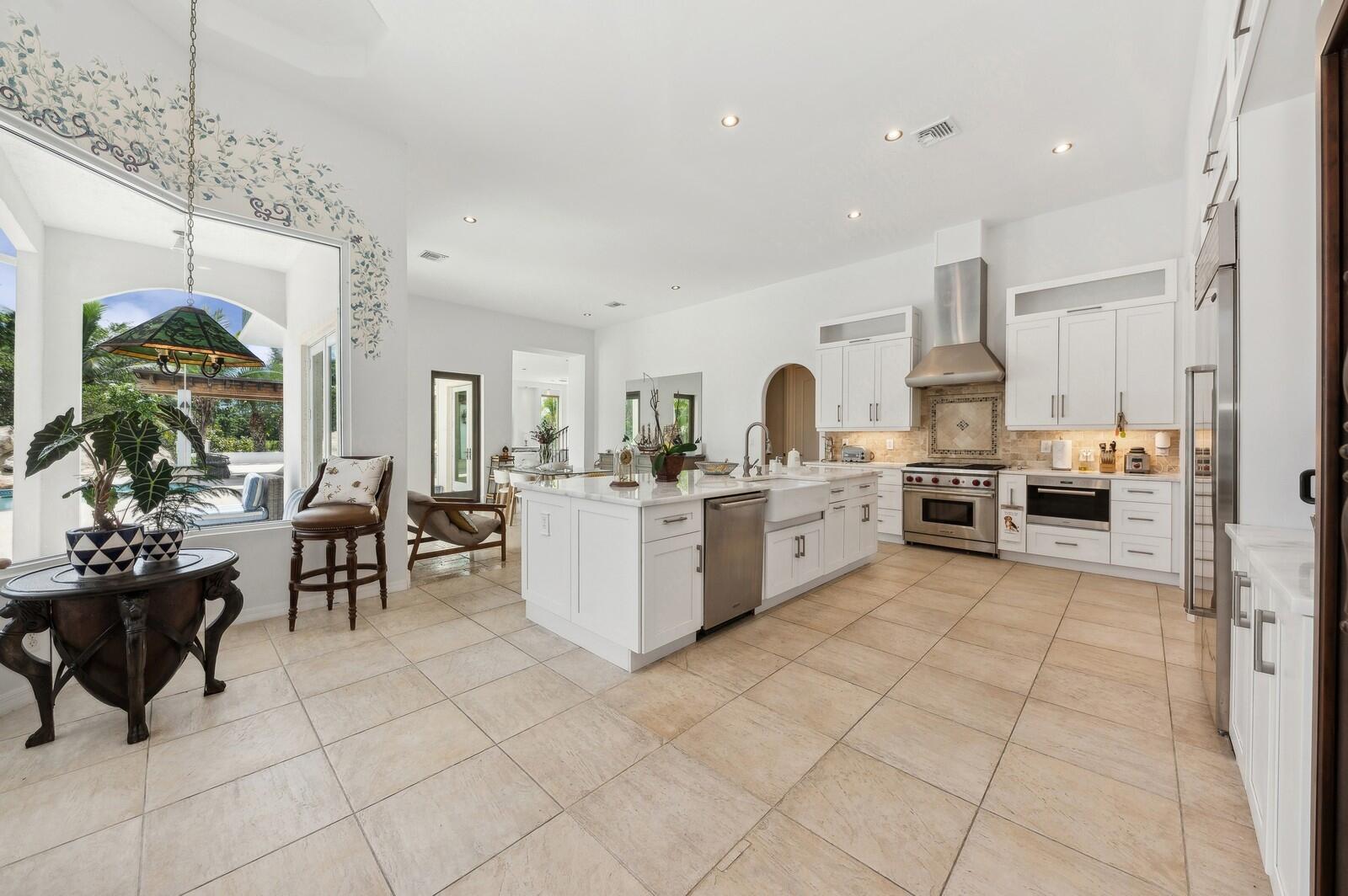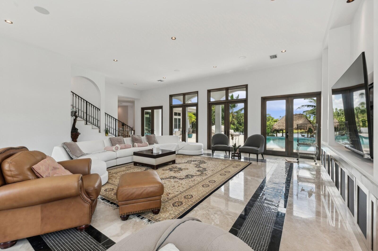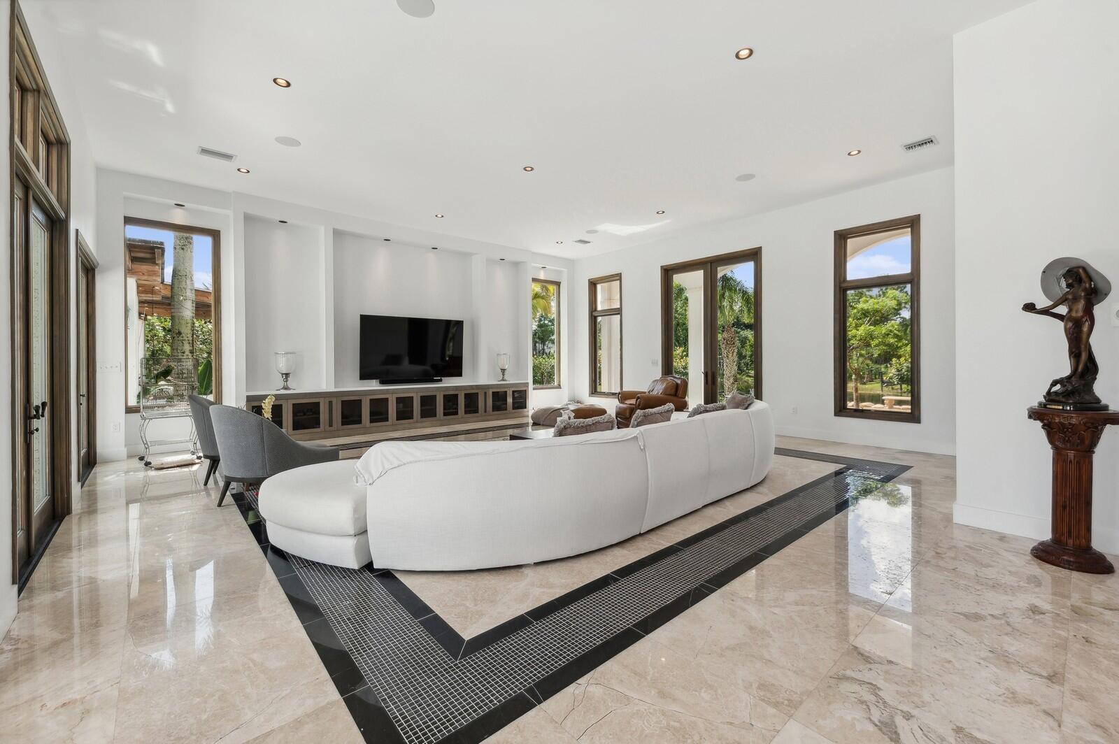 Your dream PENINSULA 2.5-acre Estate offers incredible panoramic views of water, a sense of privacy & a unique connection to nature. Centrally located in West Palm Beach, FL, your 'escape from reality' spans 5k+ft of living area & 600+ft of water frontage. Your private acreage has an extensive circular driveway & beautiful gardens all around. This home has 4BR+flex rm+den/4.5BA/3CG a tremendous dining area/chef's kitchen, quartz c-tops, wine fridge, coffee station, buffet & captivating views! You'll be in awe stepping into the massive family rm where you see water views everywhere! More features include marble floors, wrought iron railing up the stairs, a stunning chandelier at the landing & 2 more phenomenal master suites; one w/ a balcony & pool views. Enjoying your rear SE expososure,