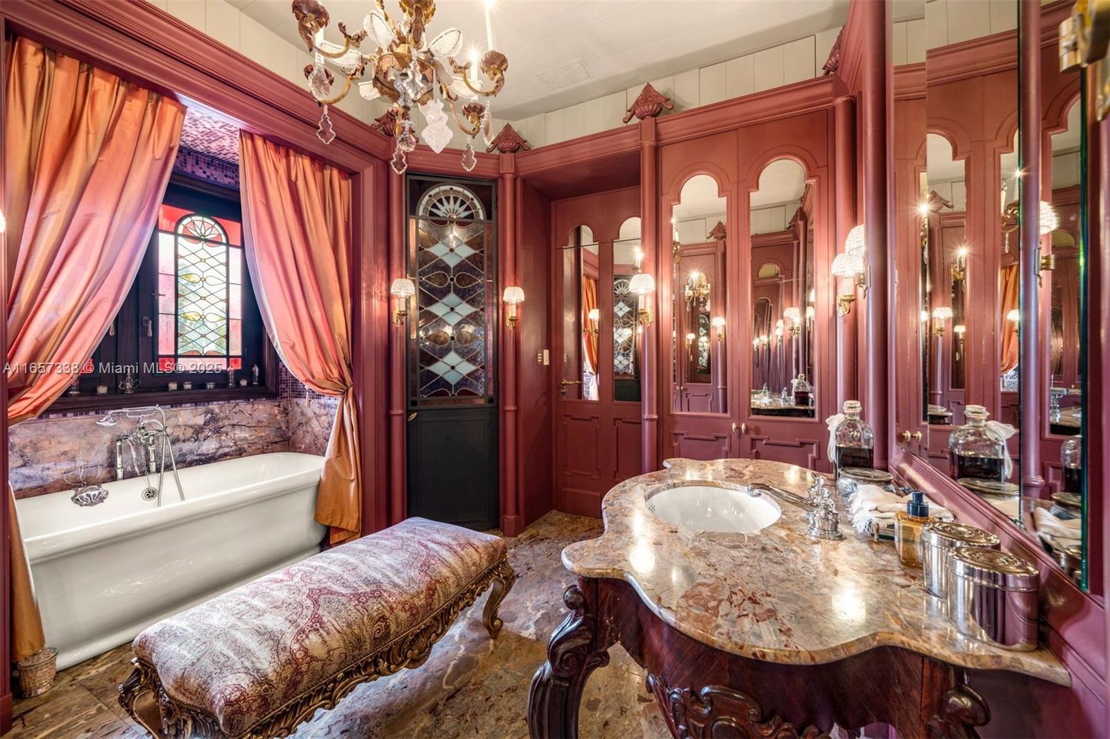 Welcome to an extraordinary European style waterfront estate, where luxury and elegance meet the tranquility of coastal living.This 3-story custom-built masterpiece boasts a spectacular social area with soaring high ceilings, creating an ambiance of grandeur and openness. This estate features 7 lavish bedrooms,7.5 opulent bathrooms, private office, cozy family room, extraordinary chef’s kitchen all designed with meticulous attention to detail and the finest finishes. Step into a world of breathtaking and captivating views, where every window frames the stunning panorama of the bay and the iconic Miami skyline. The outdoor living spaces invite you to enjoy serene and unforgettable sunsets. A sanctuary of sophistication and comfort with dock, garages, elevator, and an unparalleled lifestyle.