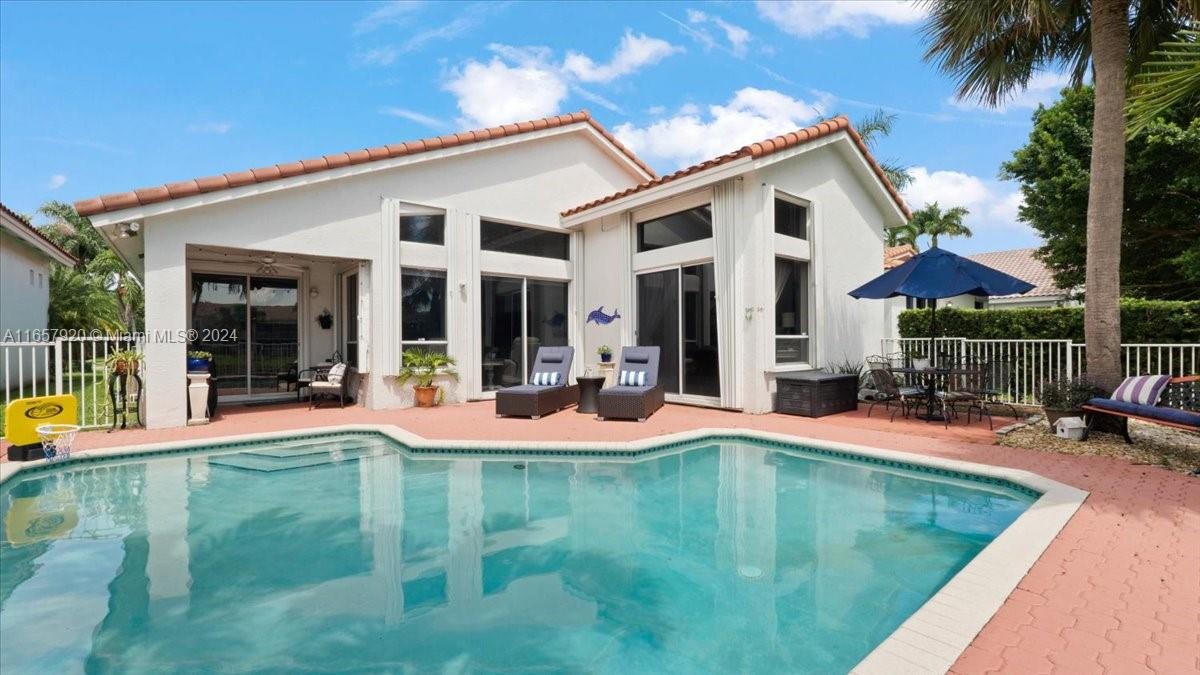 Welcome to this exquisite 3/2 pool home, with lake view, 2,395 square foot of living and nestled in the prestigious guard-gated, golf community of Grand Palms. This residence is a true gem, showing like a model with its immaculate presentation and upscale features. The HOA covers internet, basic cable, alarm, lawn maintenance, pressure cleaning, and even painting of the home, ensuring a hassle-free lifestyle. The kitchen was beautifully updated in 2022, showcasing modern finishes. The home boasts tile flooring throughout, Plantation shutters, and elegant Zebra shades. Recessed lighting enhances the ambiance of the living spaces. This property is a must-see for anyone seeking luxury, convenience, and a beautiful setting. Don’t miss your chance to make this dream home yours!
