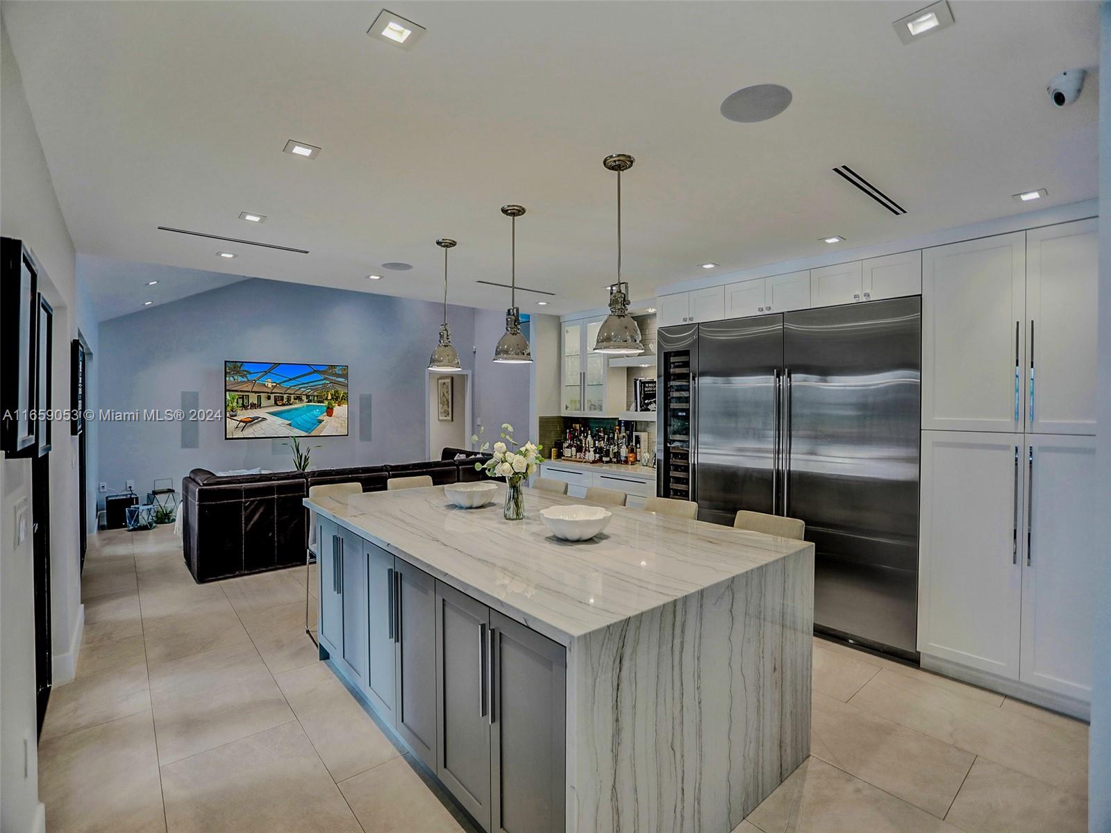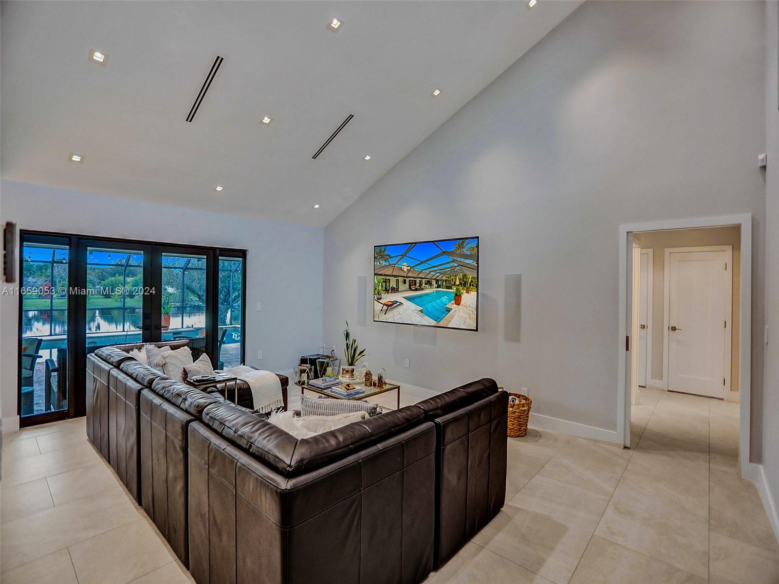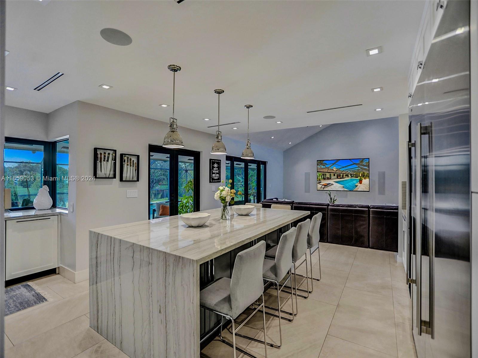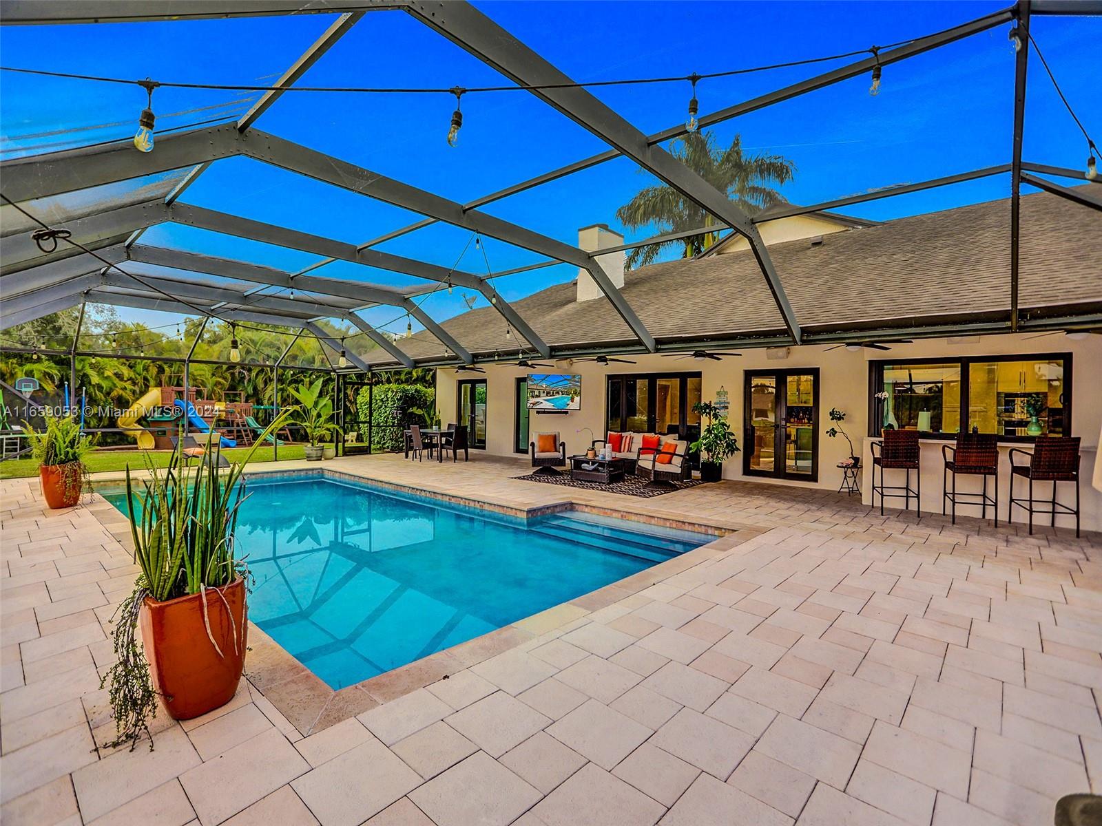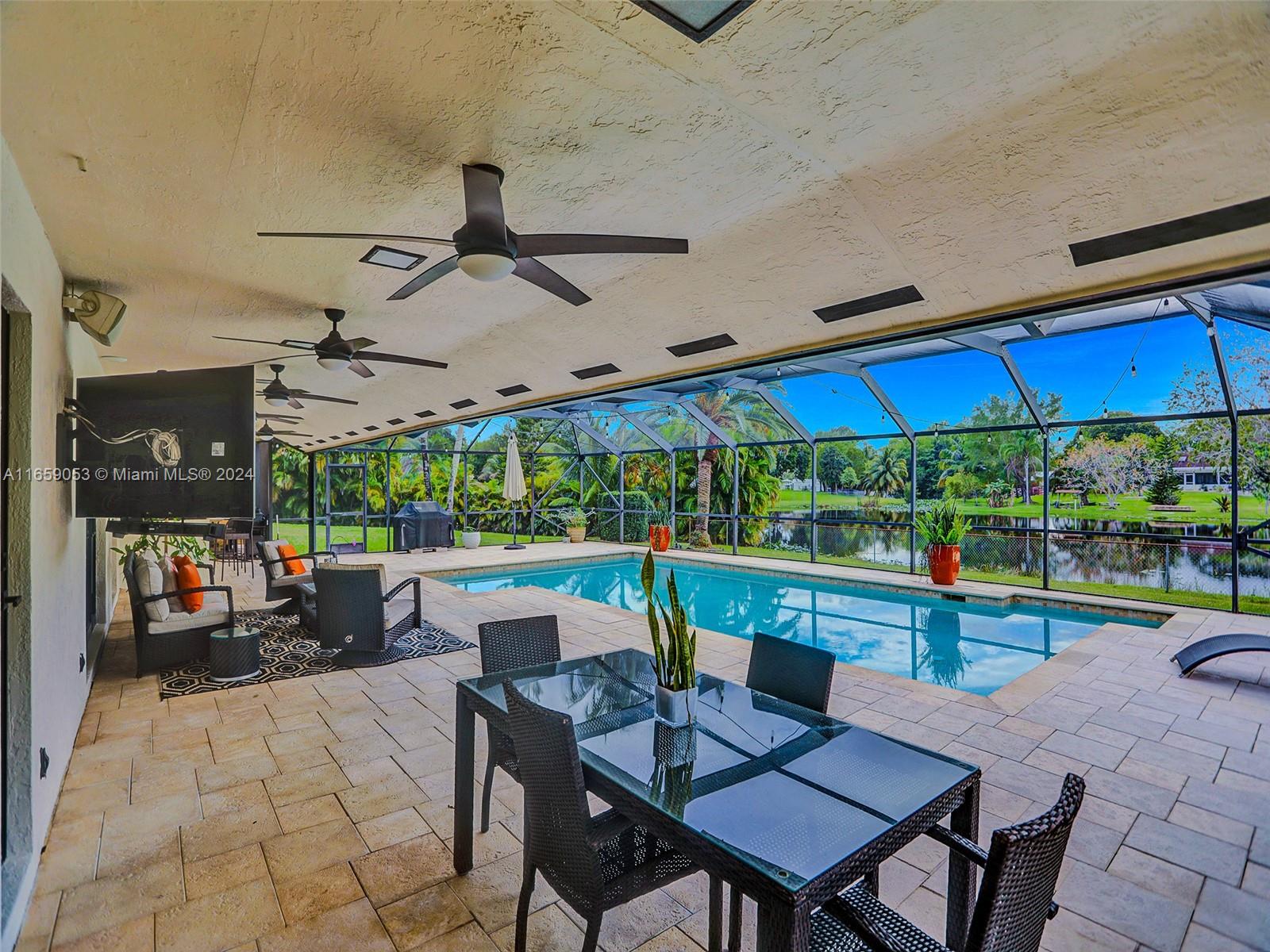Indulge in the epitome of luxury with this private, custom lakefront estate n Southwest Ranches. Nestled on a sprawling 1.1- acre lot, this fully renovated smart home boasts exquisite finishes and impact windows and doors. The Chef's kitchen features a stunning oversized quartzite island with seating for six, along with Subzero and wolf appliances. The open loft offers a scenic view of the outdoor oasis. The master suite includes a walk-in closet and a spa-inspired bath with a Kohler DTV = system and steam generator. Equipped with a 1,000-Gallon propane tank for the whole home generator, outdoor kitchen, CCTV security, water softener system, 3 high-efficiency A/C units and a durable shingle roof, this home is designed for modern luxury living.
